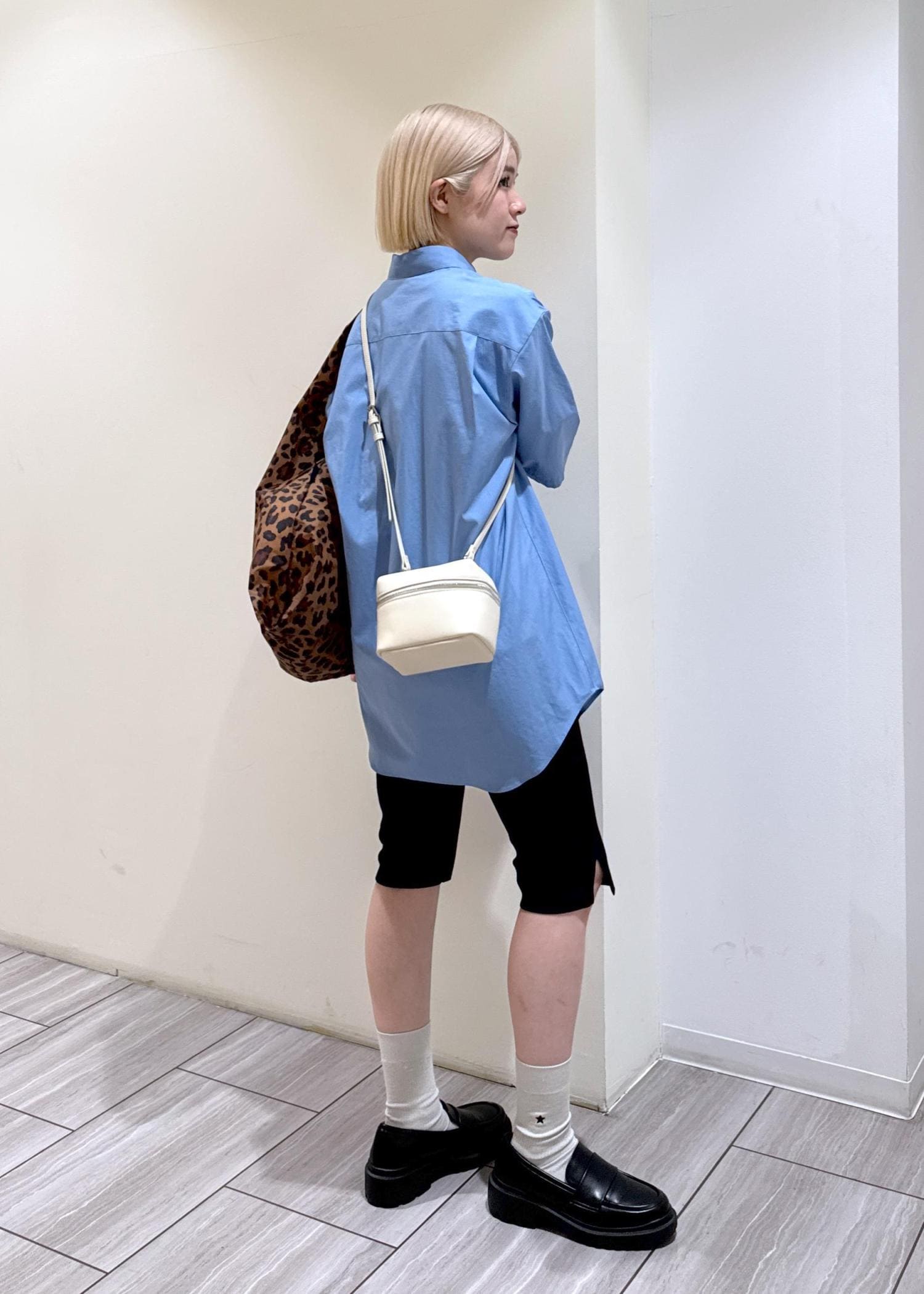 シャツの色味が引き立つ様に、他のアイテムは落ち着い色味を選び、ポイントでBAGGUバッグを持ってみました✦︎*