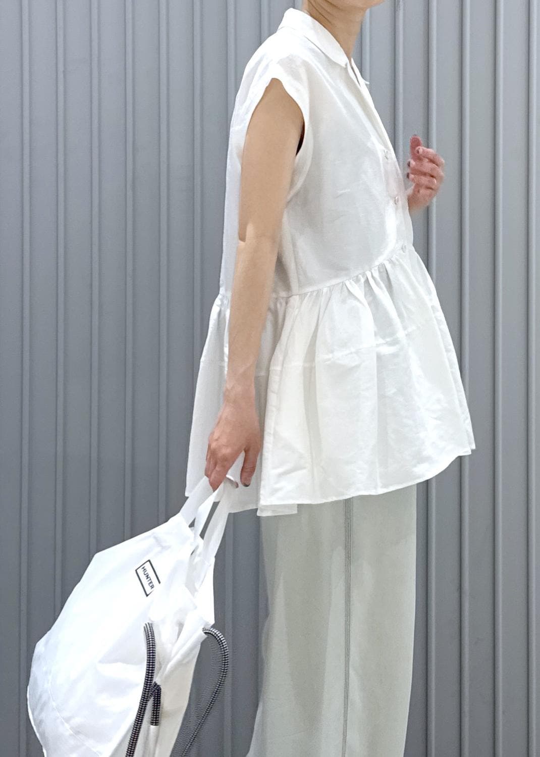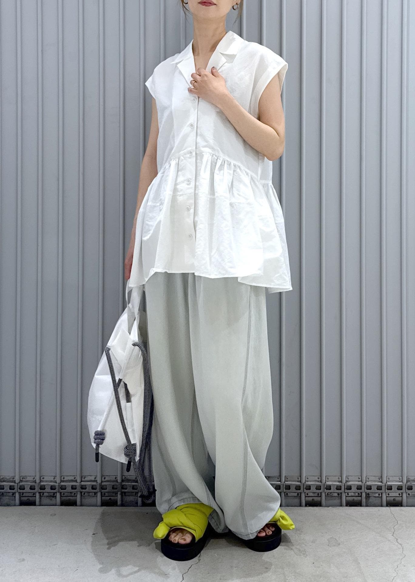 オープンカラーで抜け感と大人っぽさが加わり、甘くなりがちなペプラムシルエットも取り入れやすくなってます♪