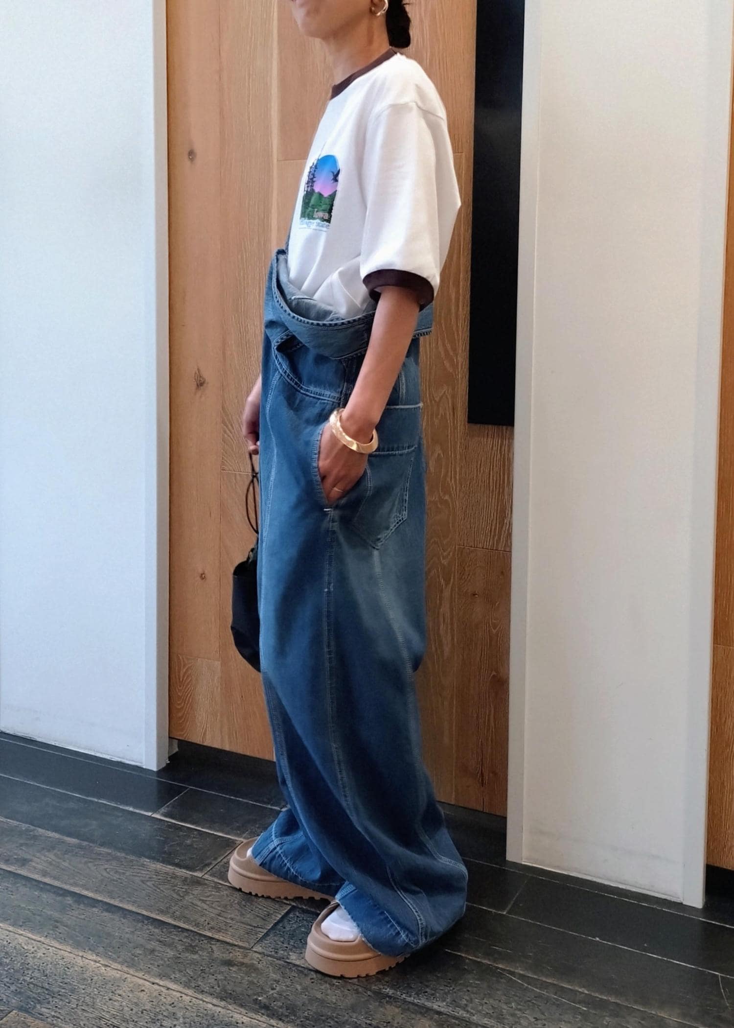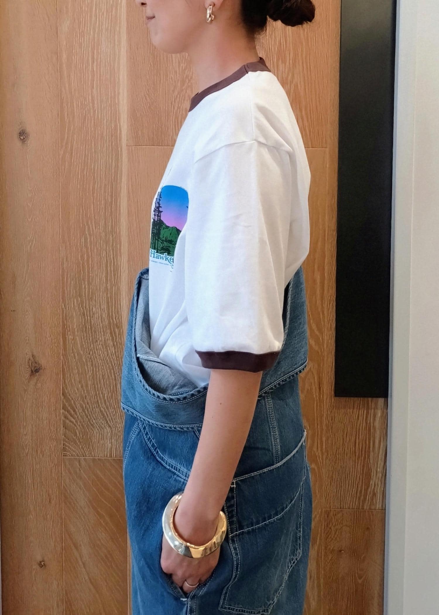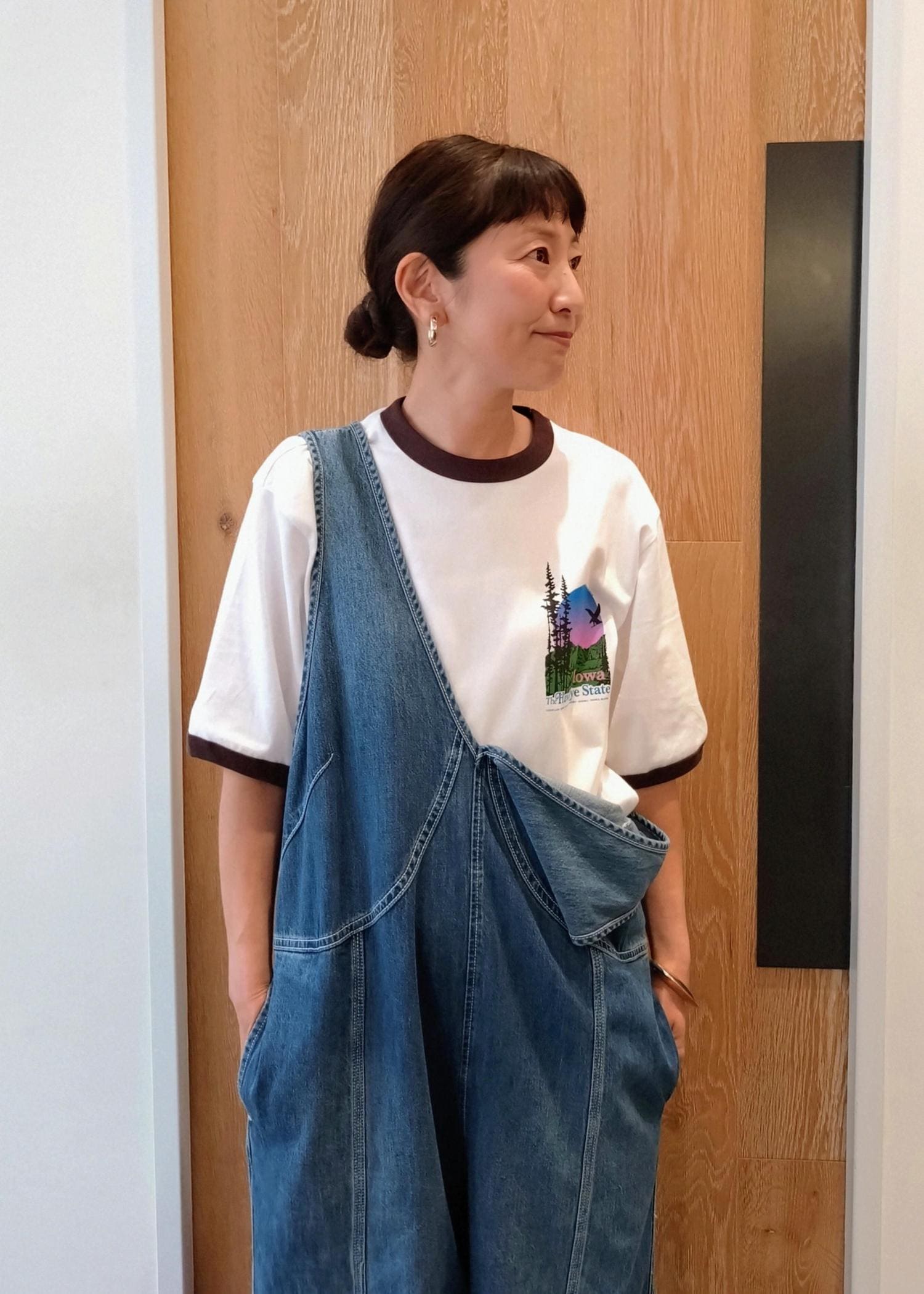 インナーに合わせたJANE SMITHのTシャツのデザインを見せる為、片方の肩を外して撮影してみました。
