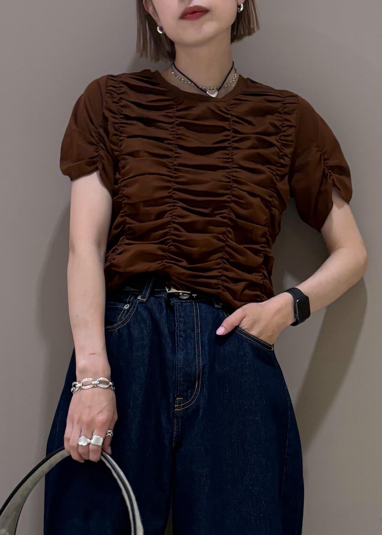 アウトレットADAM ET ROPÉ FEMME【サステナブル】シャーリングTEEダークブラウン / F¥5,280レビュー162cmフリーサイズ着用。