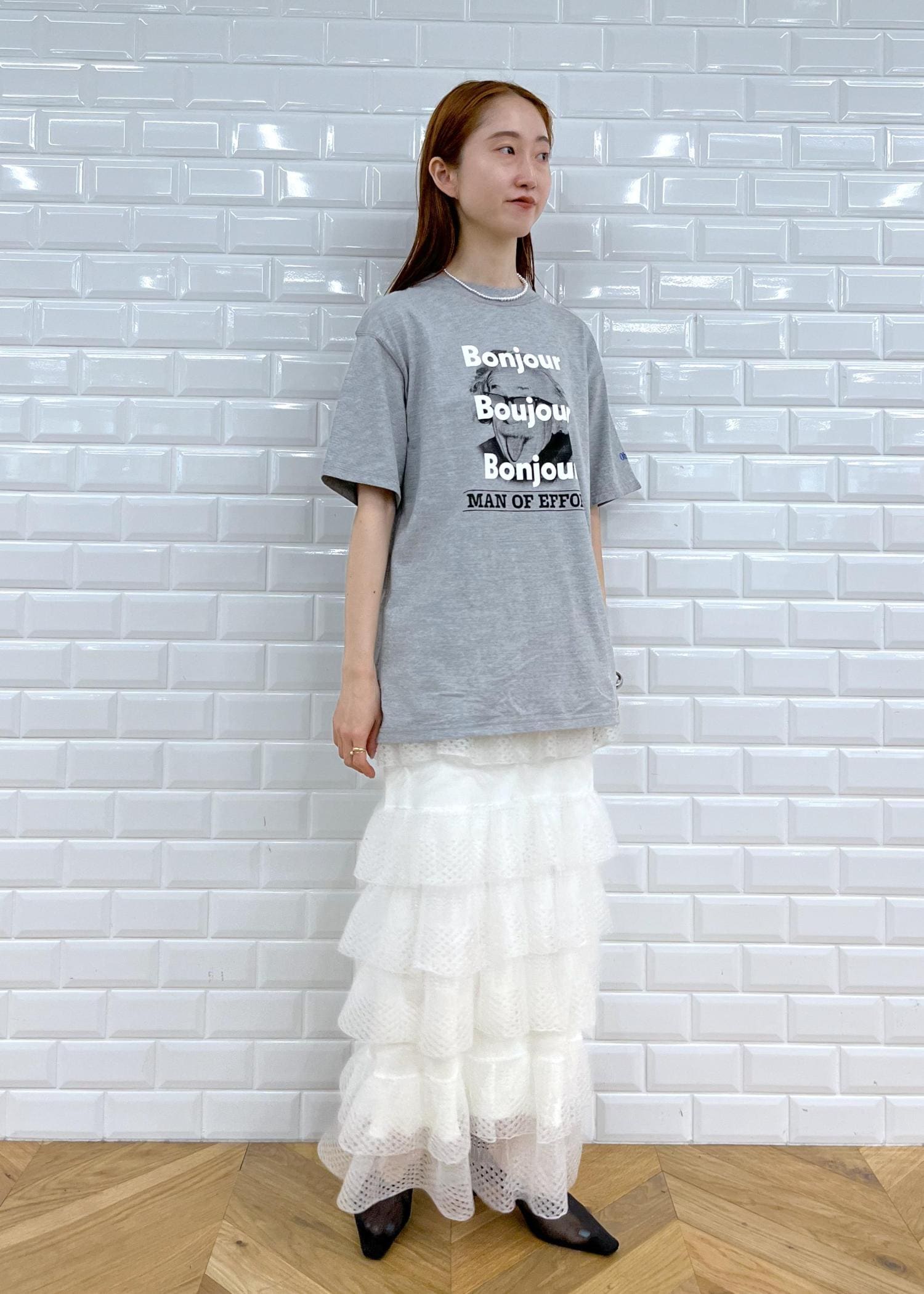 今回はフリルスカートで合わせて綺麗目カジュアルなスタイリングにしてみました^^