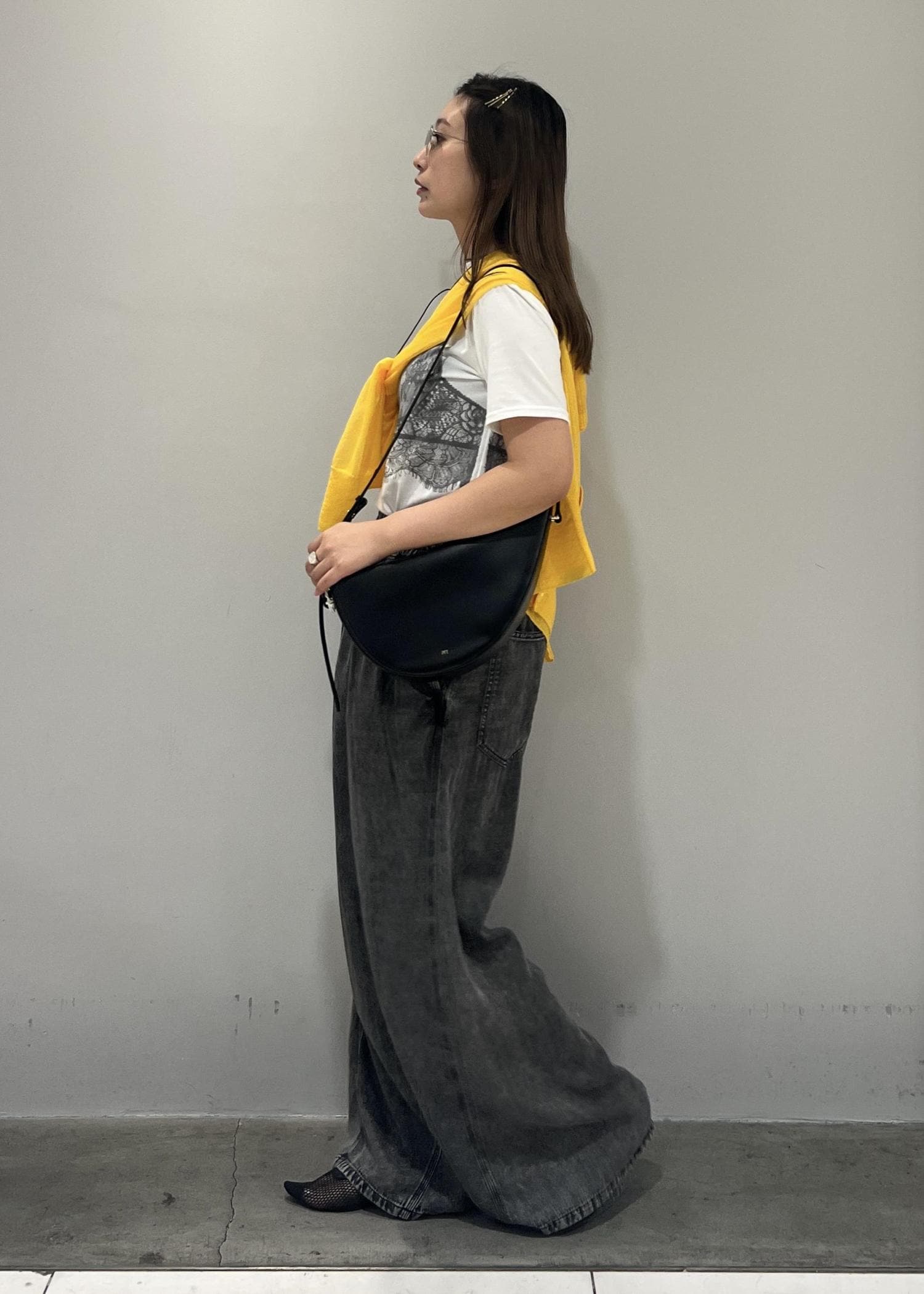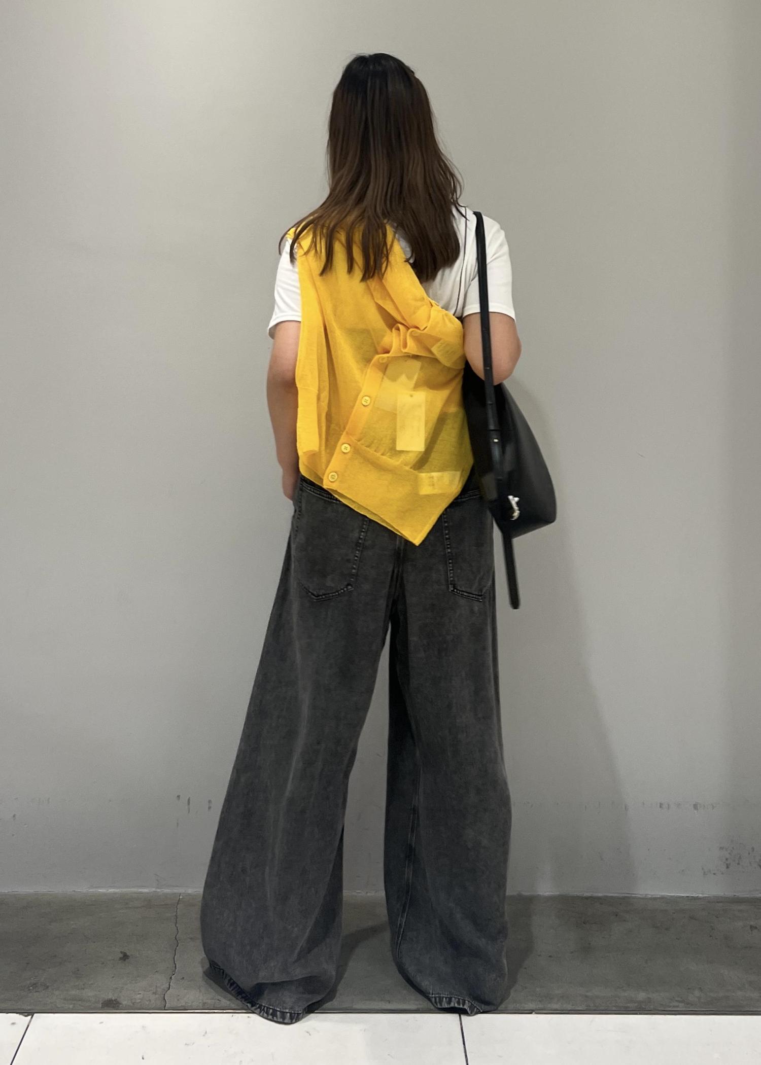 今回は、イエローカーディガンがアクセントの効いた