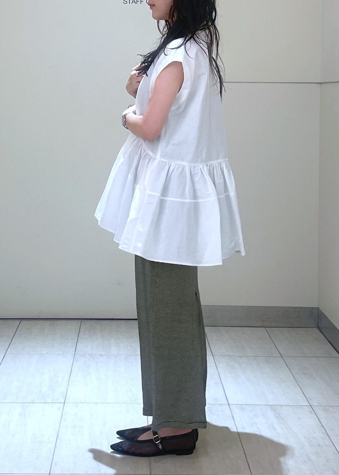 ペプラムのデザインが華やかでとても着映えするトップスです。開襟になっている襟元に抜け感があるので甘くなりがちなペプラムも大人っぽく着ていただけます◎