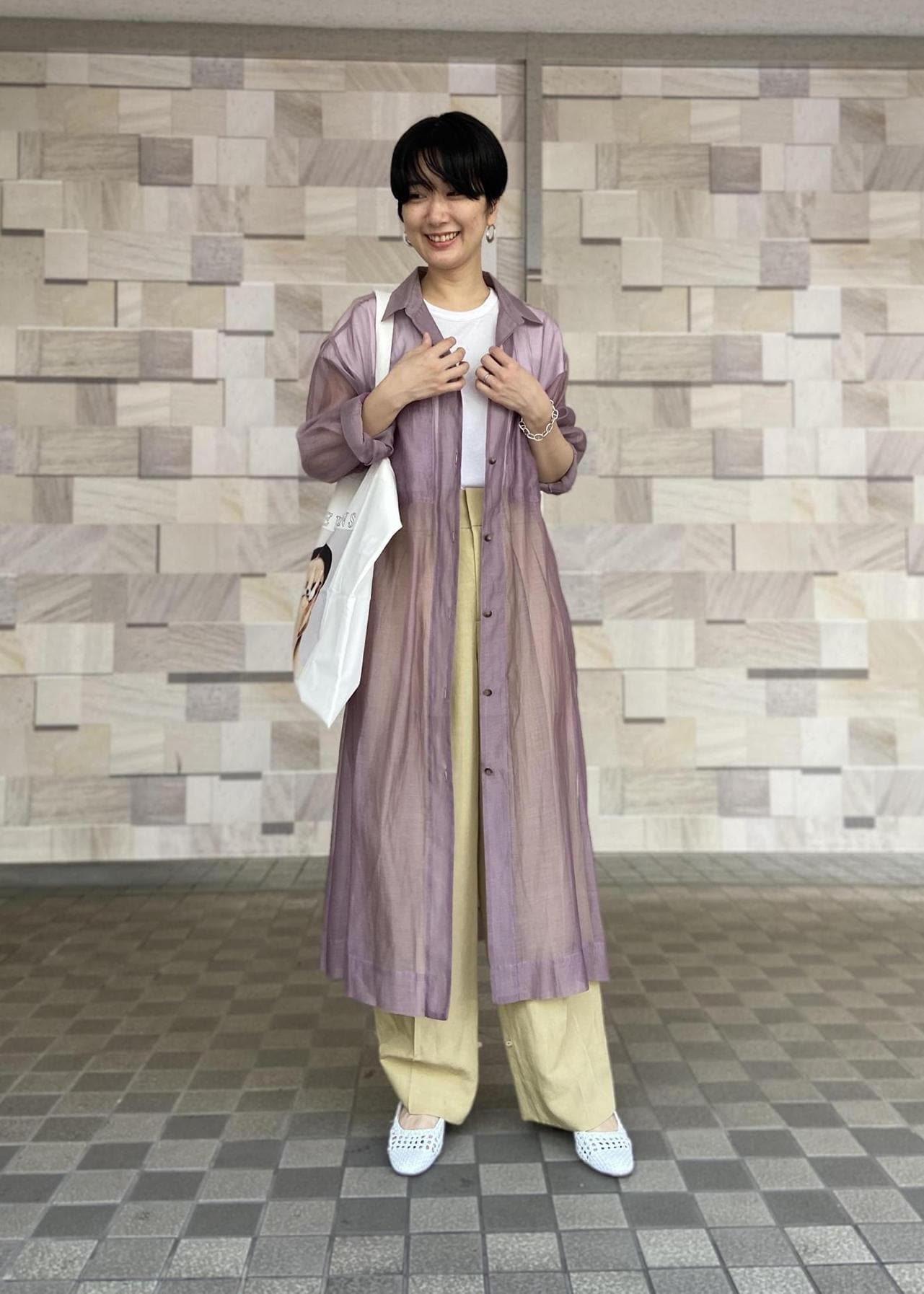 今年のトレンドシアー素材のシャツワンピースがお得か価格でお求め頂けます。 ゆったり、長さもしっかりあるのでふんわり大人な印象で着られます。 少し長めな着丈ですが、スリットが大きく入っているのでスッキリ見えるデザインです。 秋口にも羽織りでお使い頂ける優秀な一枚です。