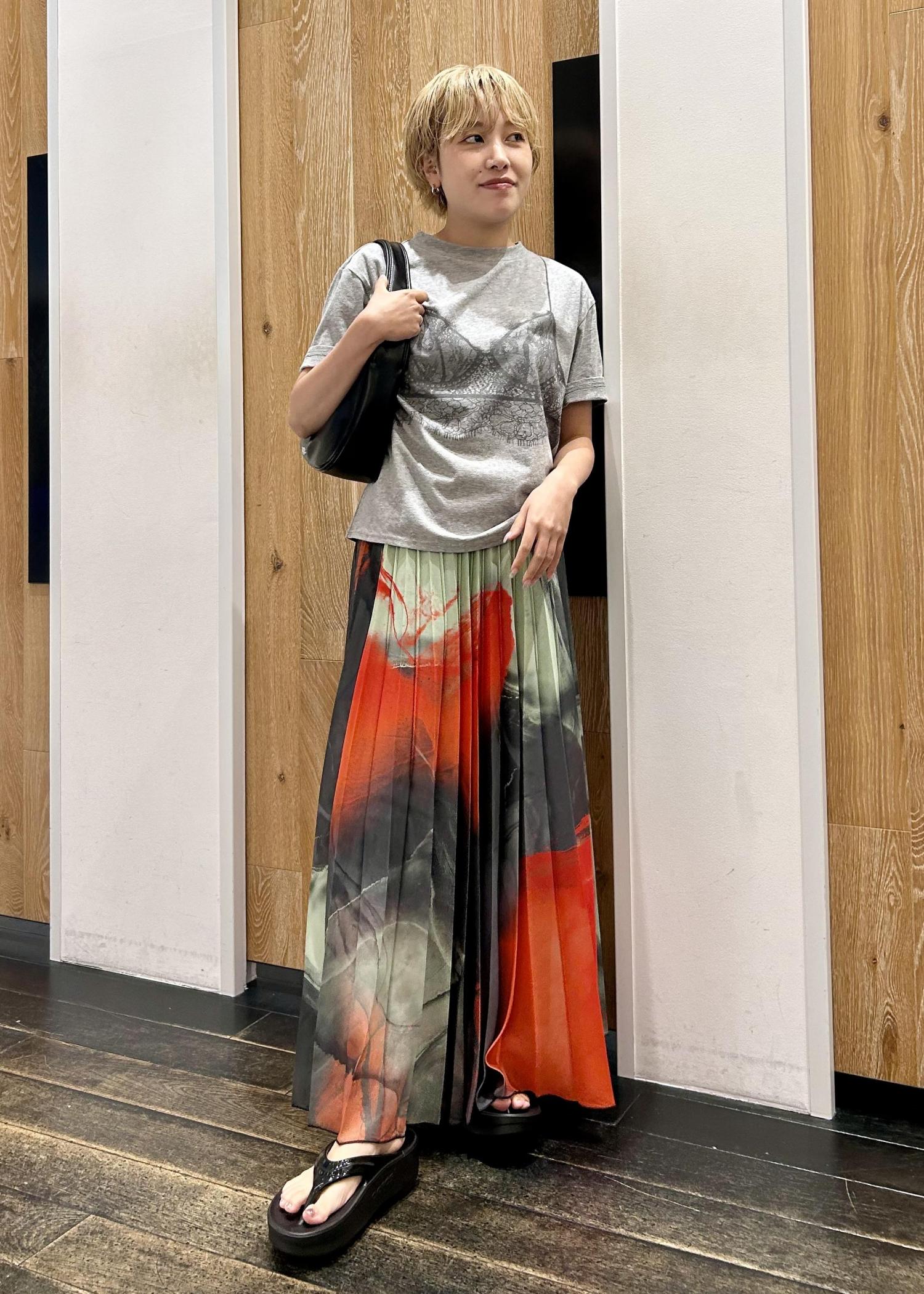 情熱的なプリーツスカートにはニュアンスに合わせやすい