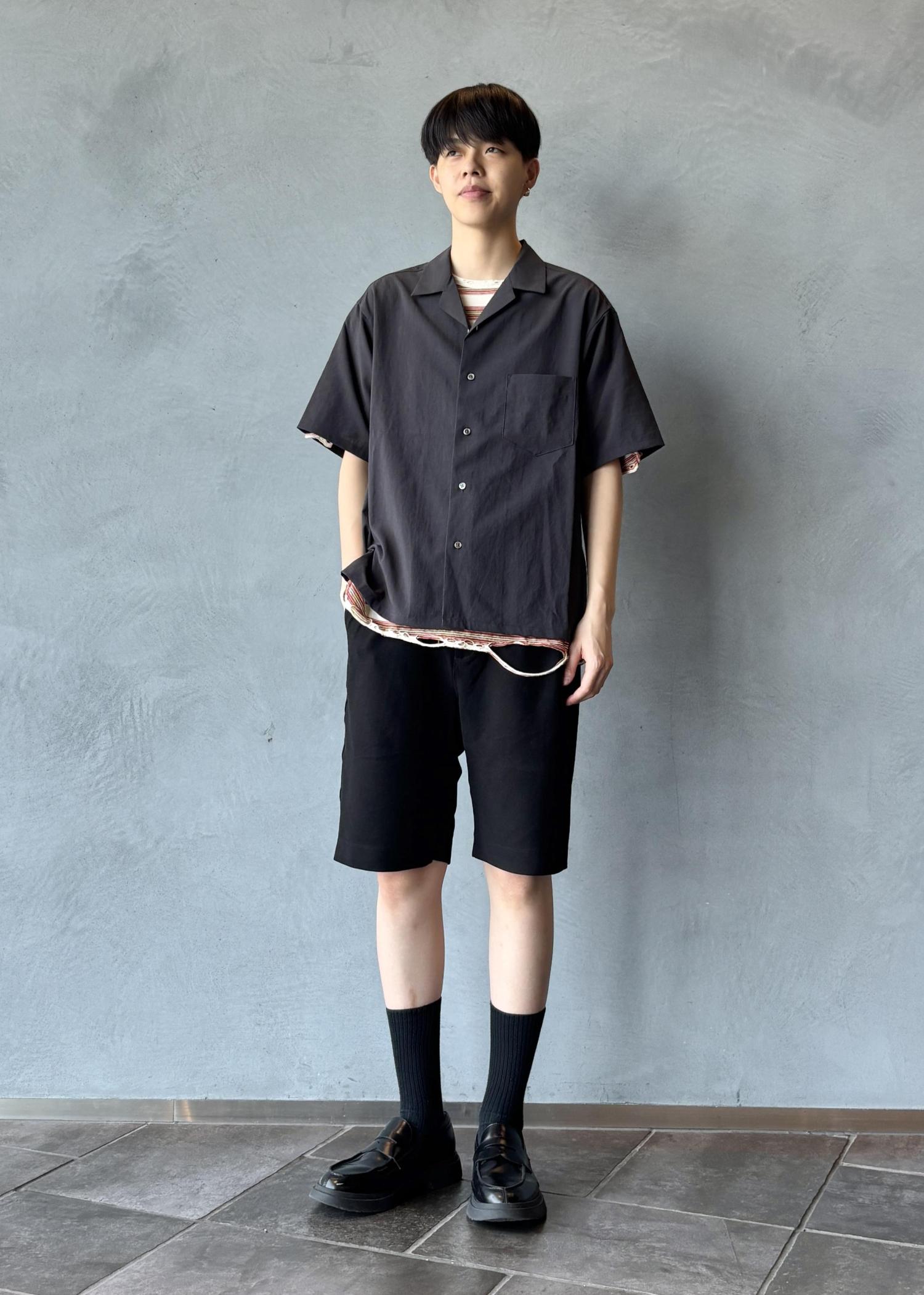 涼し気なオープンカラーシャツに接触冷感のショーツを合わせてラフだけどキレイめに見える、そんなコーディネート✨️