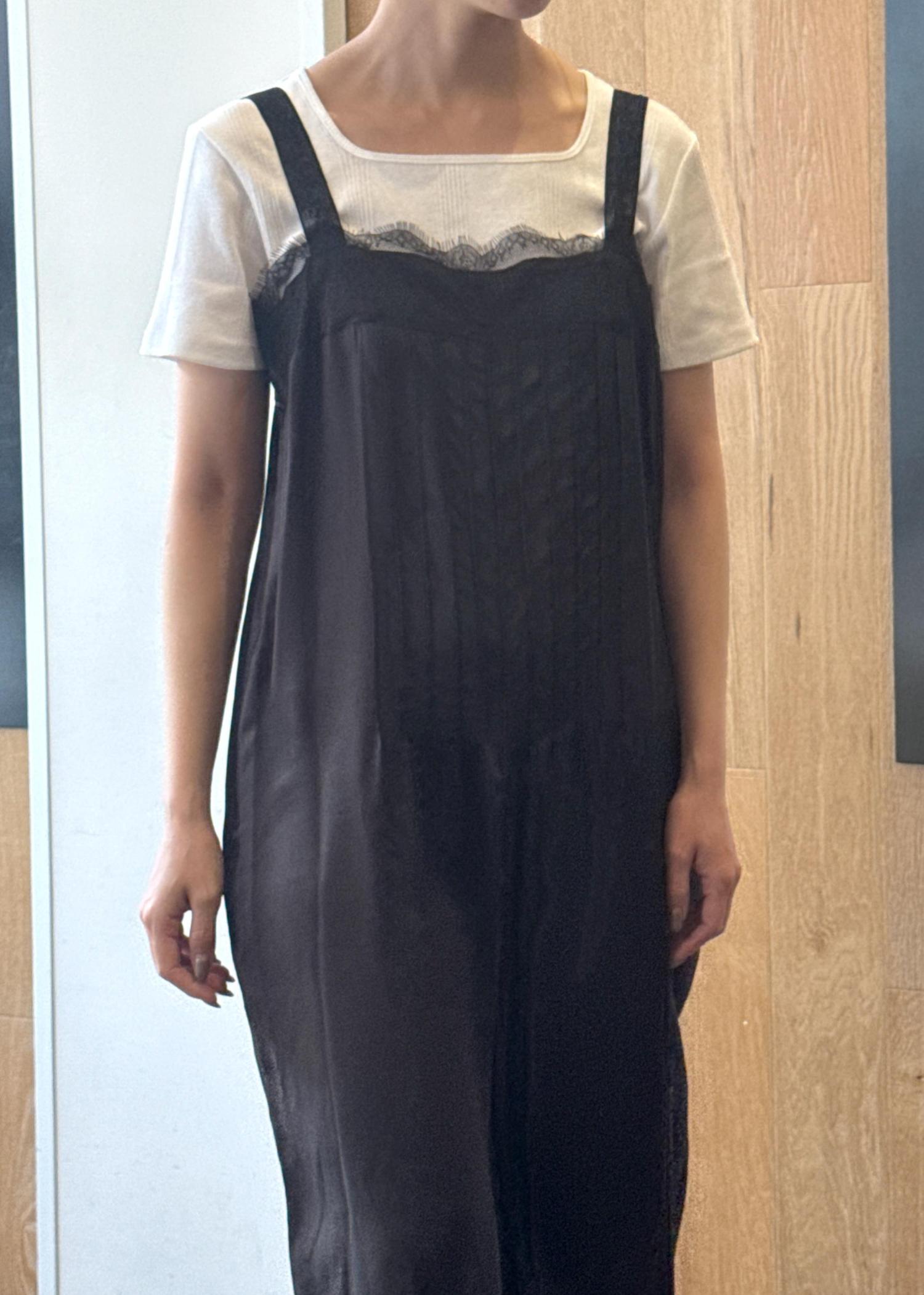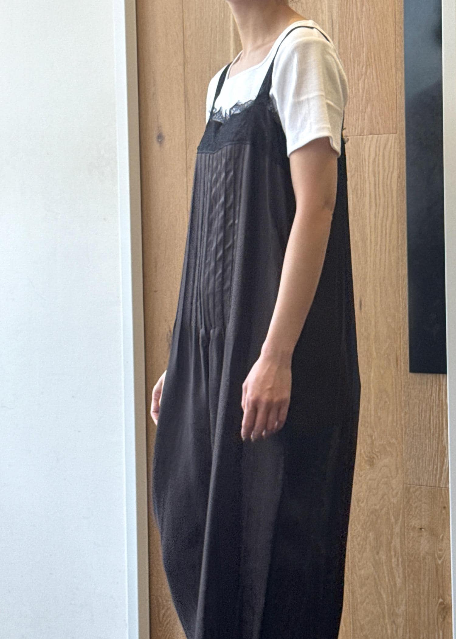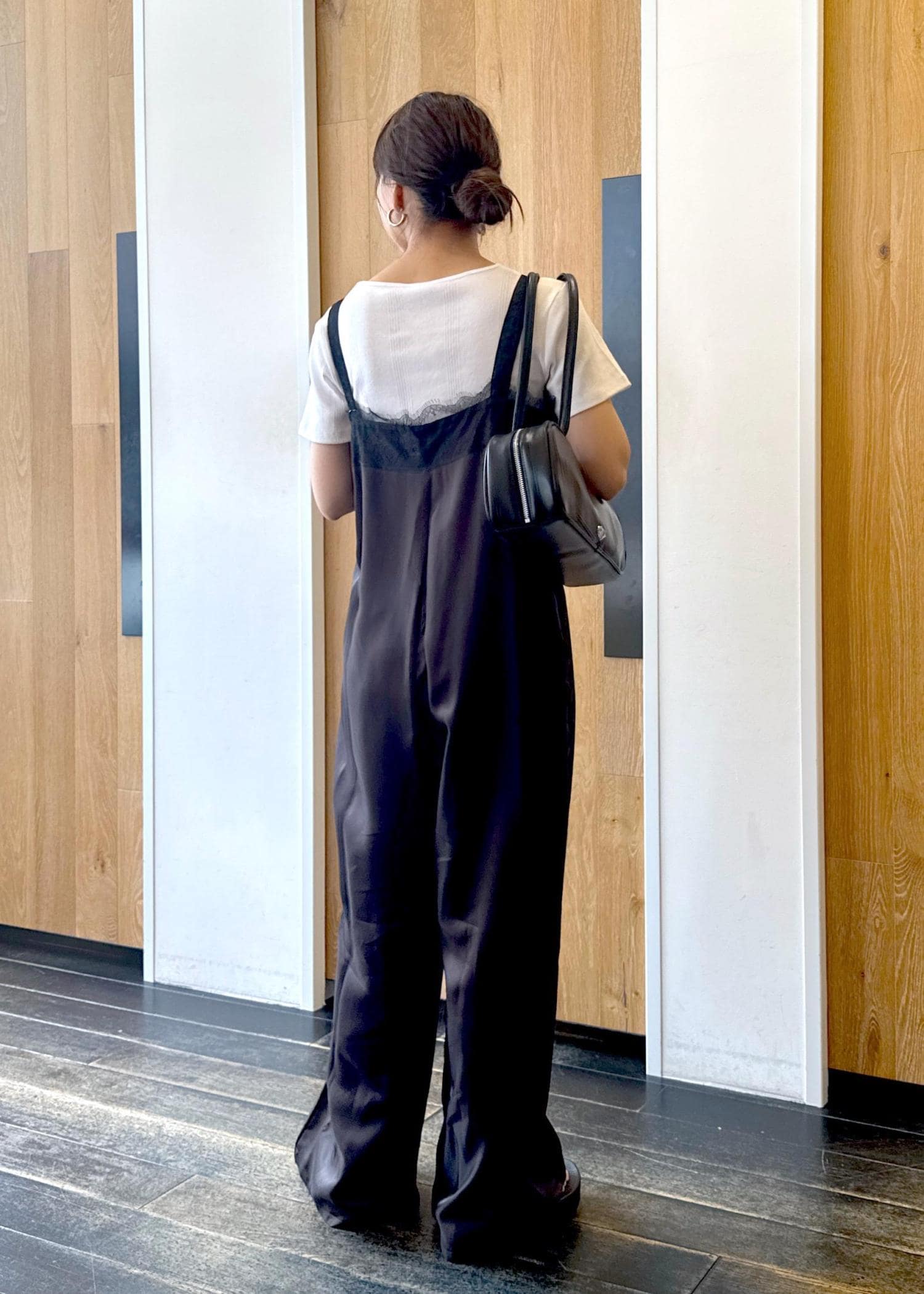 つるっとしたキュプラ素材に、さりげないレースのデザインが女性らしさのあるサロペット。程よいゆったりとしている為、夏にも楽に着ていただけます。普段サロペットがカジュアルすぎるなという方にも、大人な雰囲気もありおすすめです◎