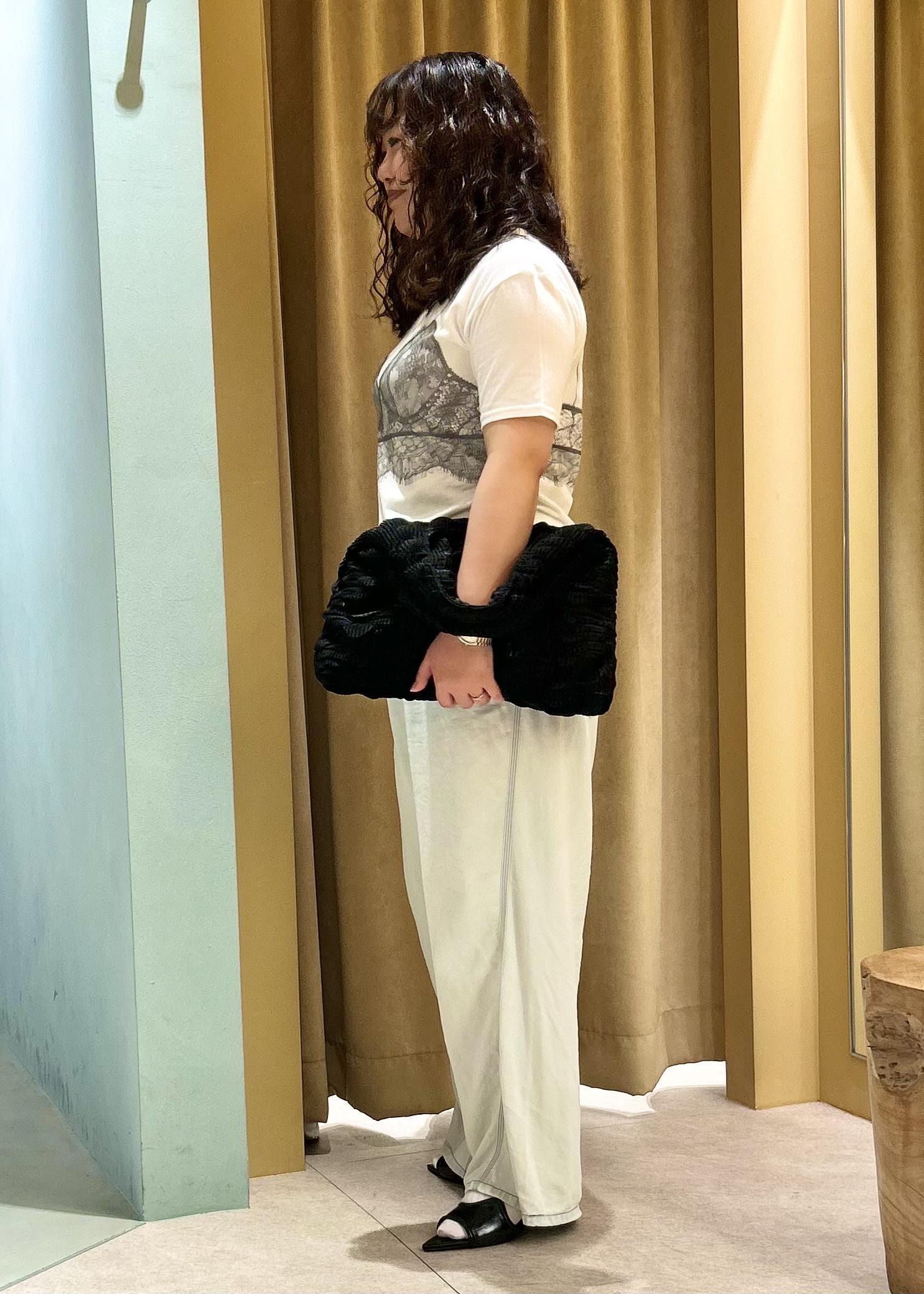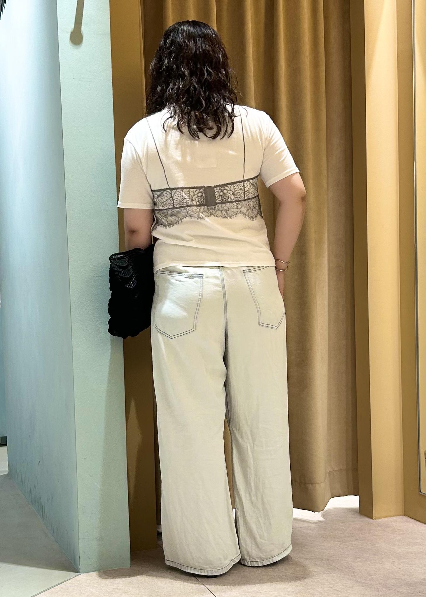 ランジェリーデザインがフェミニンでエレガントな印象でありつつも、少し褪せたようなプリントの質感・ふんわり柔らかなコットン素材でカジュアルなコーディネートへと落とし込んでくれる絶妙Tシャツです…♡