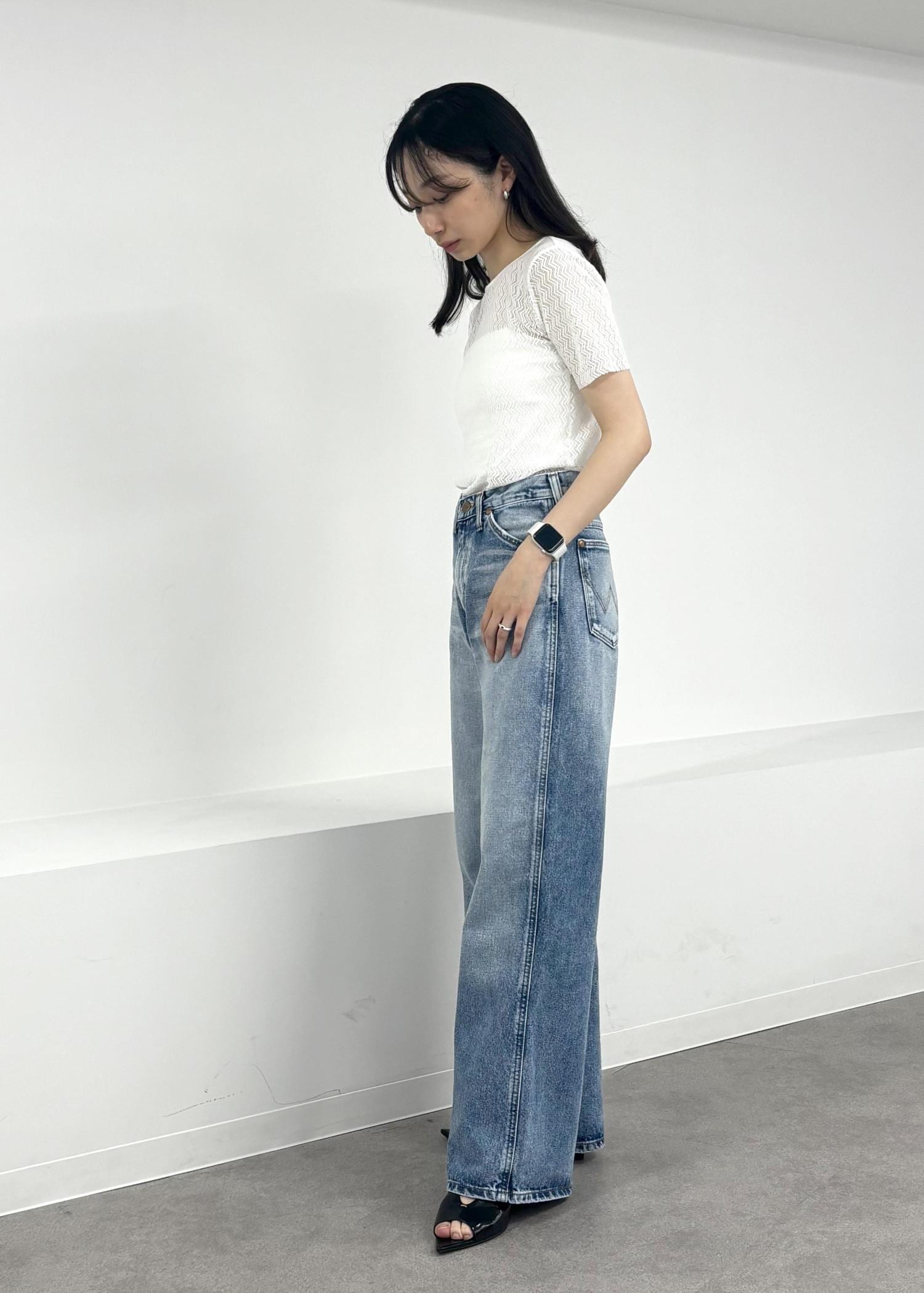 ADAM ET ROPÉ HOMME《別注》【Wrangler/ラングラー】WIDE FLARE JEAN / UNISEXブルー系 / 25¥19,800レビューワイドすぎないシルエットがとてもきれいです!形が綺麗なだけでなく、生地が柔らかいのですごく履きやすいです☺︎丈感は156cm、サイズ25着用でギリギリ床につくくらいです!少しヒールのあるシューズに合わせるのがちょうどよかったです♪