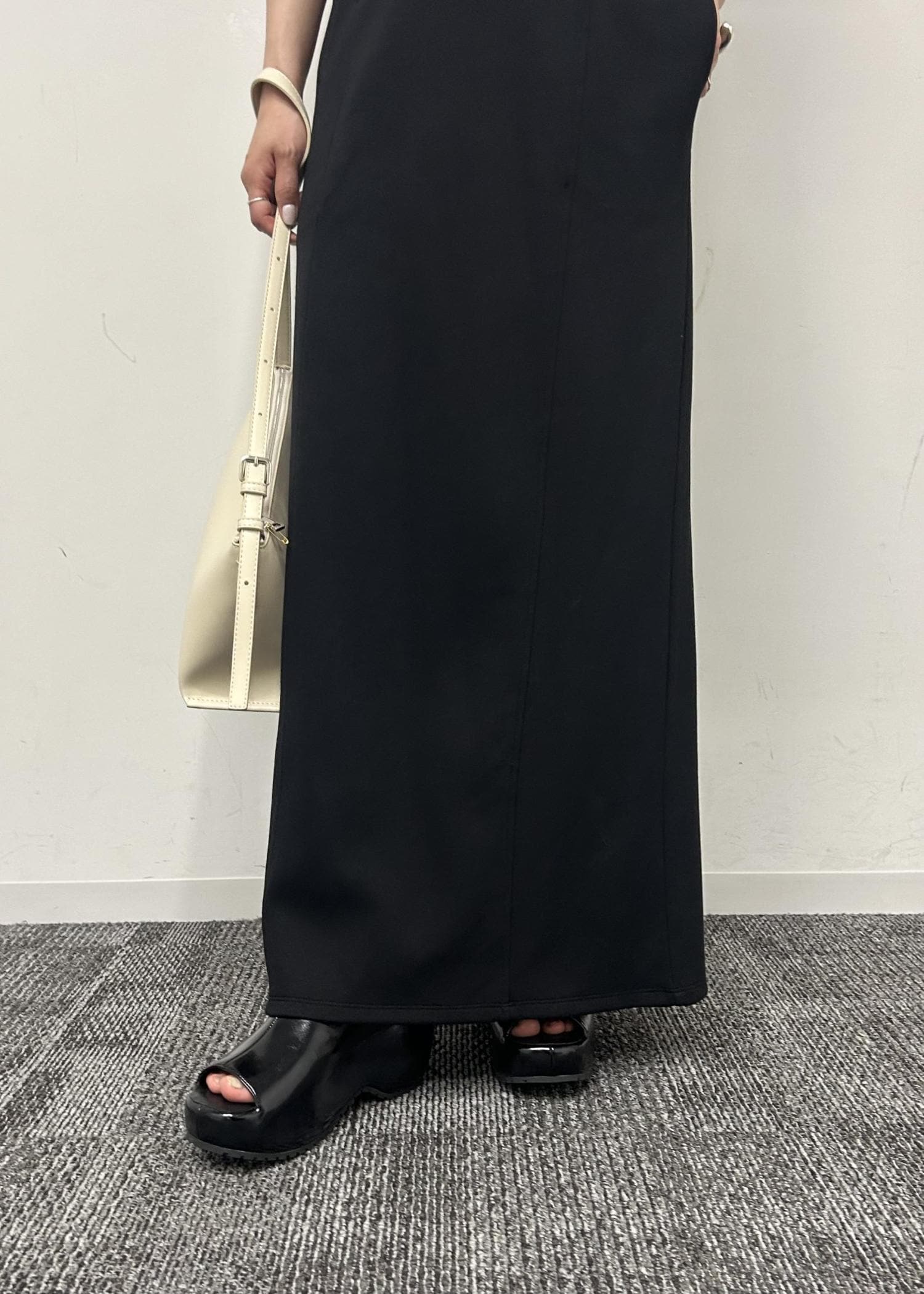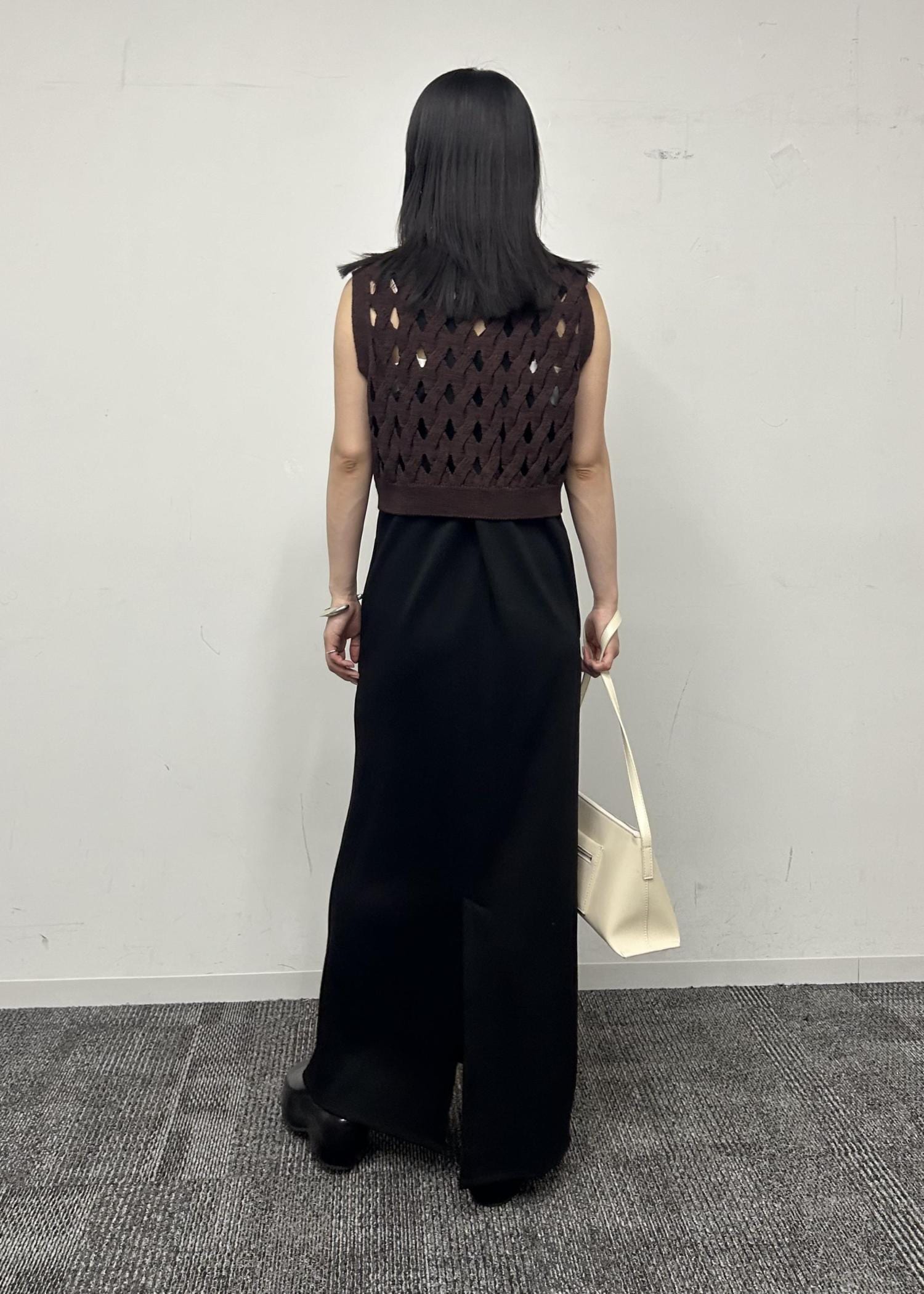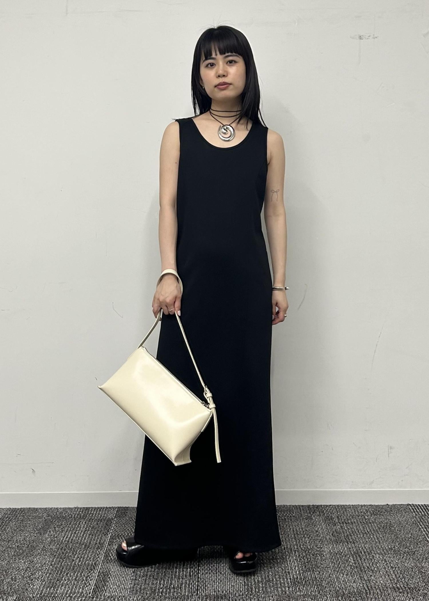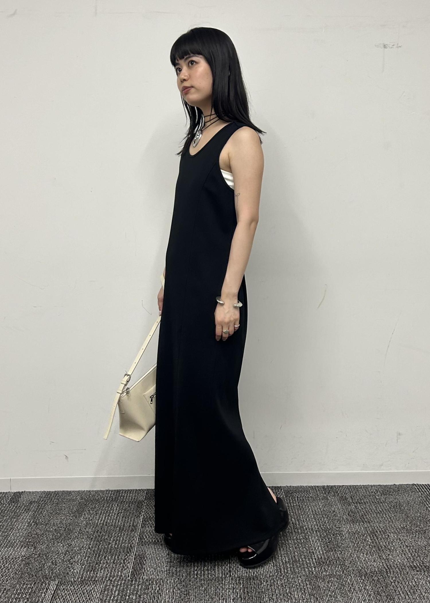 ワンピースはタイトなシルエットですが、伸縮性があるので楽ちん。ベストは短めの丈でスタイルアップさせてくれます。