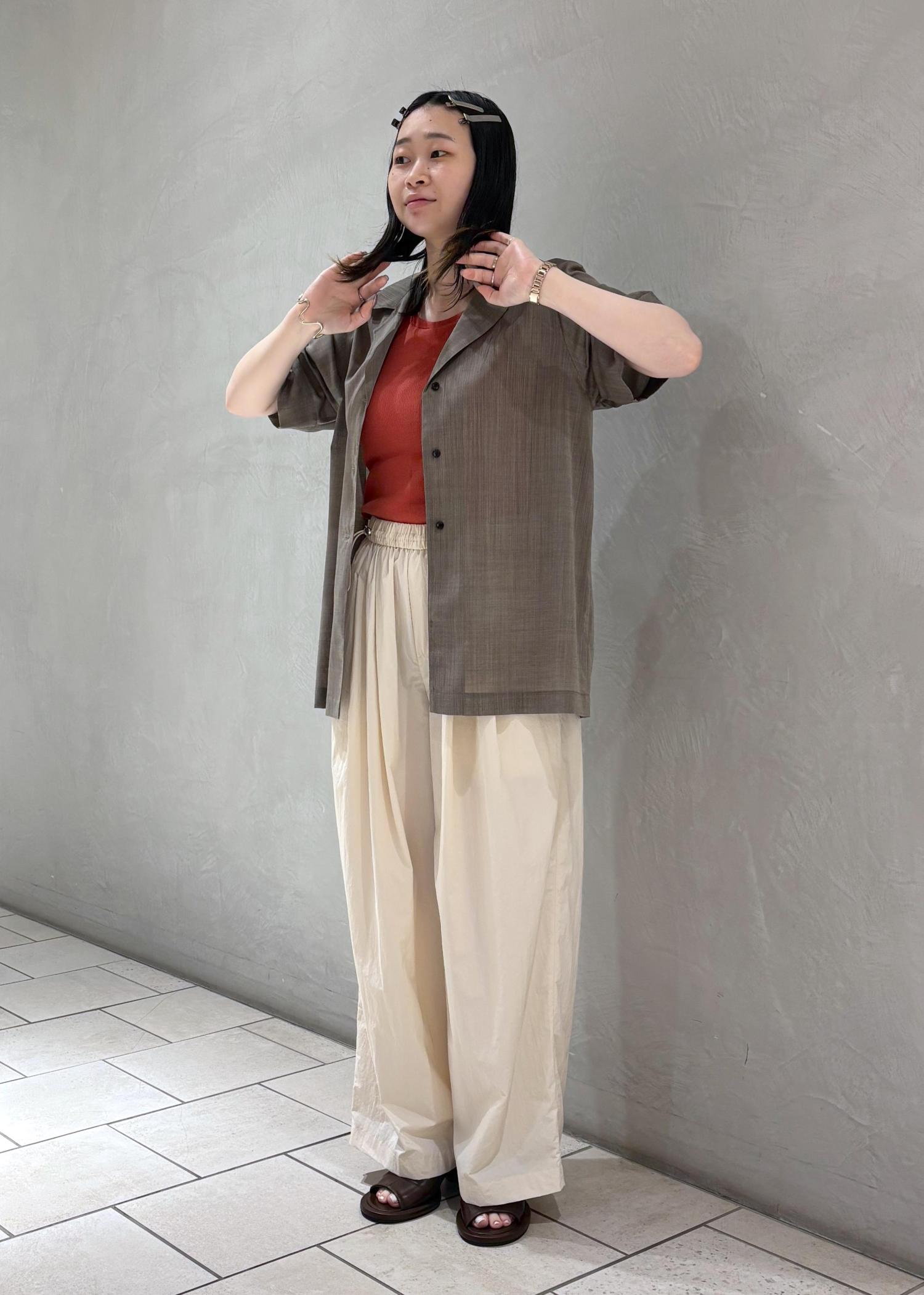 接触冷感のシャツはとにかく気持ちよく軽いのが魅力!店頭でも人気があり、長めの丈感は安心感があります!