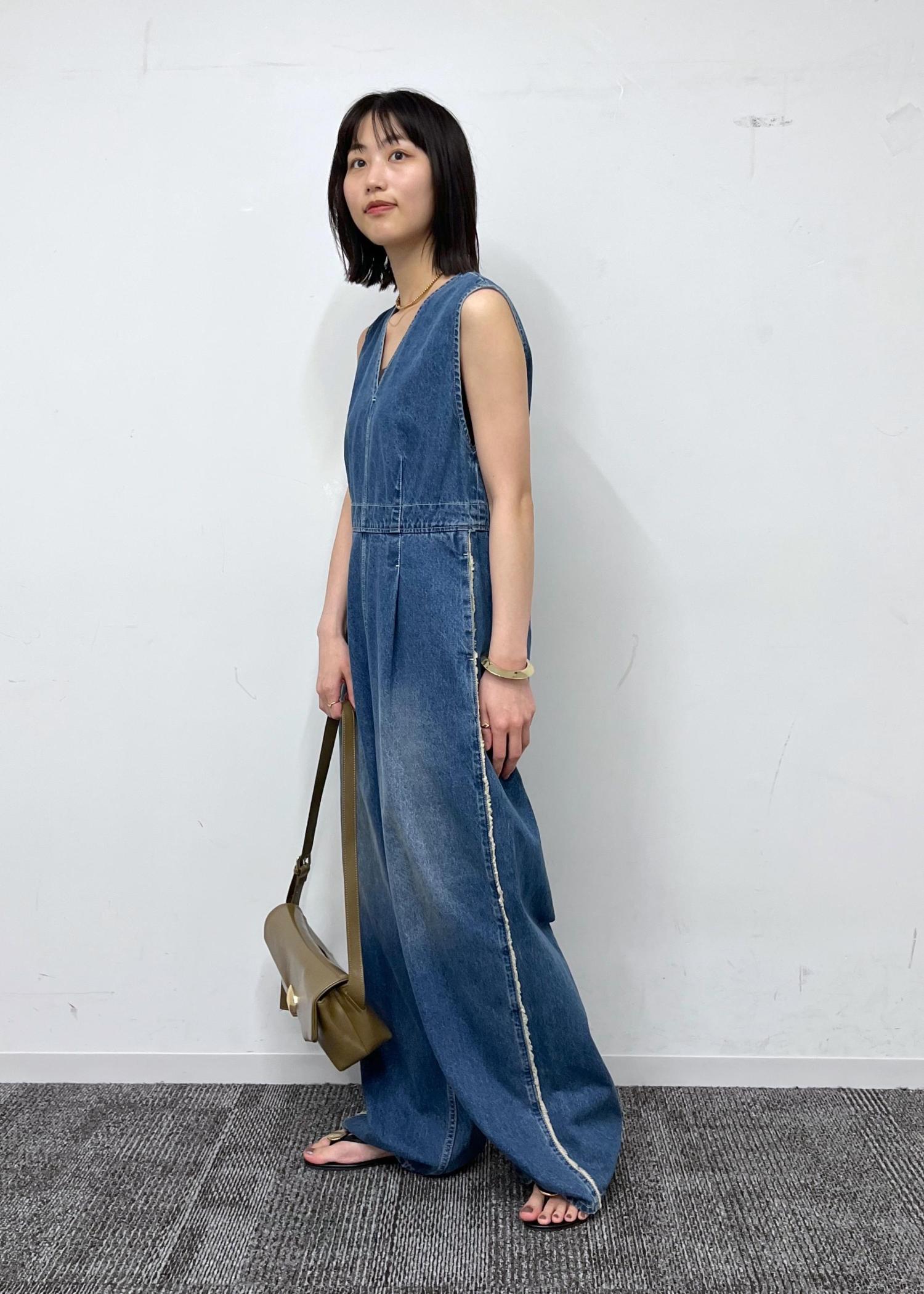 Vネック部分、大きすぎないシルエットが大人も着やすくしてくれます◎フリンジ部分もポイントです。