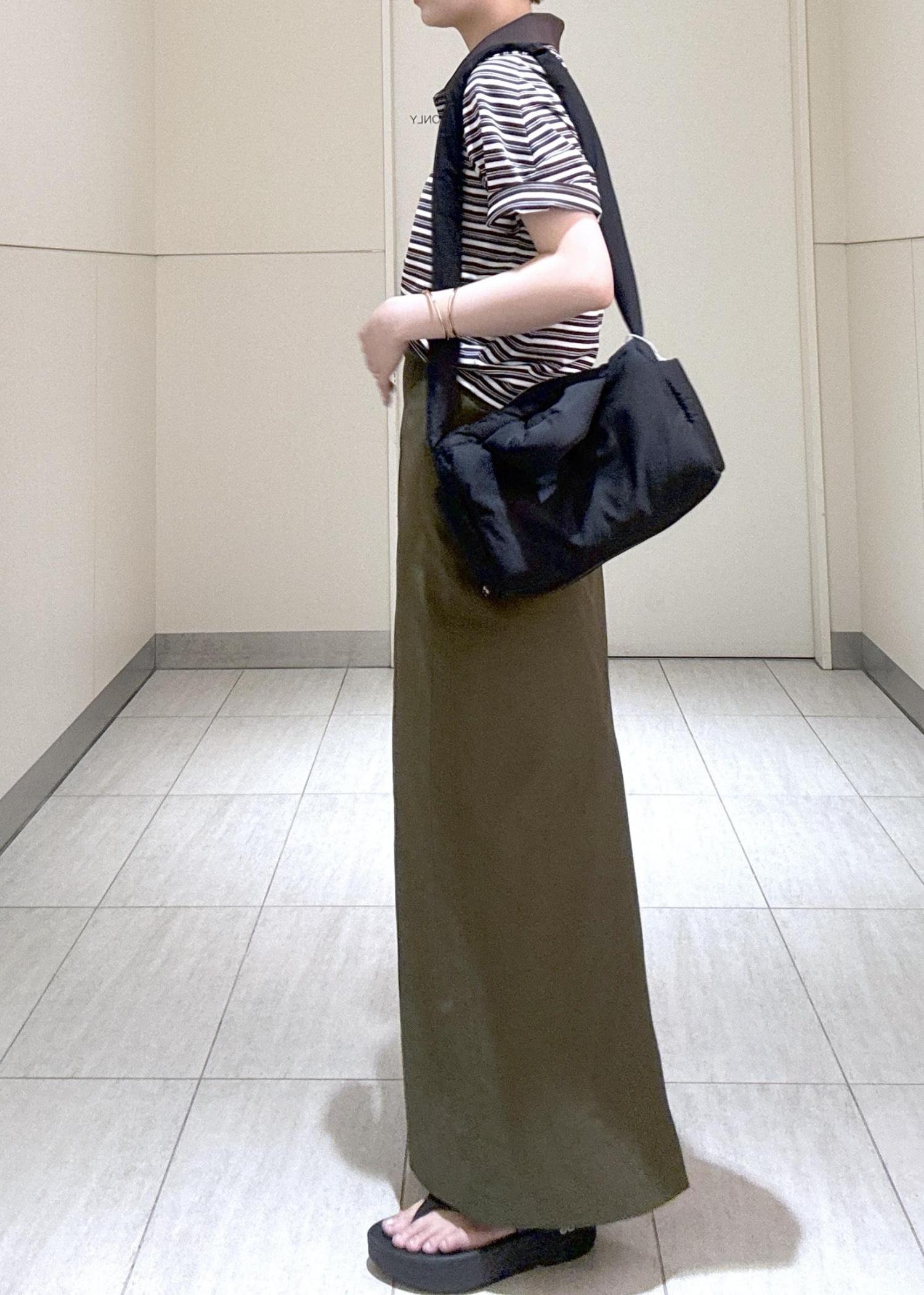 夏〜秋口まで使えそうな深みのあるカーキカラーでとっても可愛いです!また、【接触冷感】・【吸水速乾】という梅雨の時期にも嬉しい機能性も抜群のスカートです!