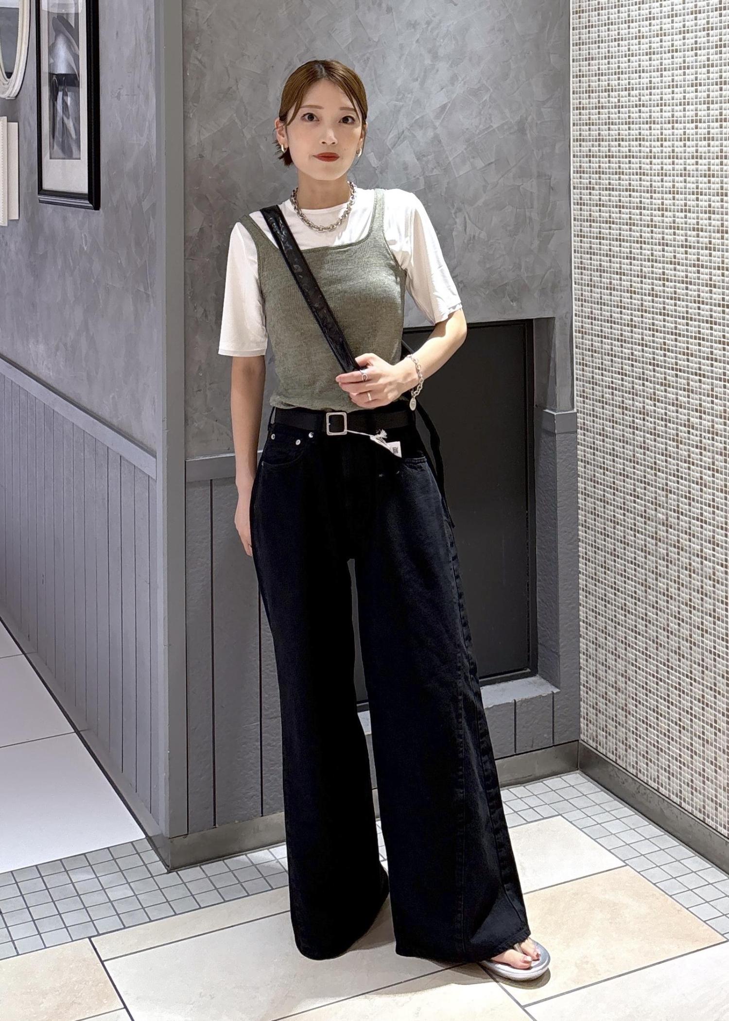 暑い時期にさらっと着れる大人なフィブリルTとNeedbyのバギーパンツとあわせました!