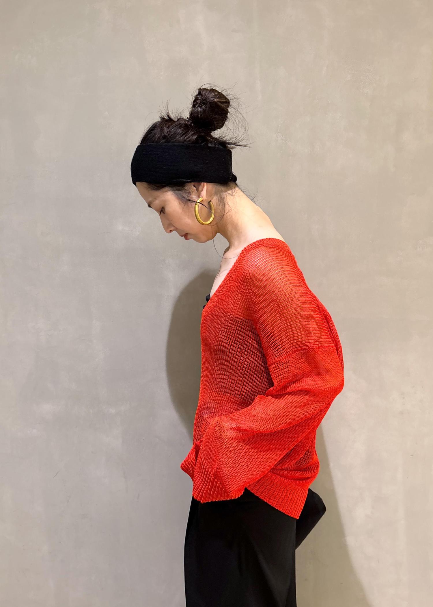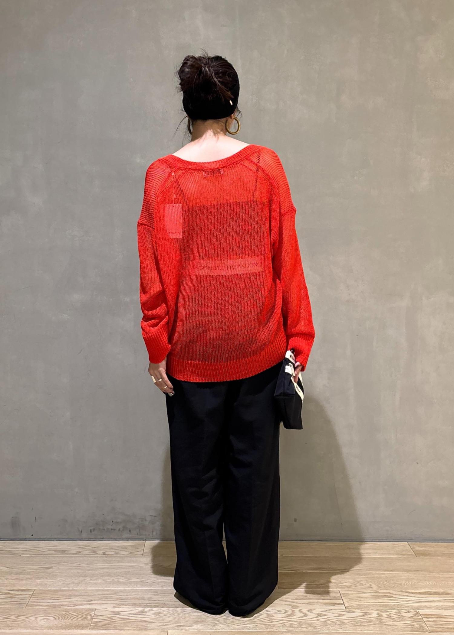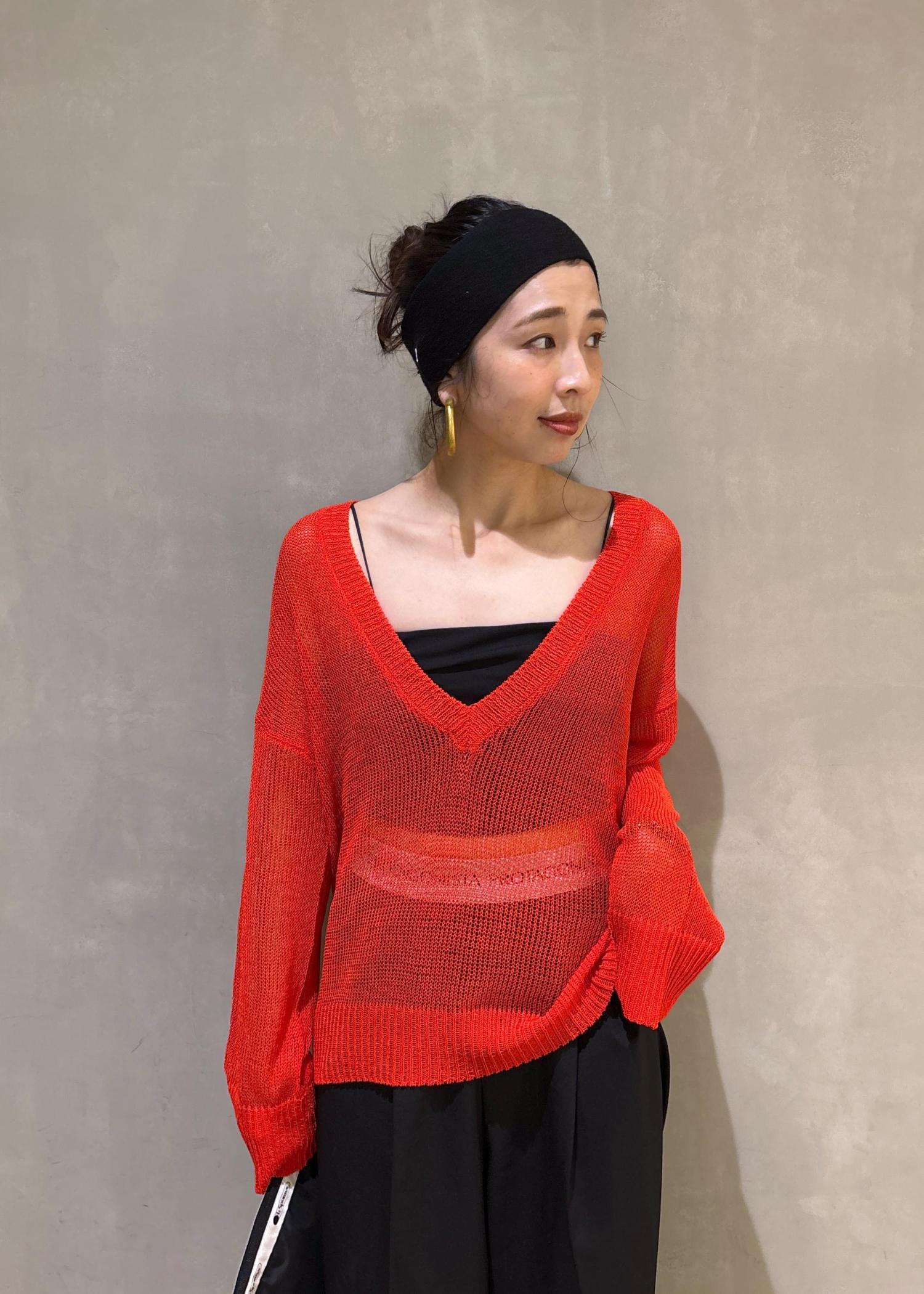 ADAM ET ROPÉ FEMMEシアーVネックトップスレッド系 / F¥15,950レビュー程よくシアー感のあるニットです。