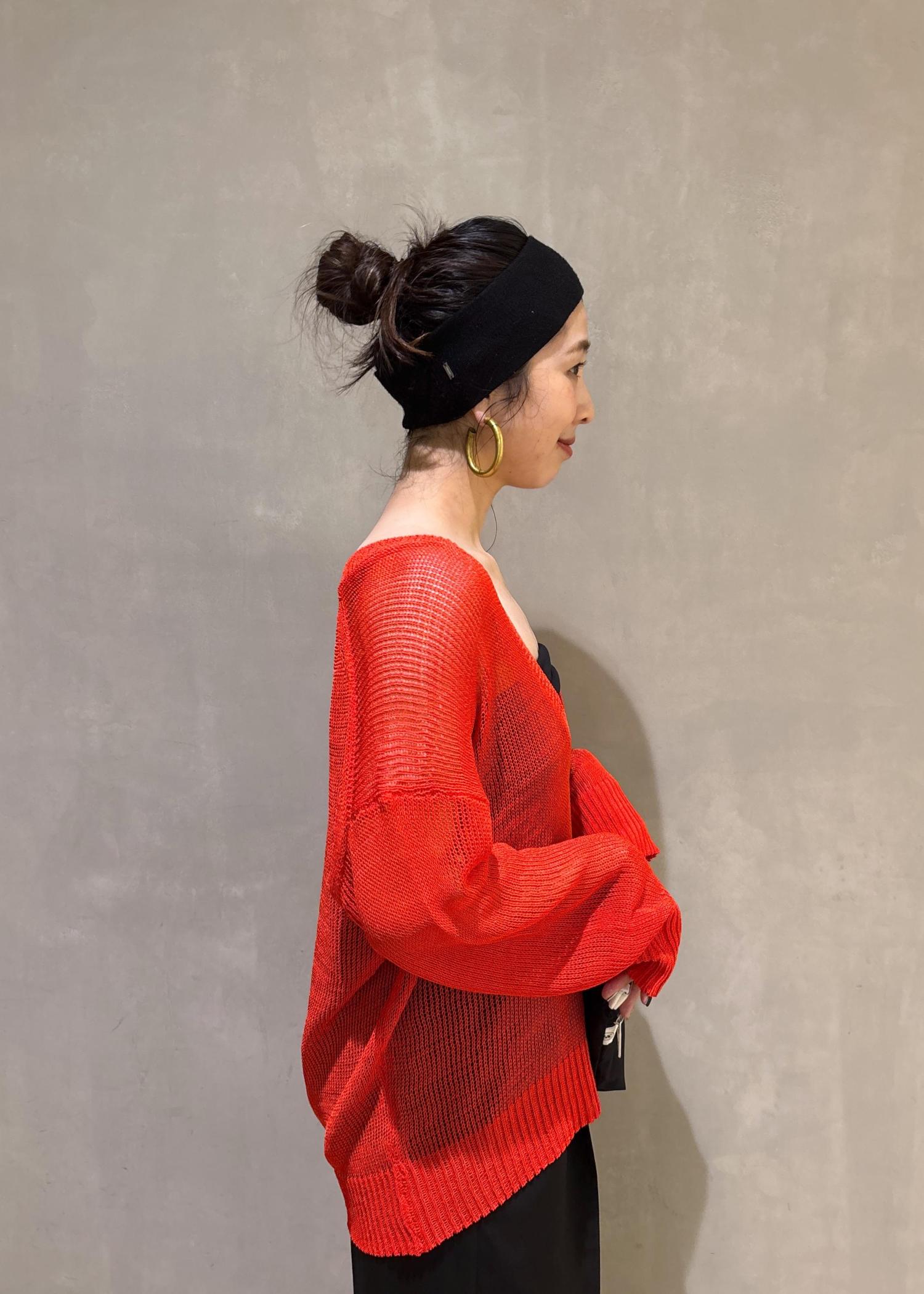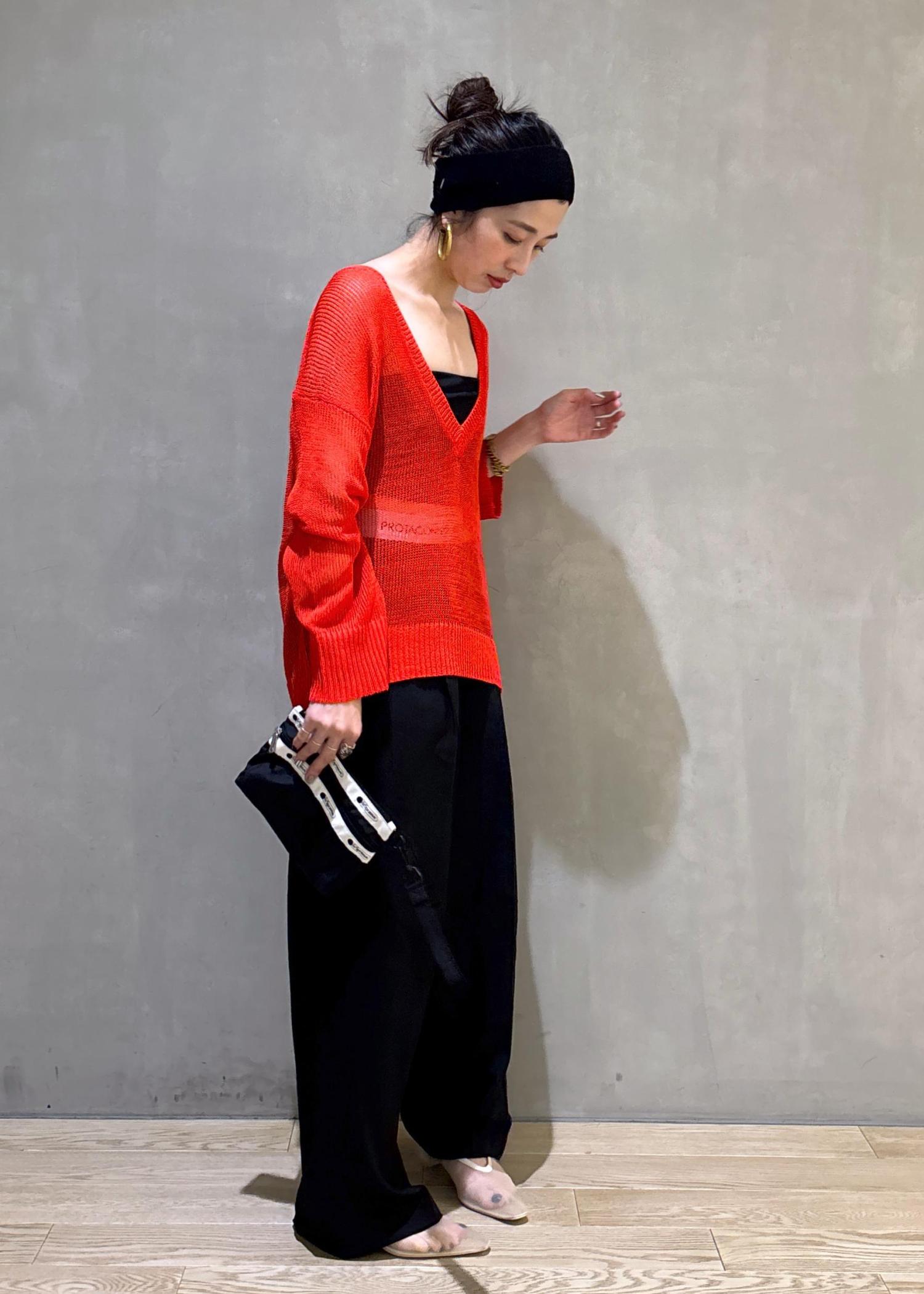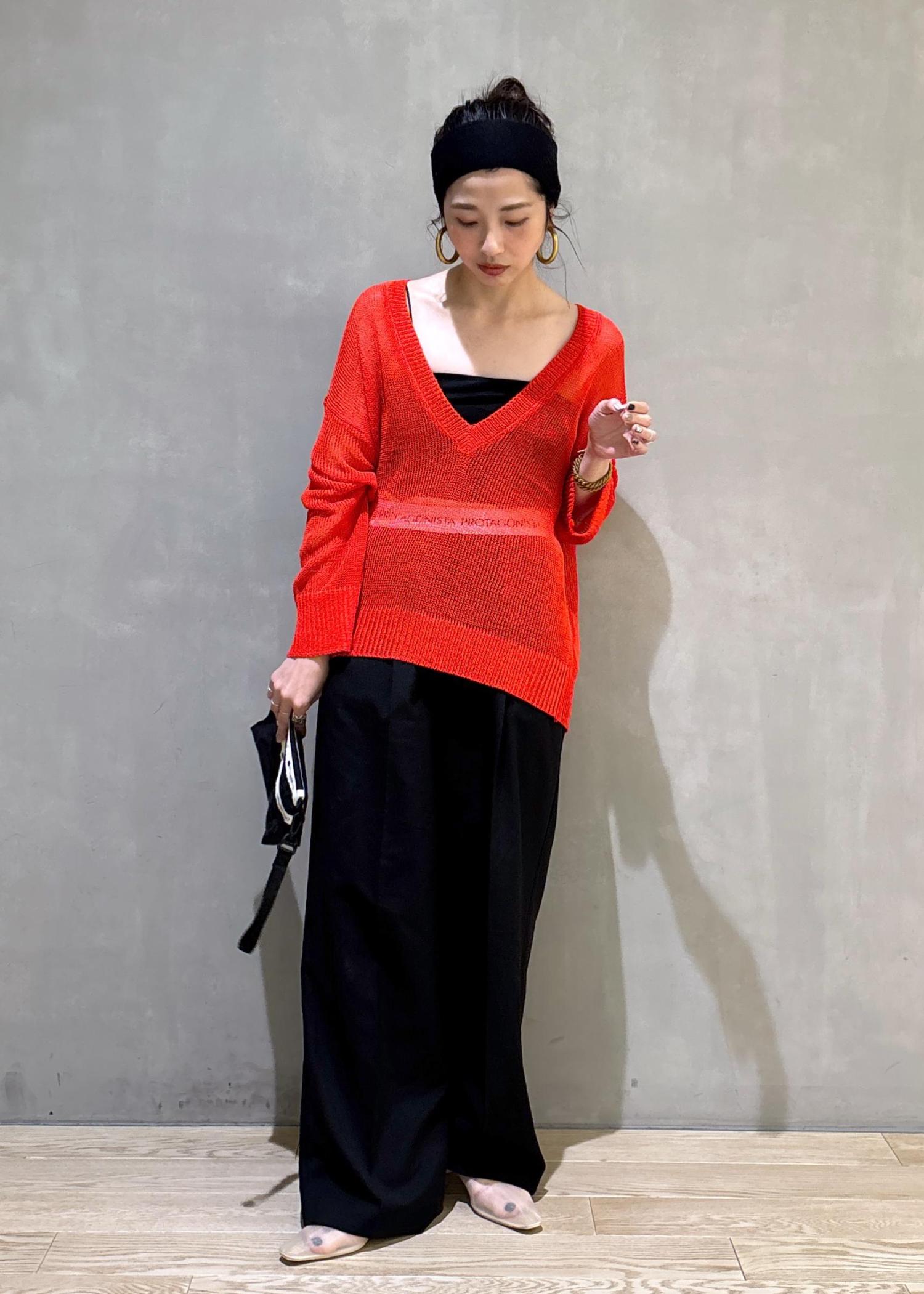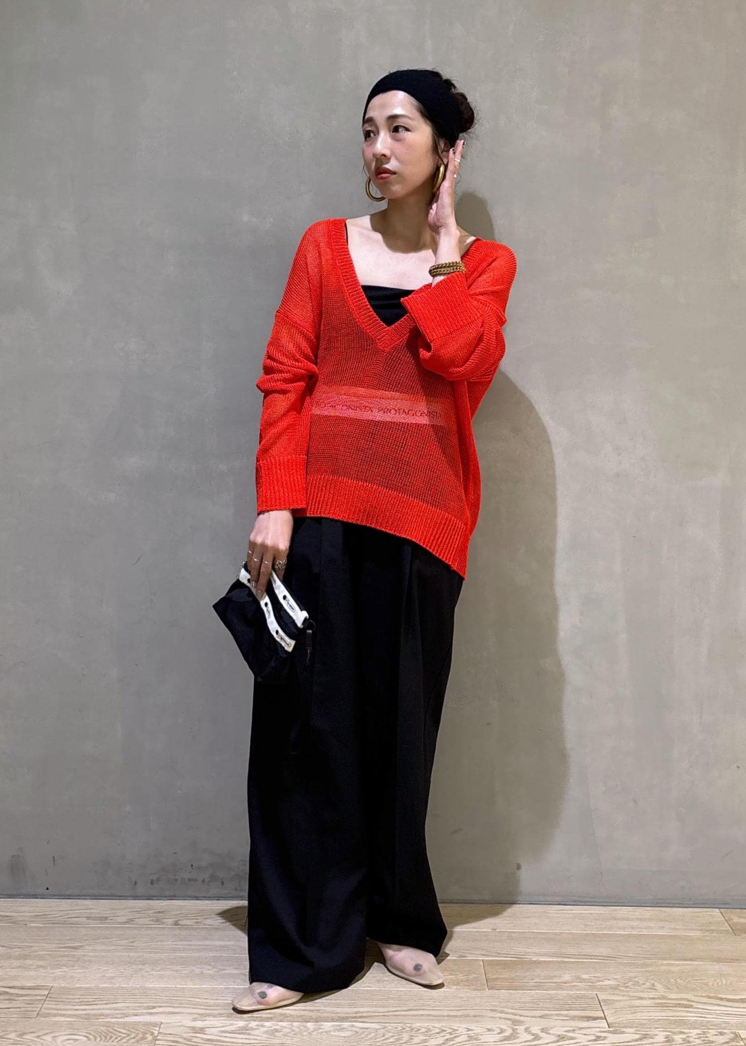 ADAM ET ROPÉ FEMMEシアーVネックトップスレッド系 / F¥15,950レビュー程よくシアー感のあるニットです。