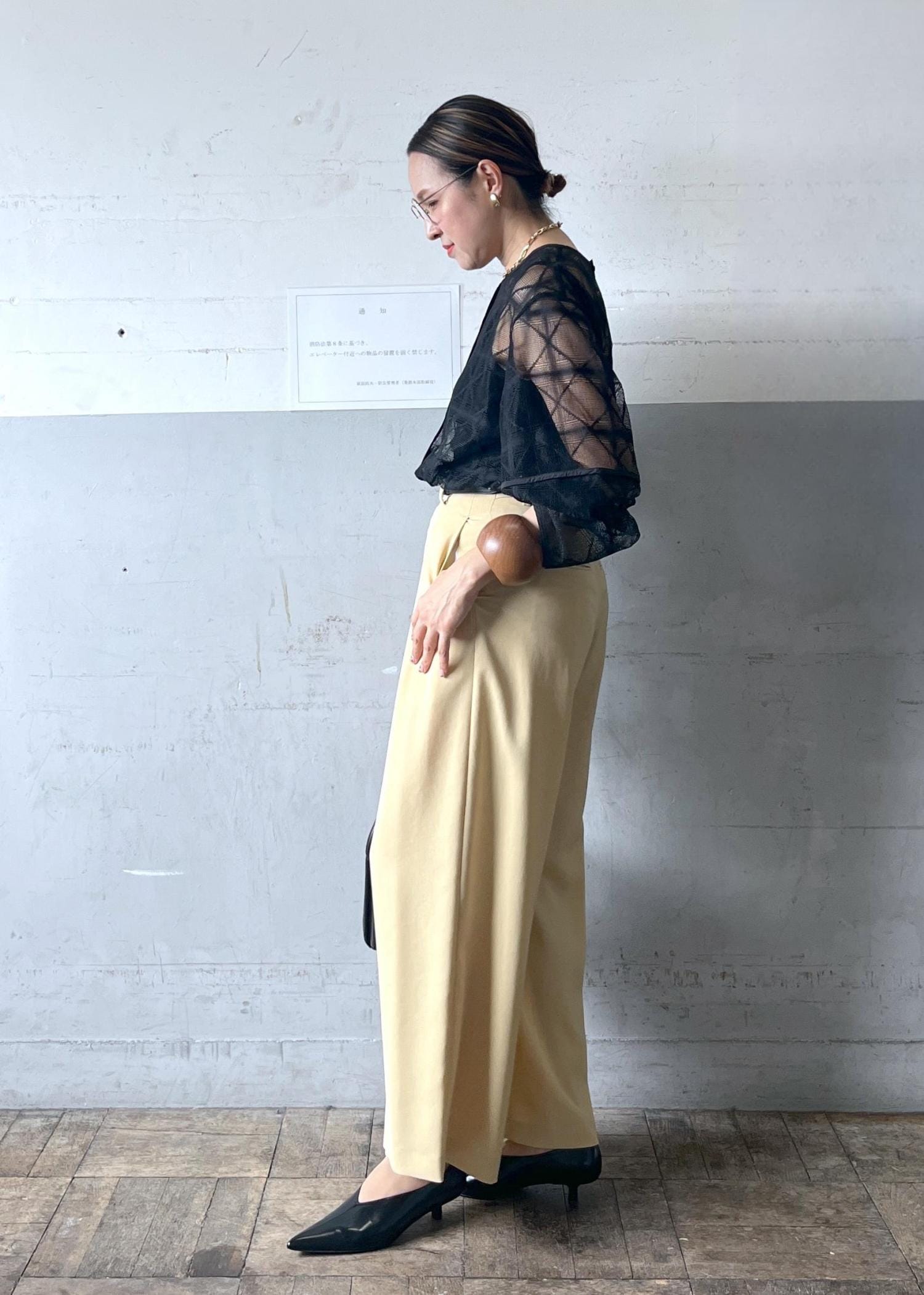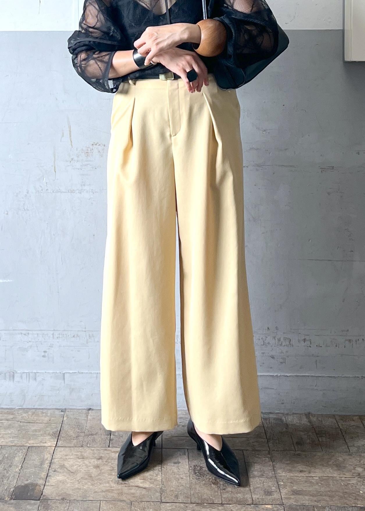 バターイエローが可愛いスラックスと合わせると