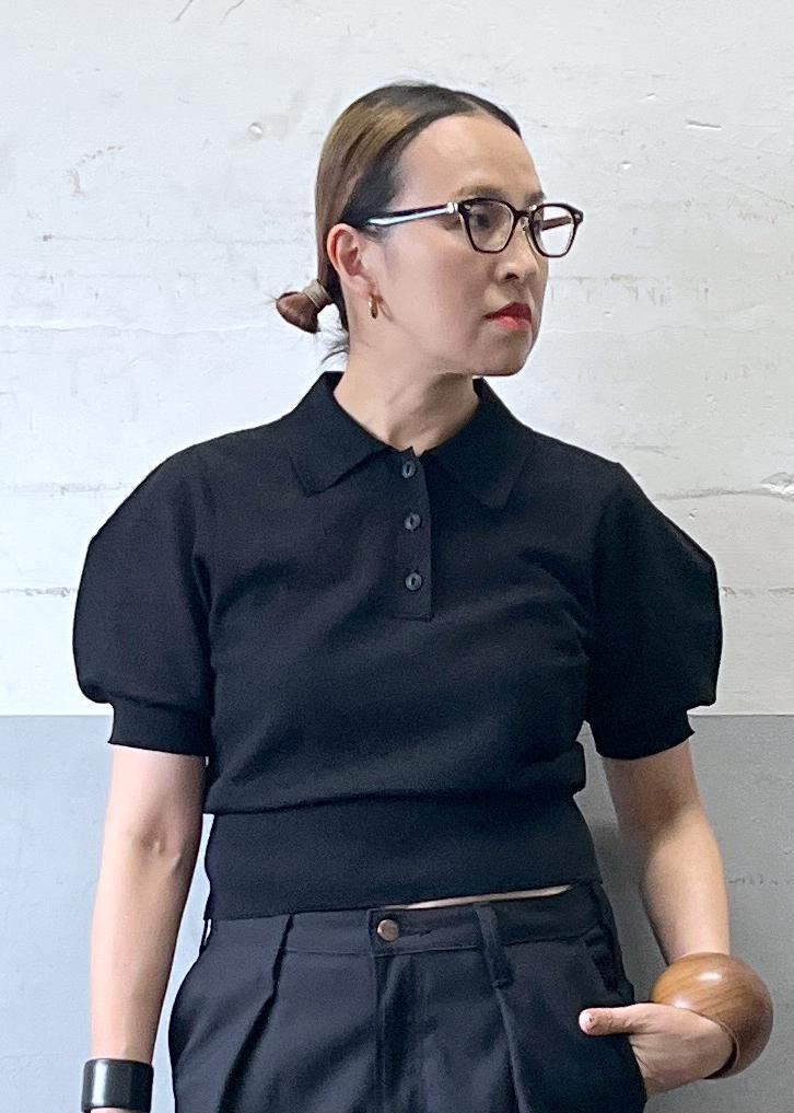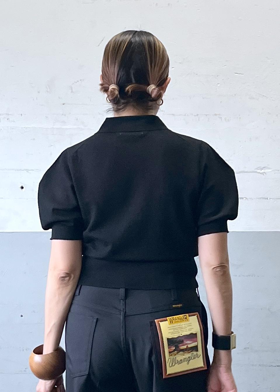 ADAM ET ROPÉ FEMMEラミーニットポロシャツブラック系 / F¥15,400レビューシアー感のあるニットを使用したポロ型のニットは、ボリュームスリーブがポイントの可愛いデザイン♡ウエストのリブも程よいテンションで締まってくれるので窮屈感もなく着ていただけます。とてもシンプルですがボトムを選ばないデザインポロ、オススメです♪