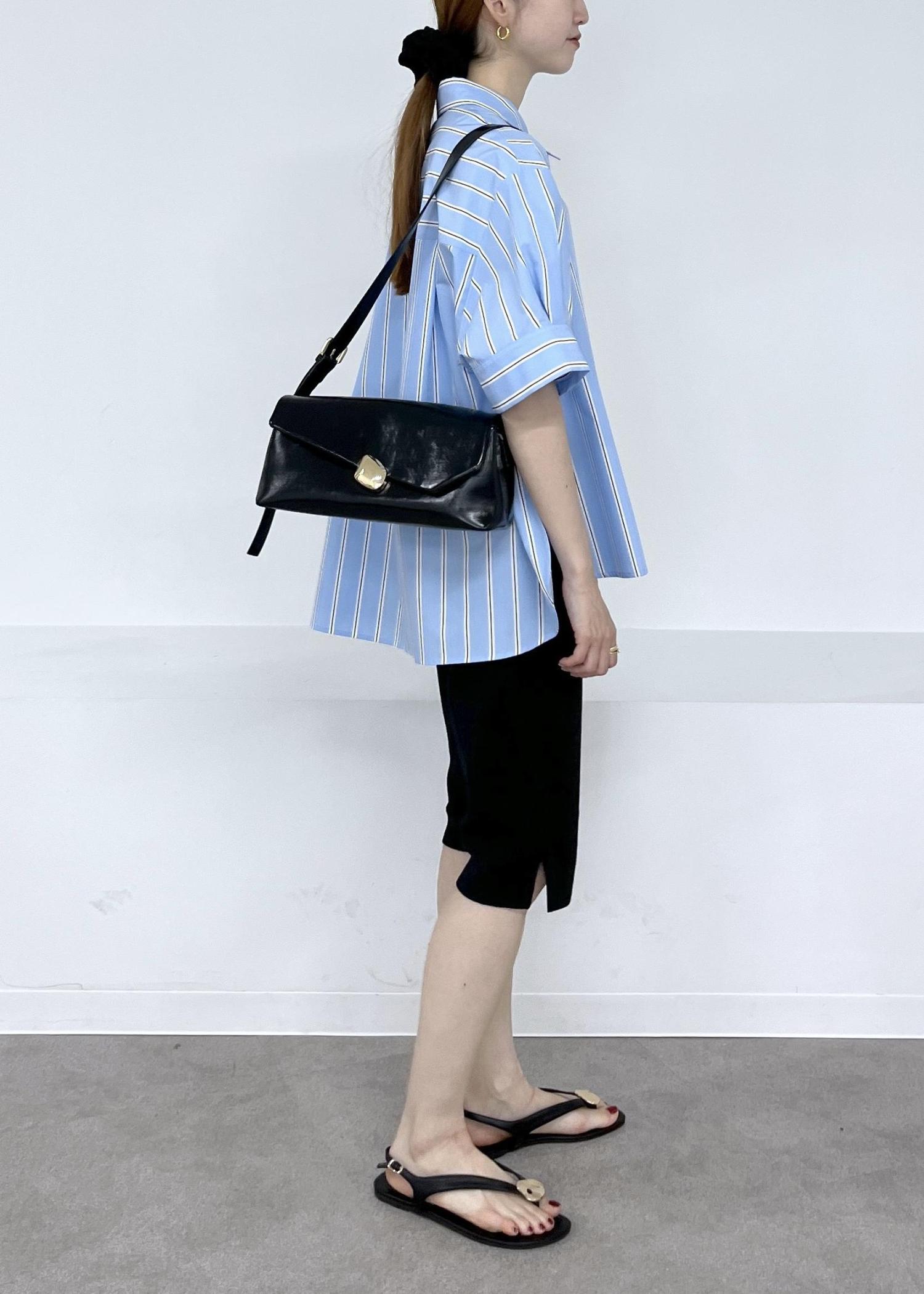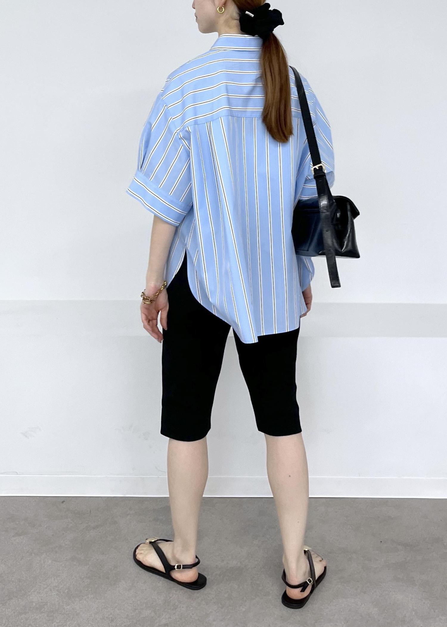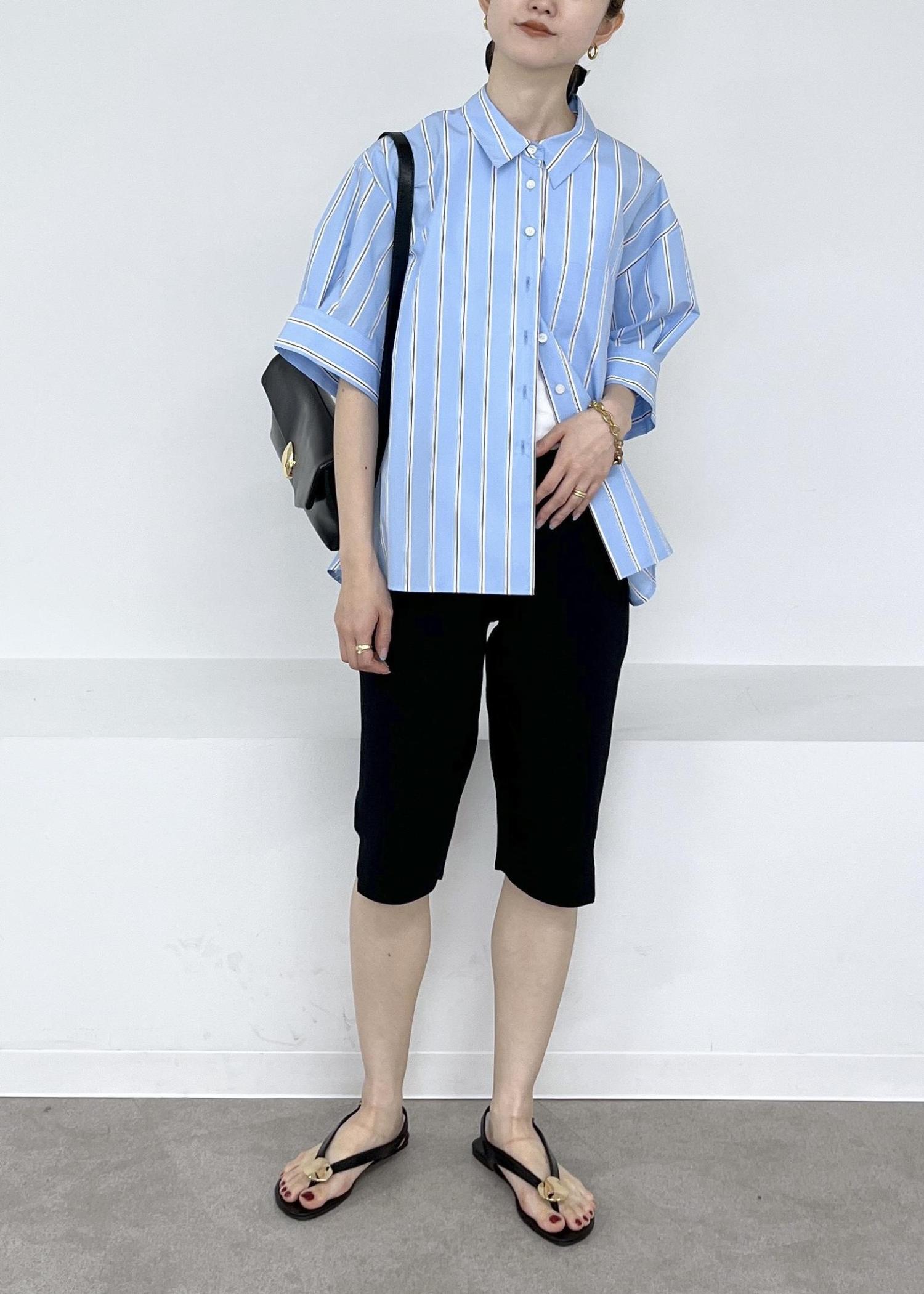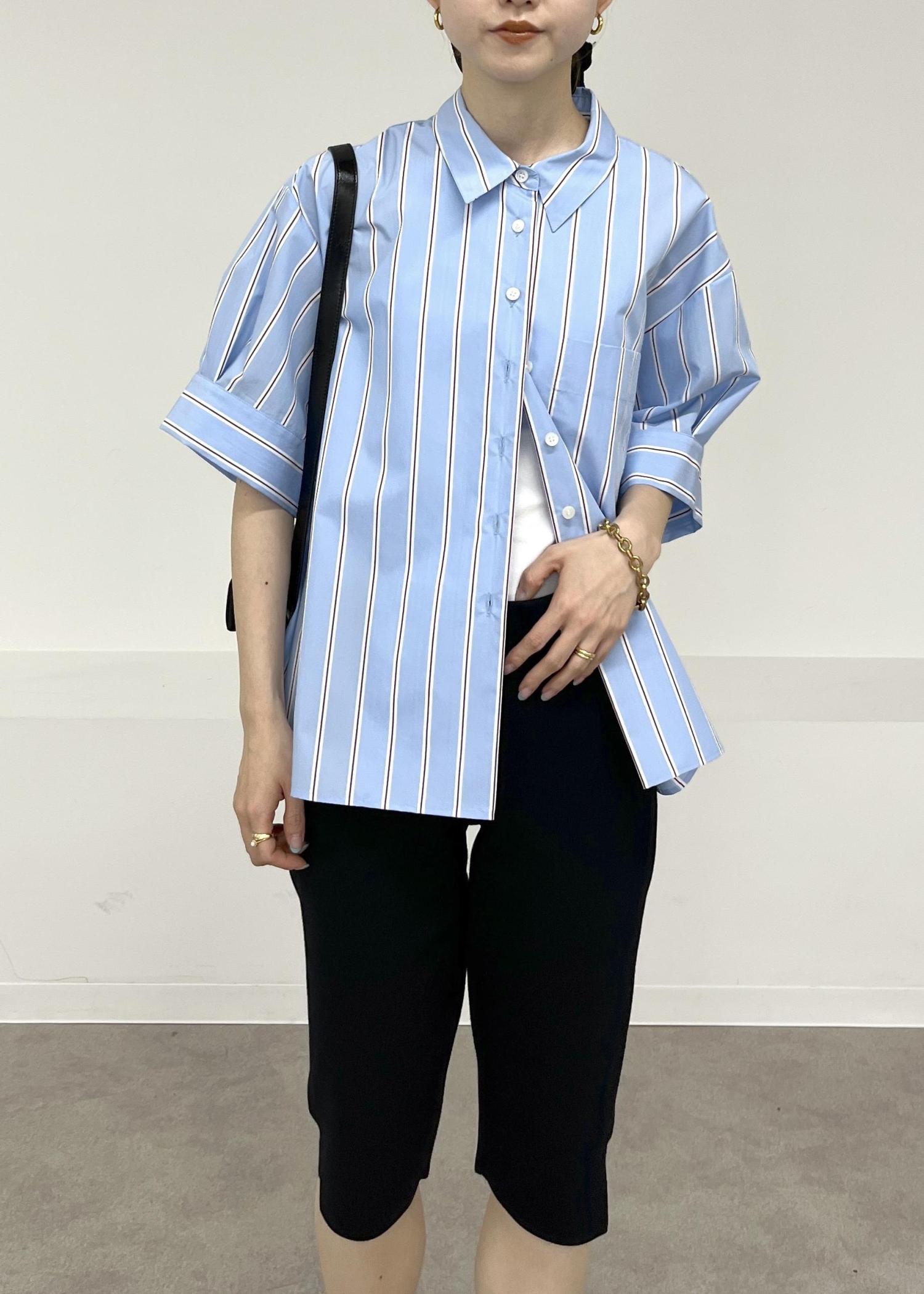 アウトレットADAM ET ROPÉ FEMME【サステナブル】バウンスカフステントラインシャツブルー系 / F¥7,568レビューややハリのある素材感でシワになりにくいです。サラッとしており、ゆったりとしているので肌離れも抜群◎ヒップが隠れるくらいの長さです。