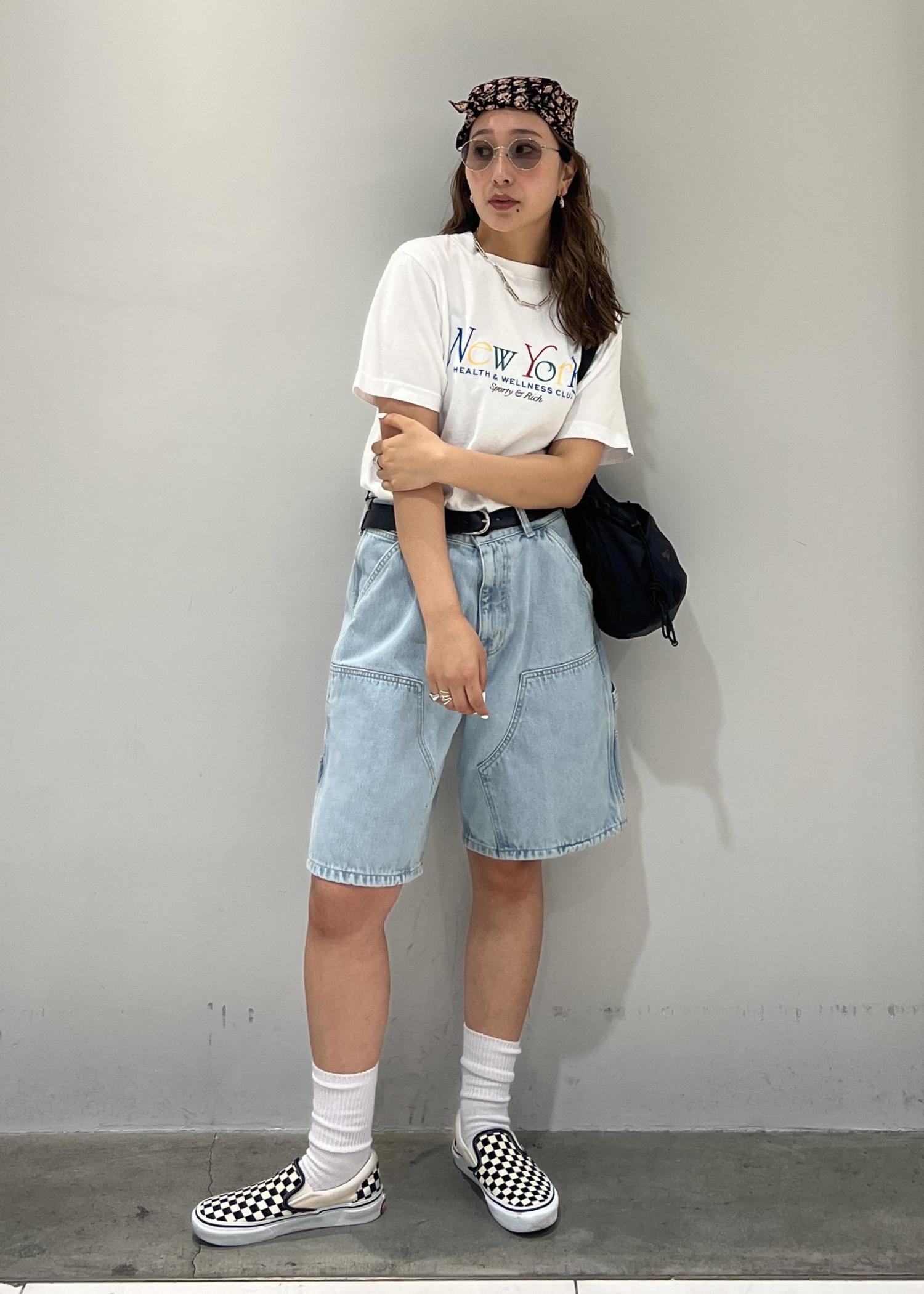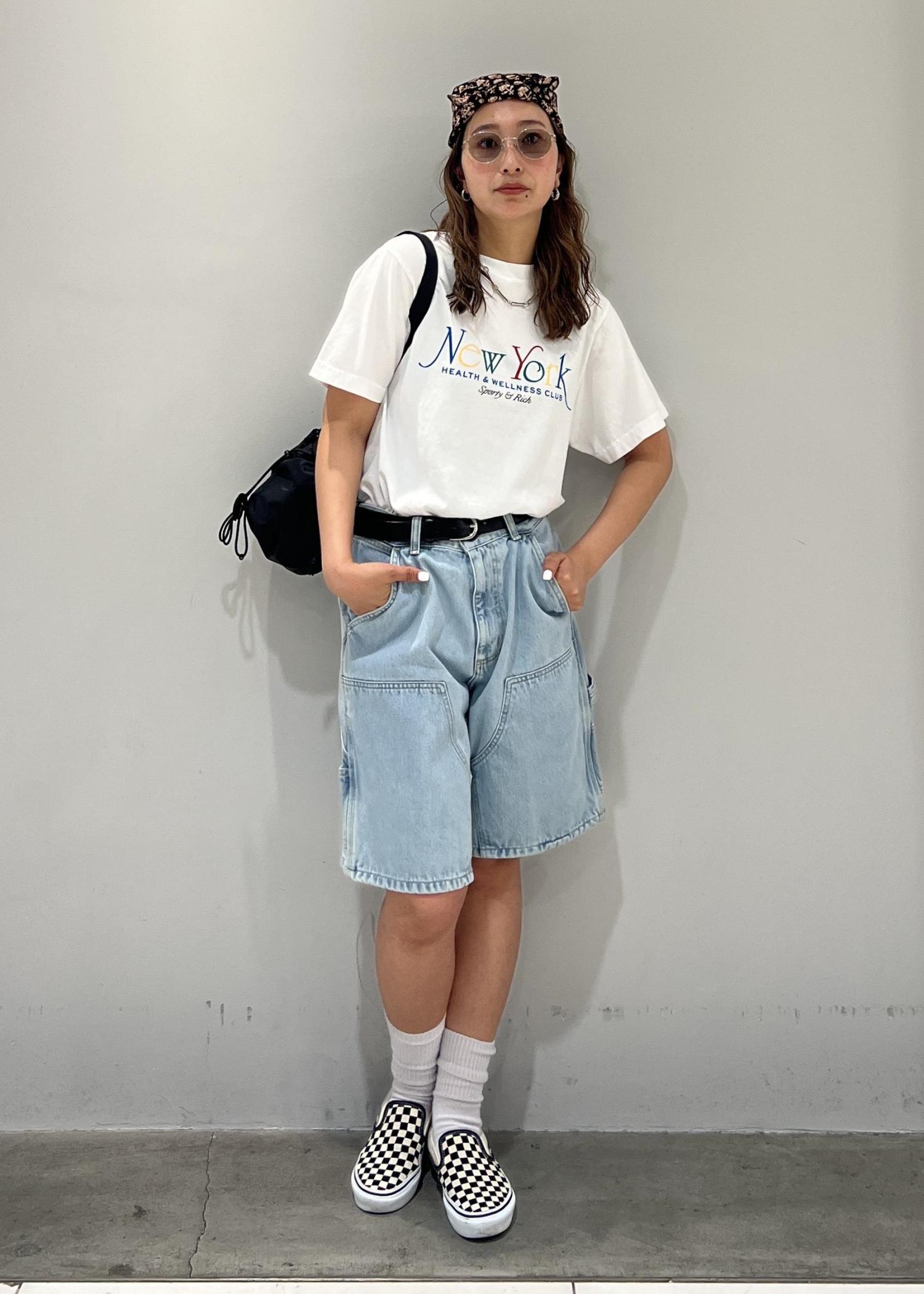 Tシャツにハーフパンツやデニムなどのシンプルな物に