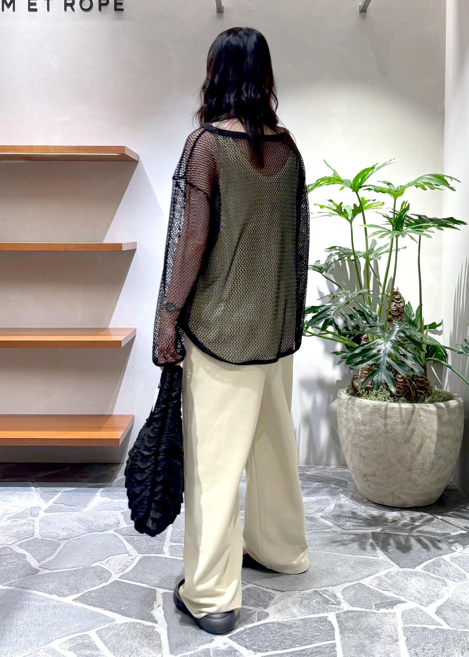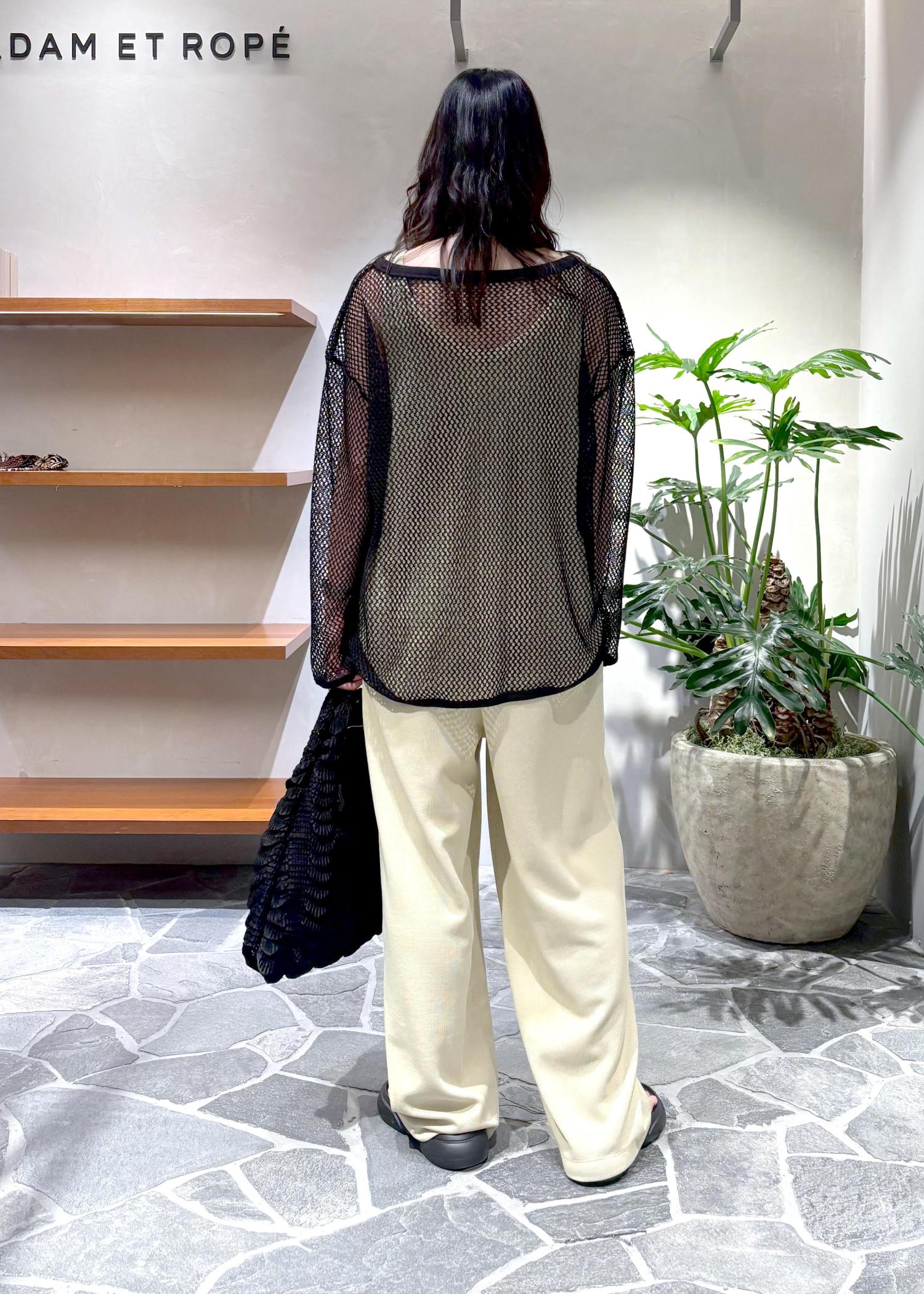 アウトレットADAM ET ROPÉ FEMMEメッシュロンTブラック / F¥3,960レビューネックラインが横に広く、女性らしさを感じさせるメッシュプルオーバー。