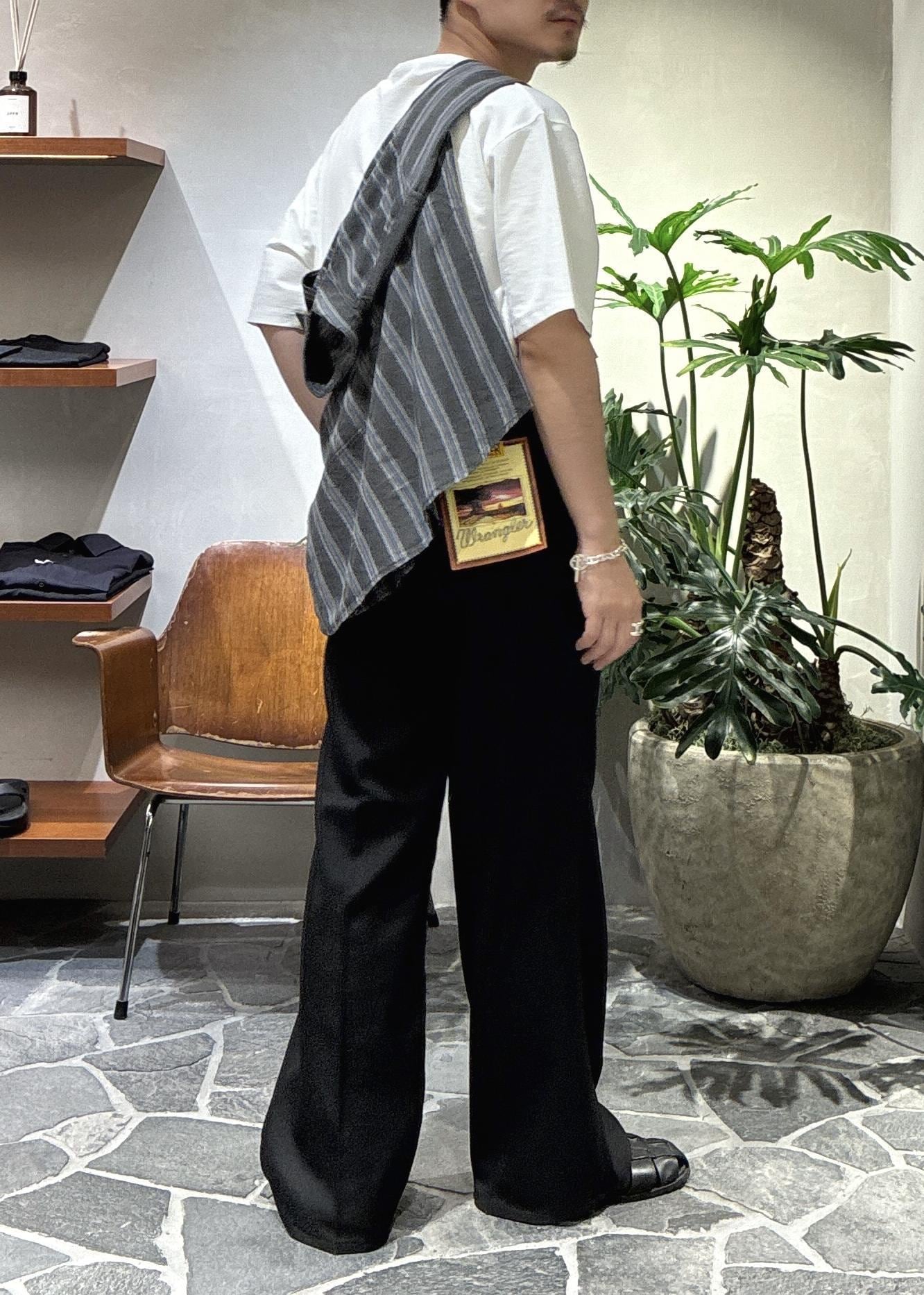 ADAM ET ROPÉ HOMME【Wrangler/ラングラー】WRANCHER WIDEブラック / M¥9,900レビュータックが入っているので、腰回りは程よく余裕を持って着用できます。かなり扱いやすい生地感なので、ガシガシと気兼ねなく着用しやすいのが◎