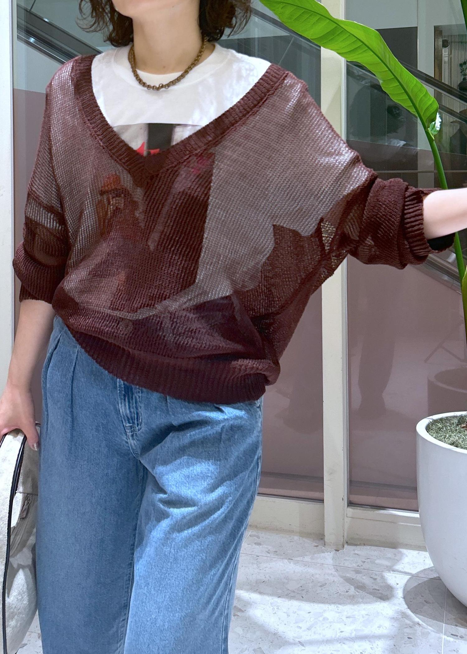 オーバーサイズで深めのVネック。抜け感がオシャレなニットです。