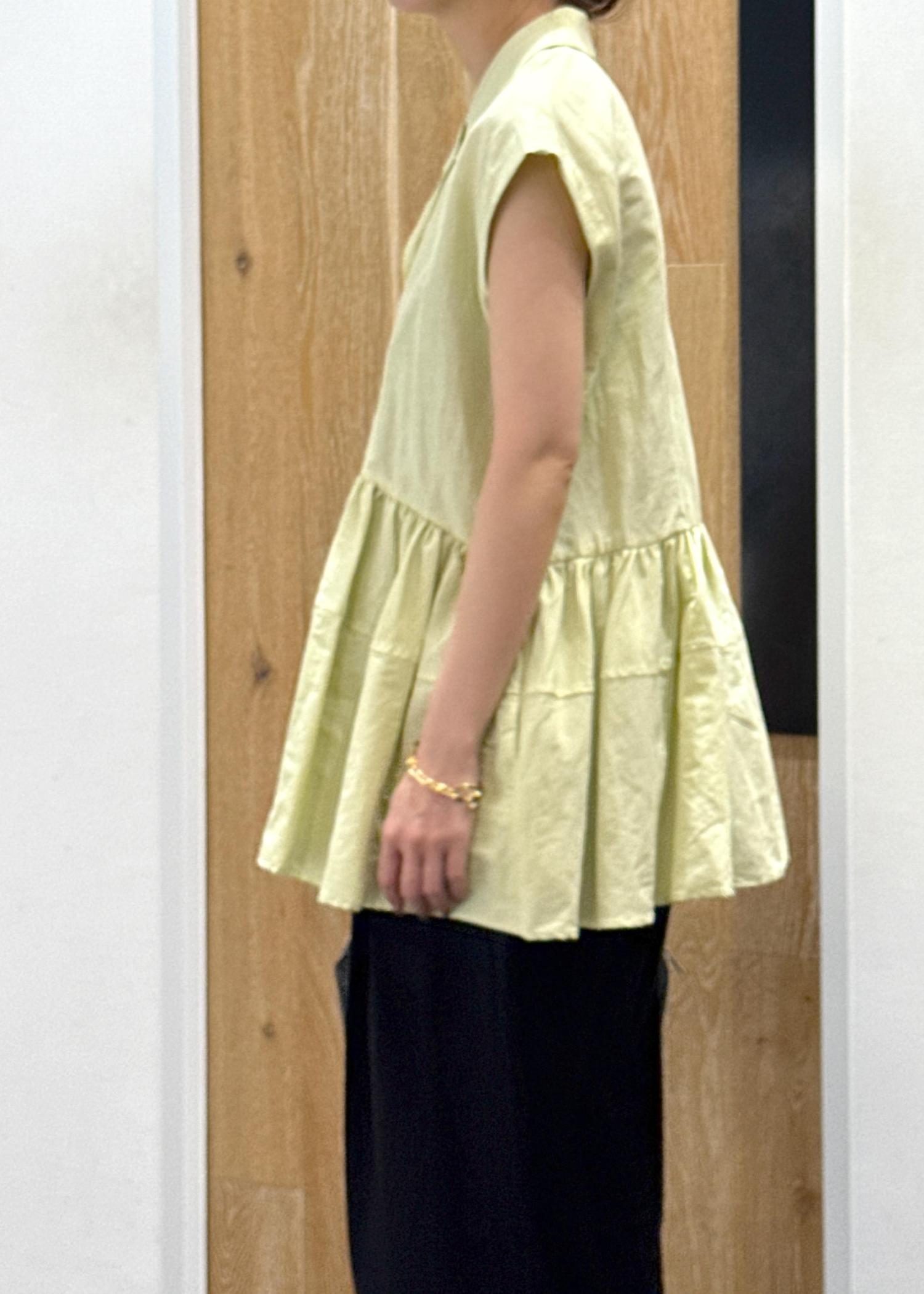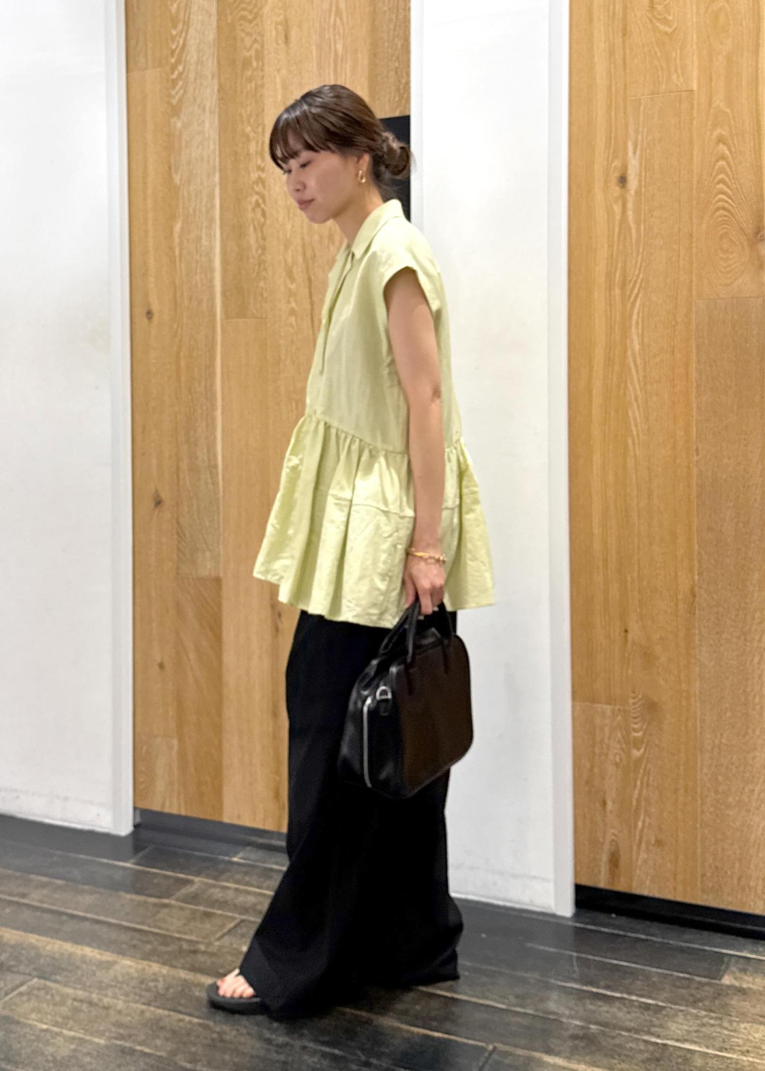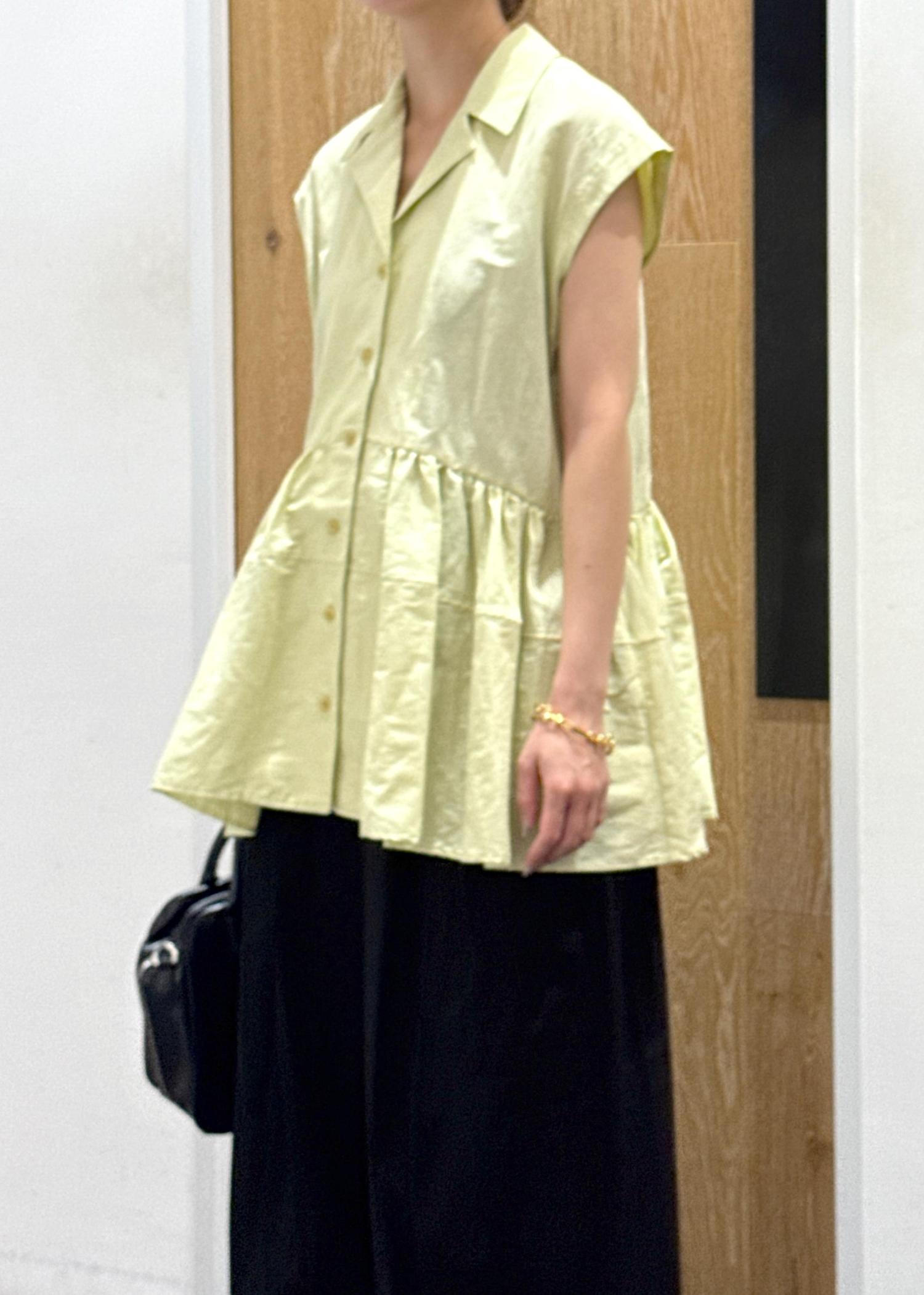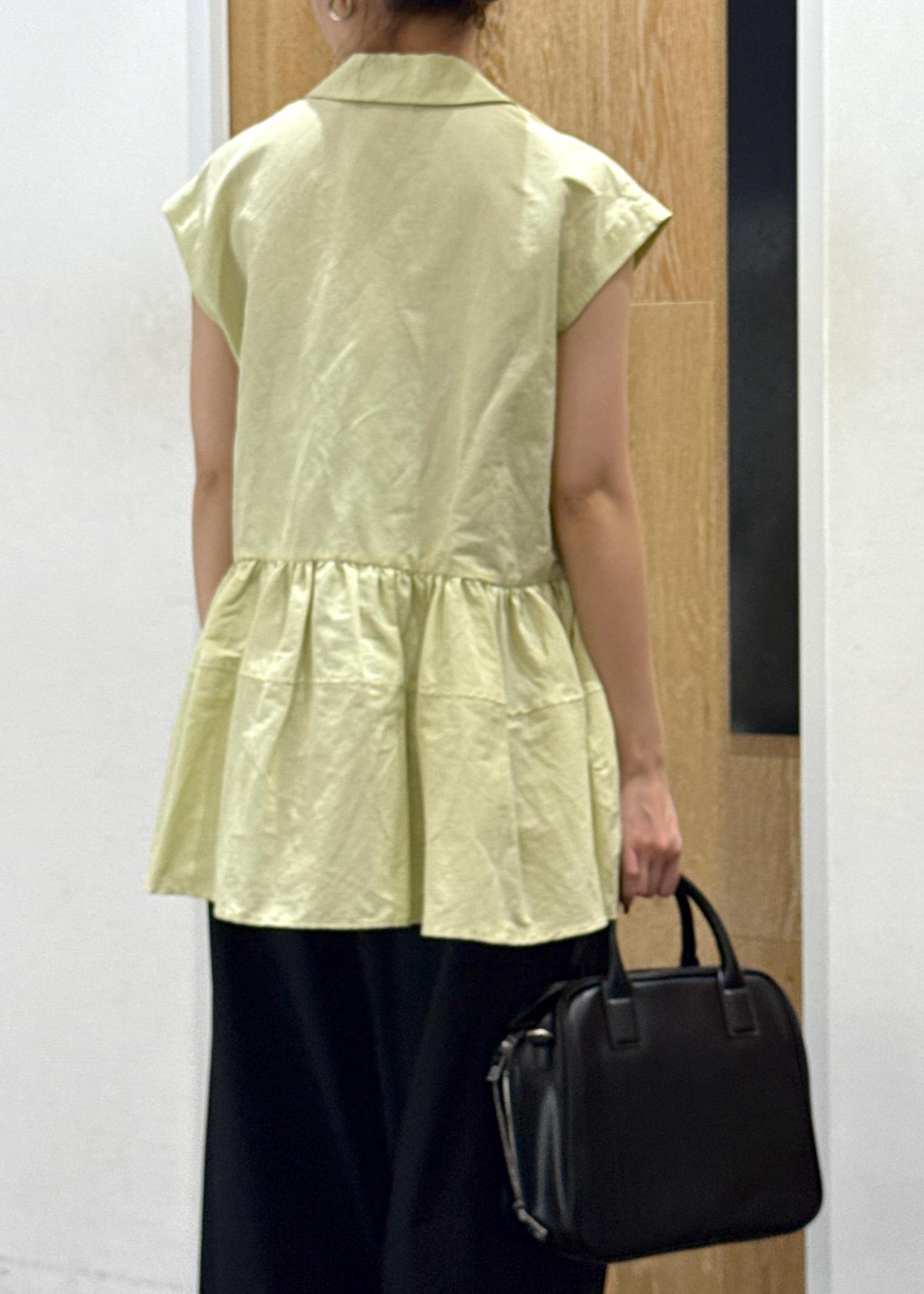 アウトレットADAM ET ROPÉ FEMME【サステナブル】オープンカラーペプラムシャツライトグリーン / F¥6,380レビューハリとシャリ感の素材で清涼感があり、肌離れするので涼しく着れます。お尻が隠れる丈なので体型カバーもできます。