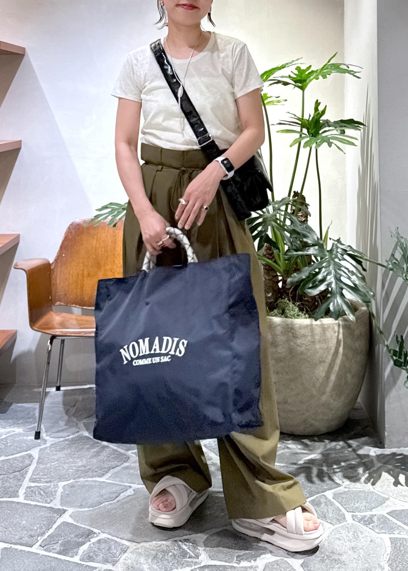 サラッとしたゆるいパンツにクラッシュベロアのTシャツを合わせました!