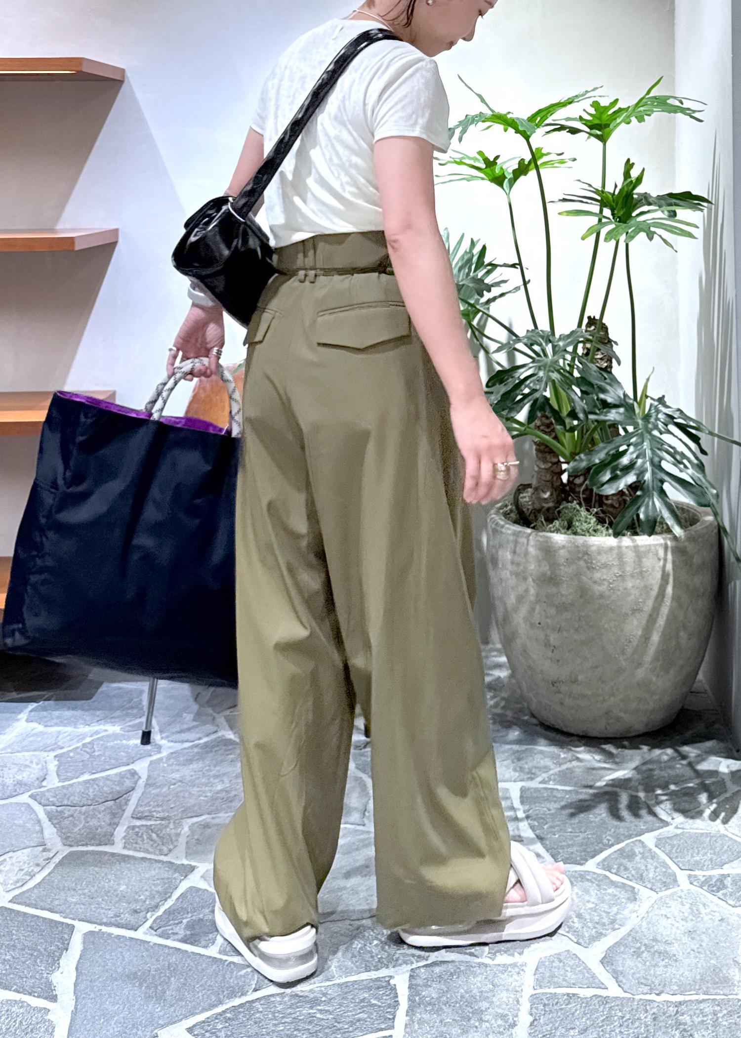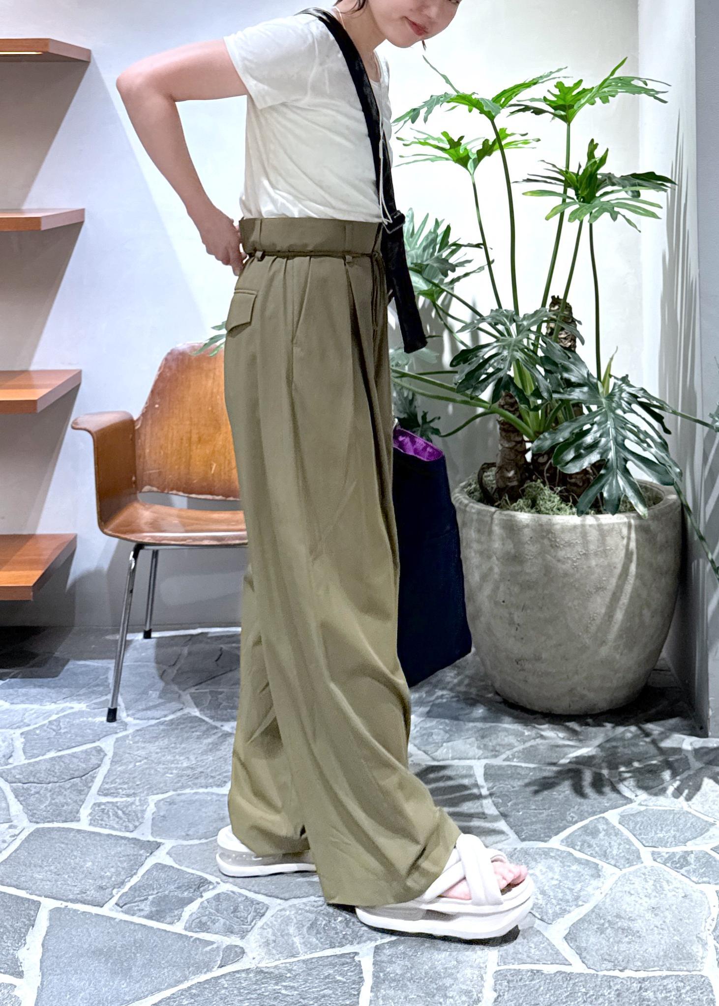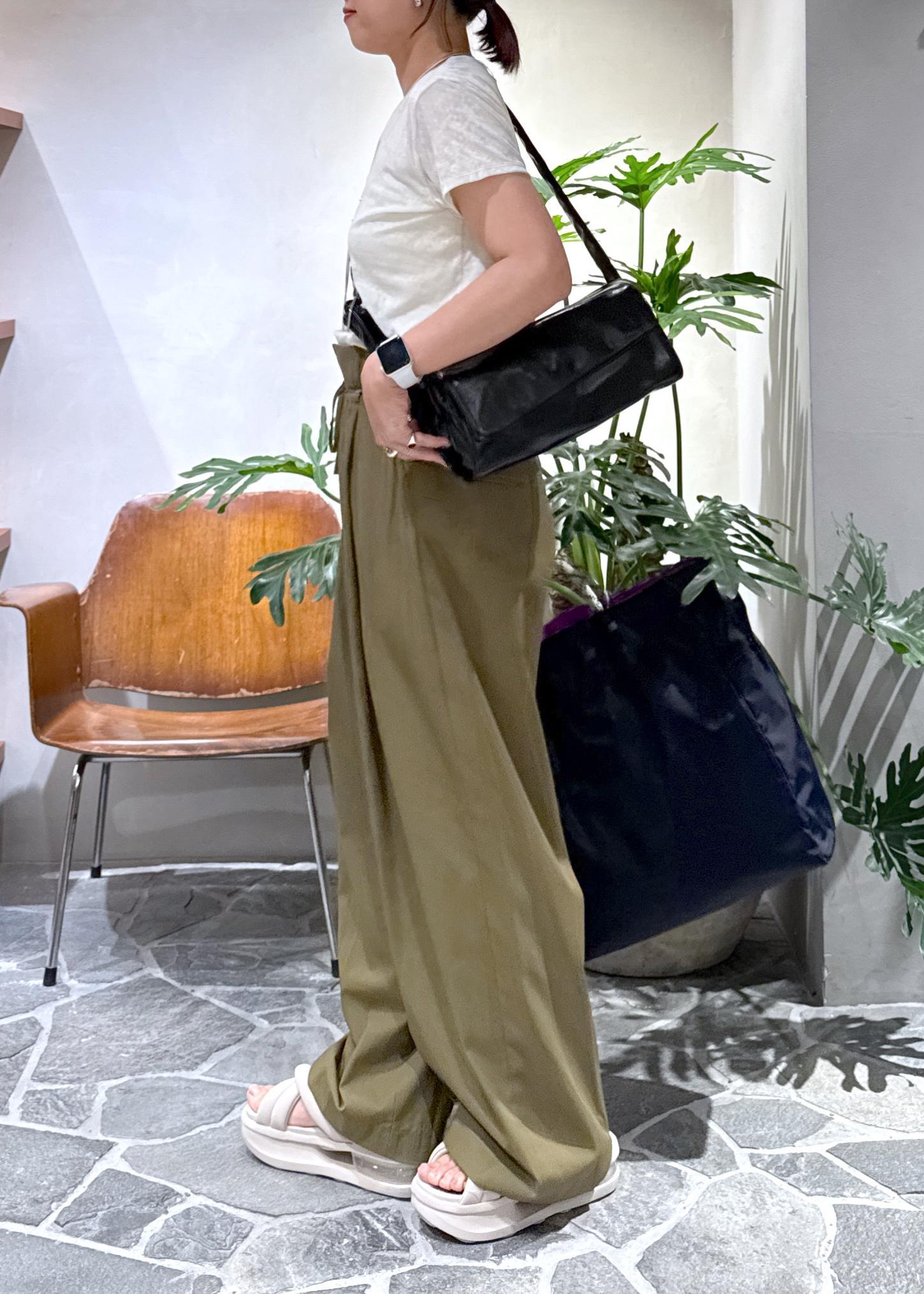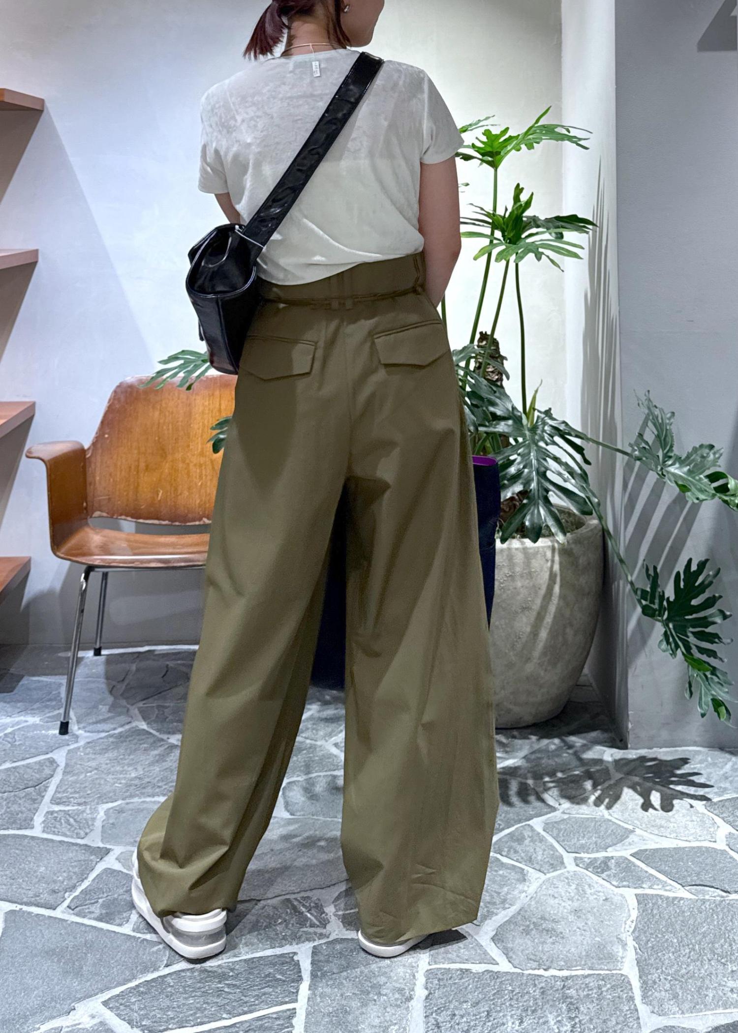 ADAM ET ROPÉ FEMMEドロストドカンパンツカーキ / 36¥24,200レビューツルッとした素材で穿き心地〇。36サイズでも大きめで、ウエストの紐でぎゅっと絞って調節しました。