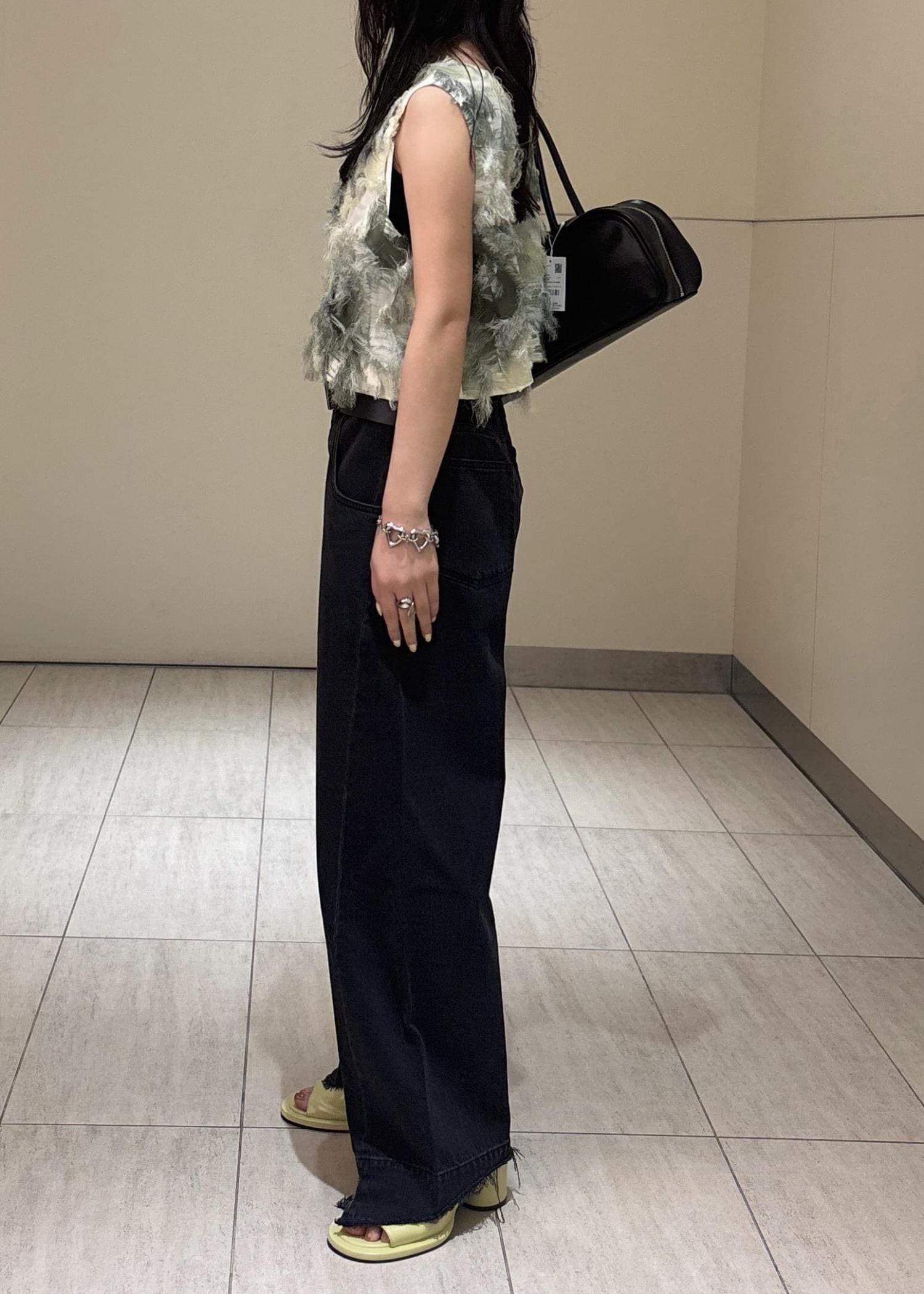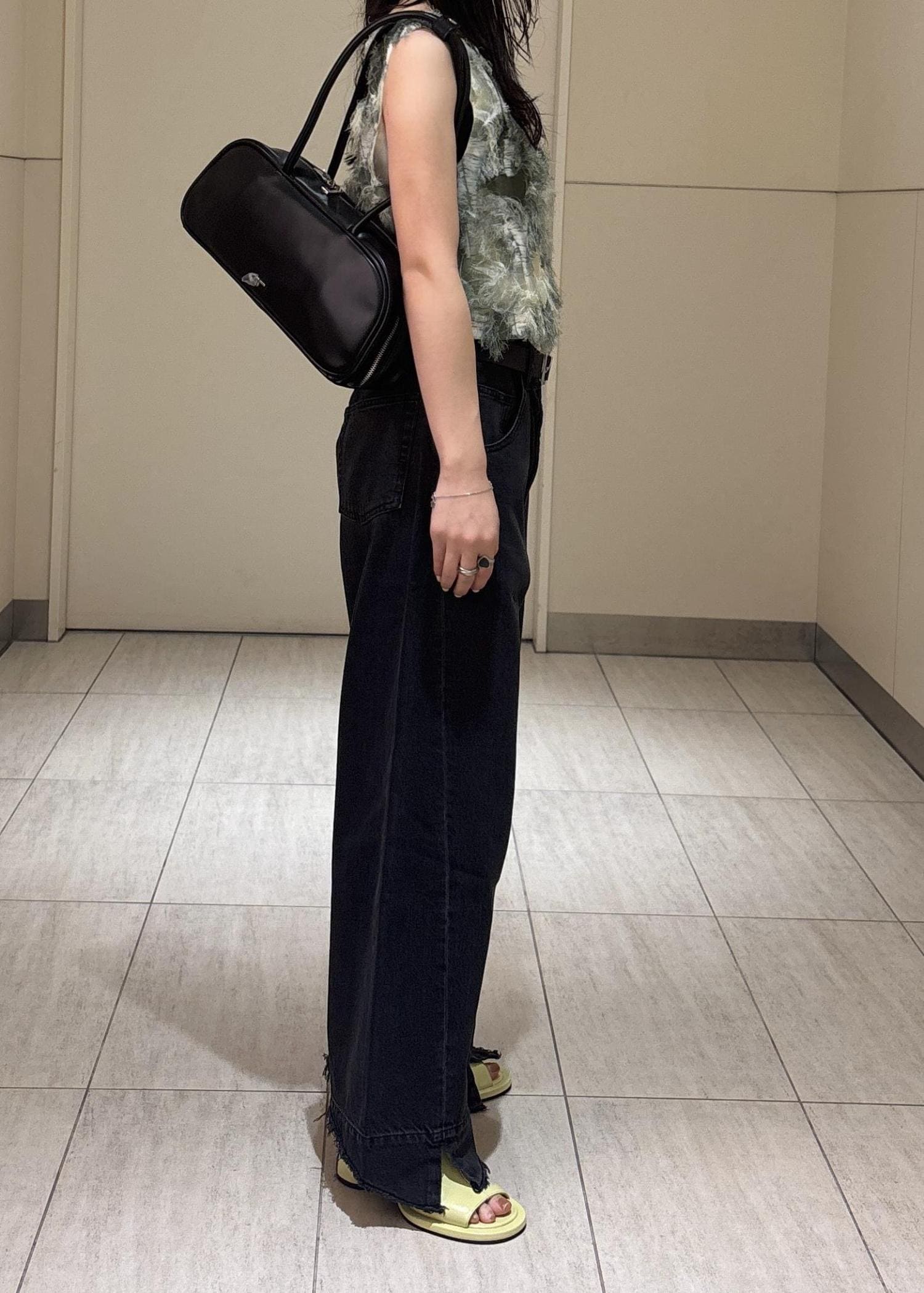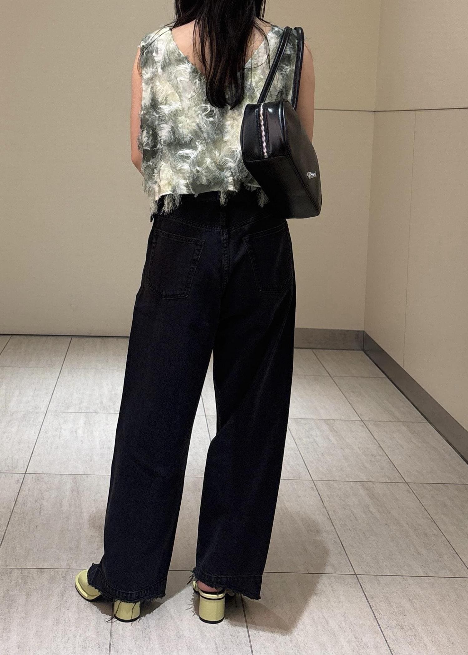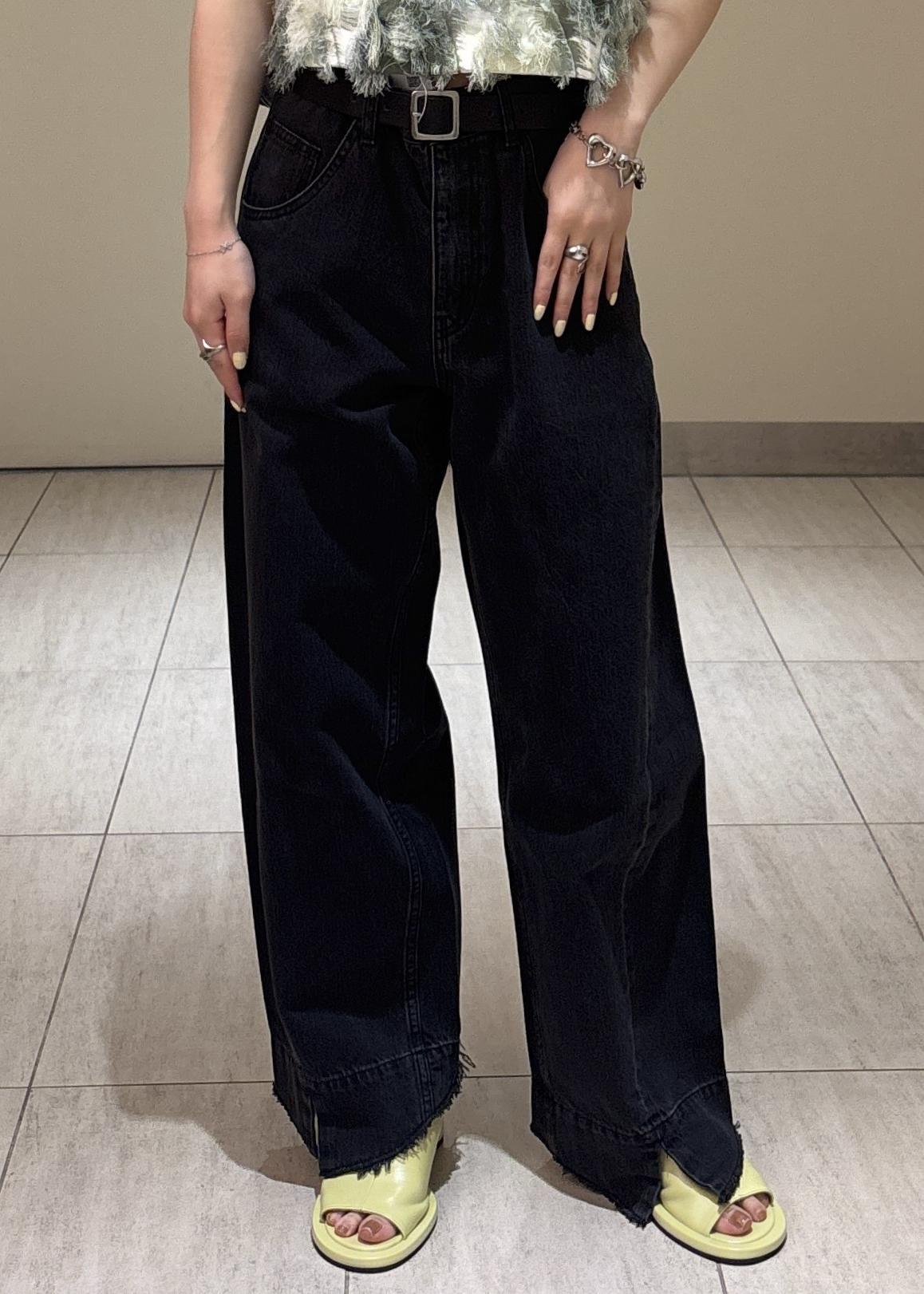 ADAM ET ROPÉ FEMME【サステナブル】・【新色追加】ルーズフィットアジャストデニムブラック系 / 36¥17,930レビュー裾のカットオフデザインで、ラフさがプラスされてこなれ感アップです!身長156cmで36サイズを着用してベルト必須でした。