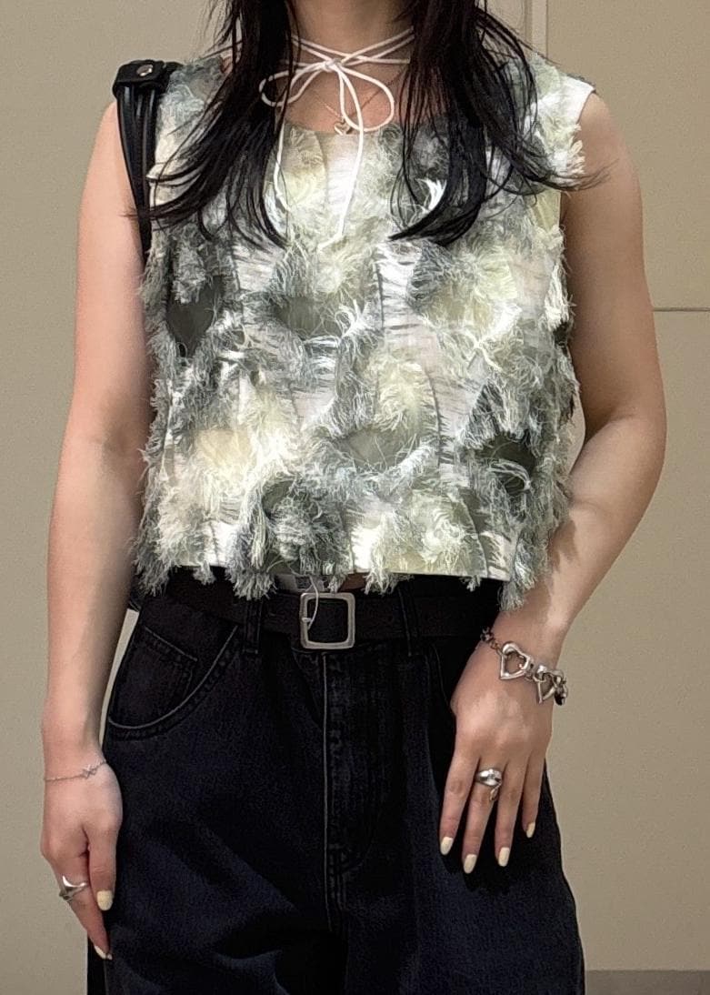今回は大人気のフリンジトップスを着用したコーデを組んでみました。