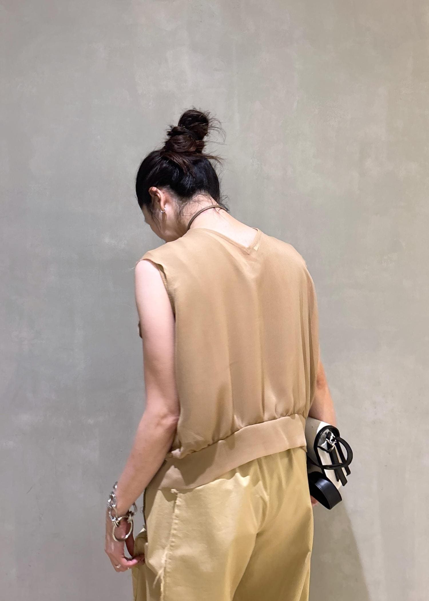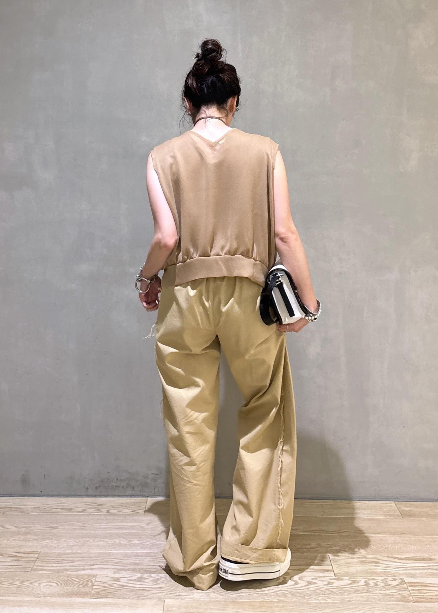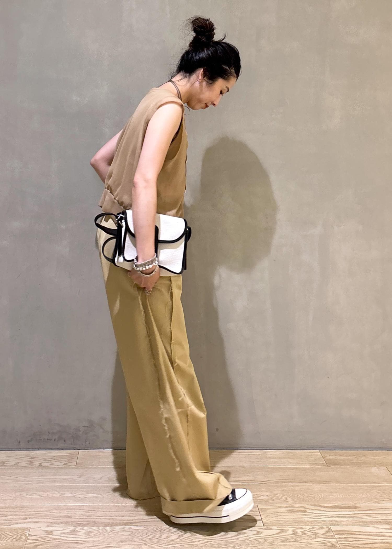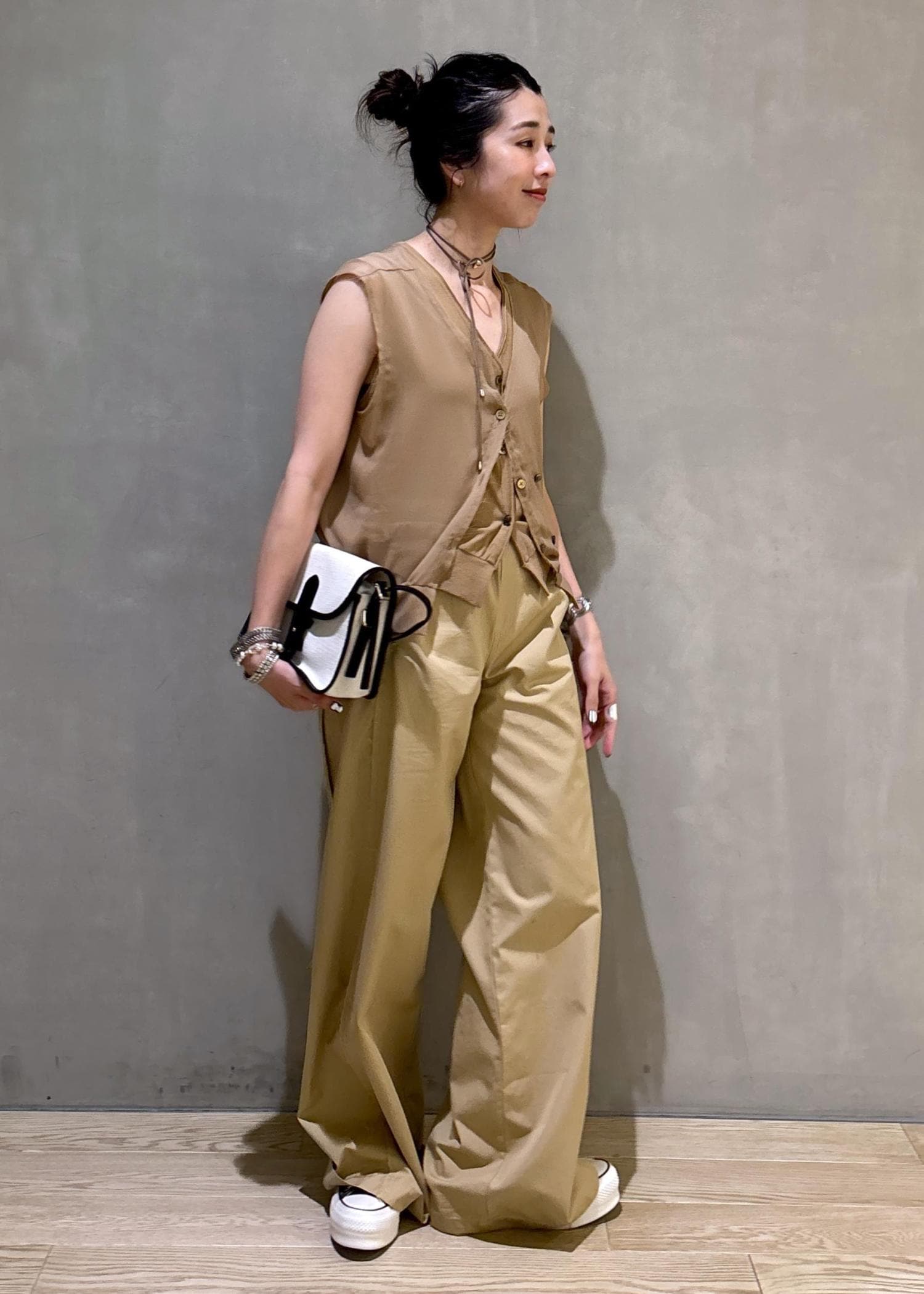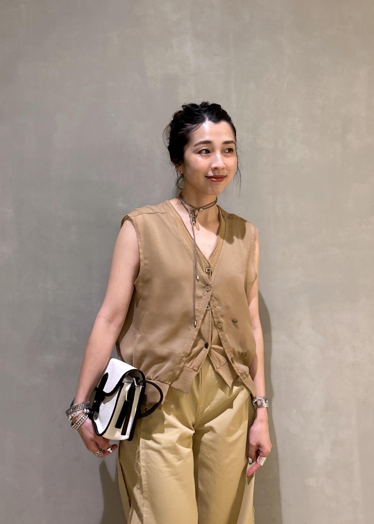 ワントーンで合わせても透け感などニュアンスがポイントになるトップスです!