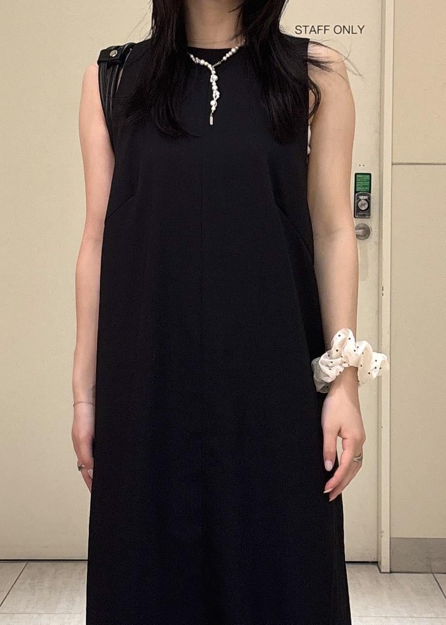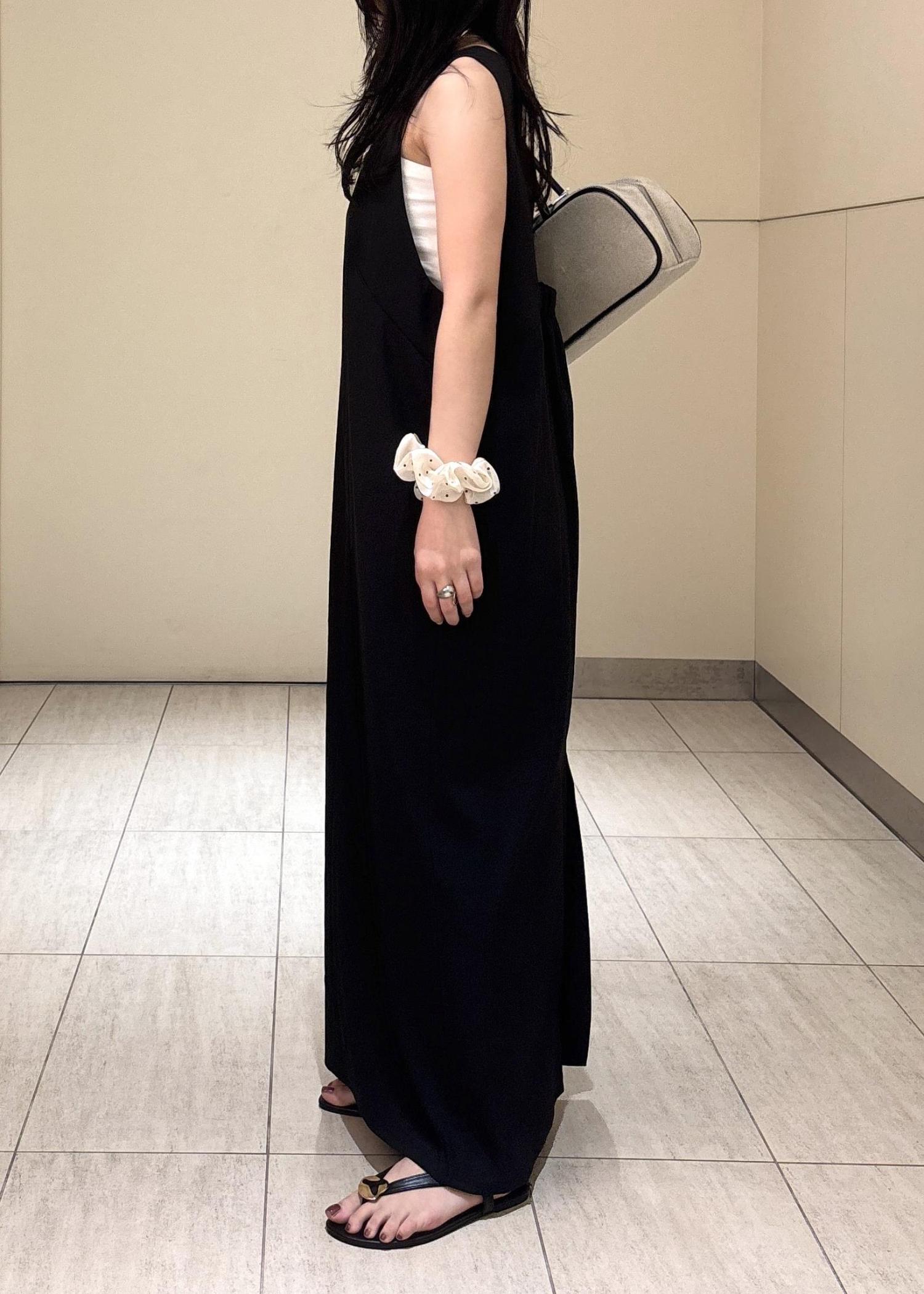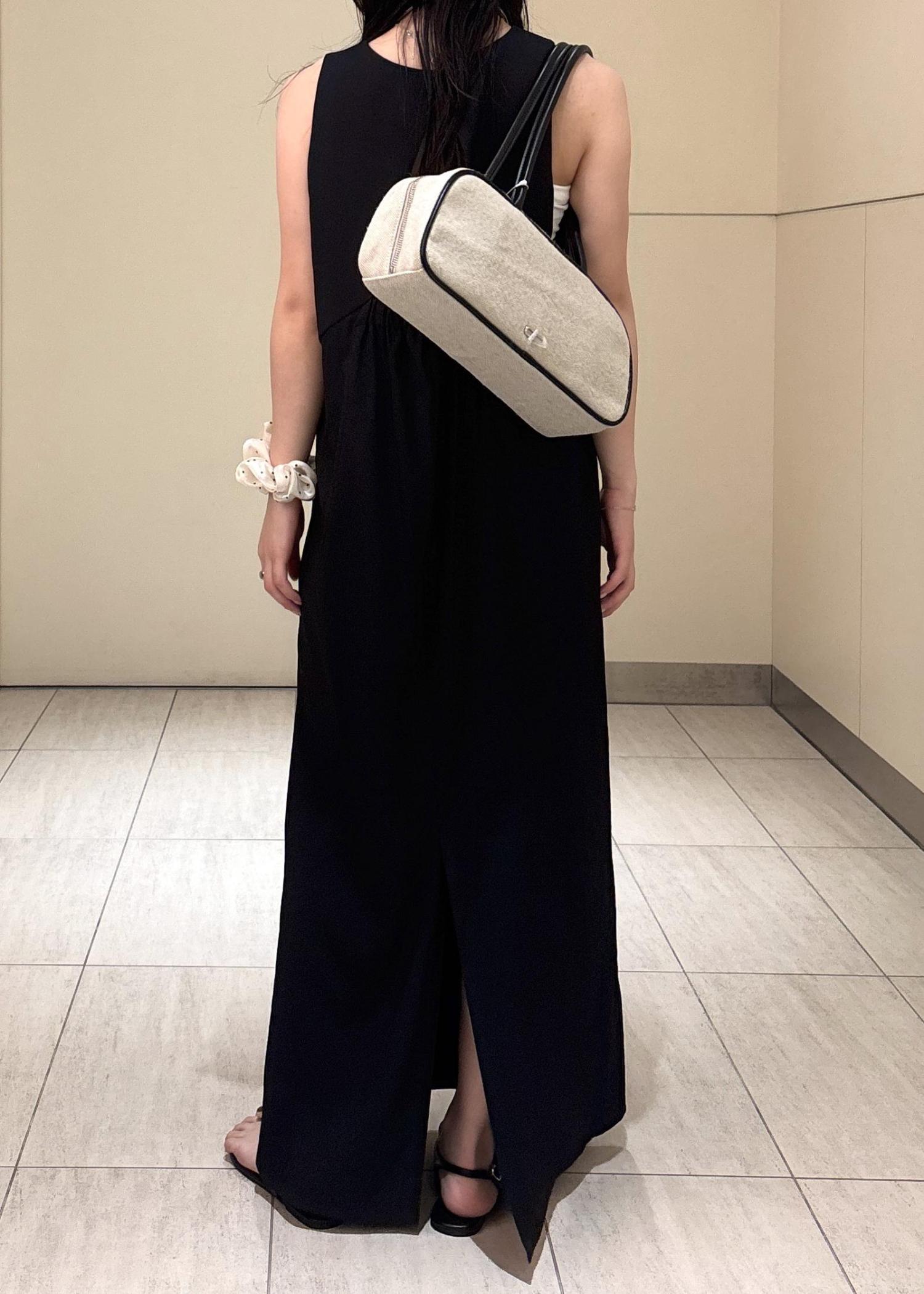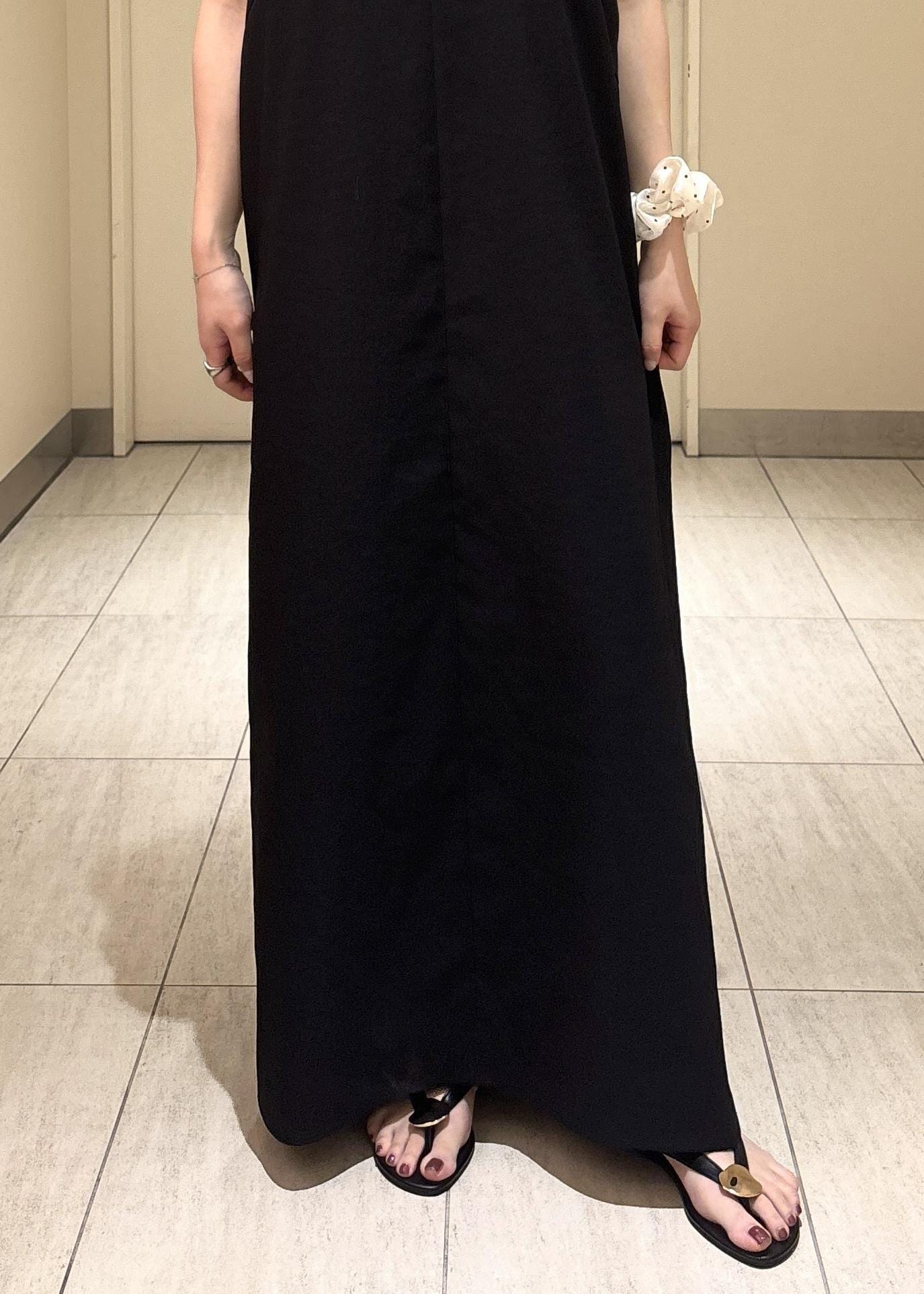 ストンと落ちるIラインシルエットで、縦長効果によりスタイルアップできます。背中がみえるデザインで、足元にはスリットが入っており、抜け感と涼しさもありです◎