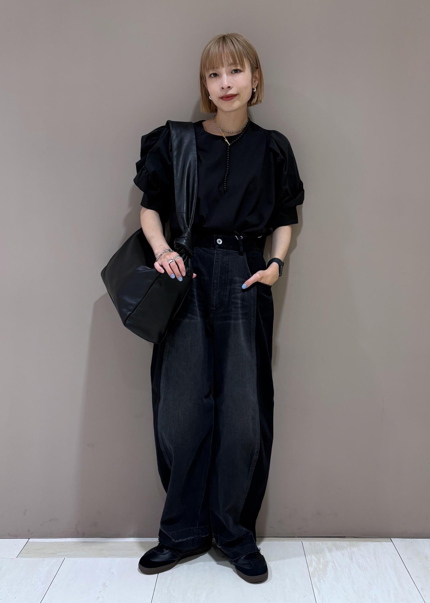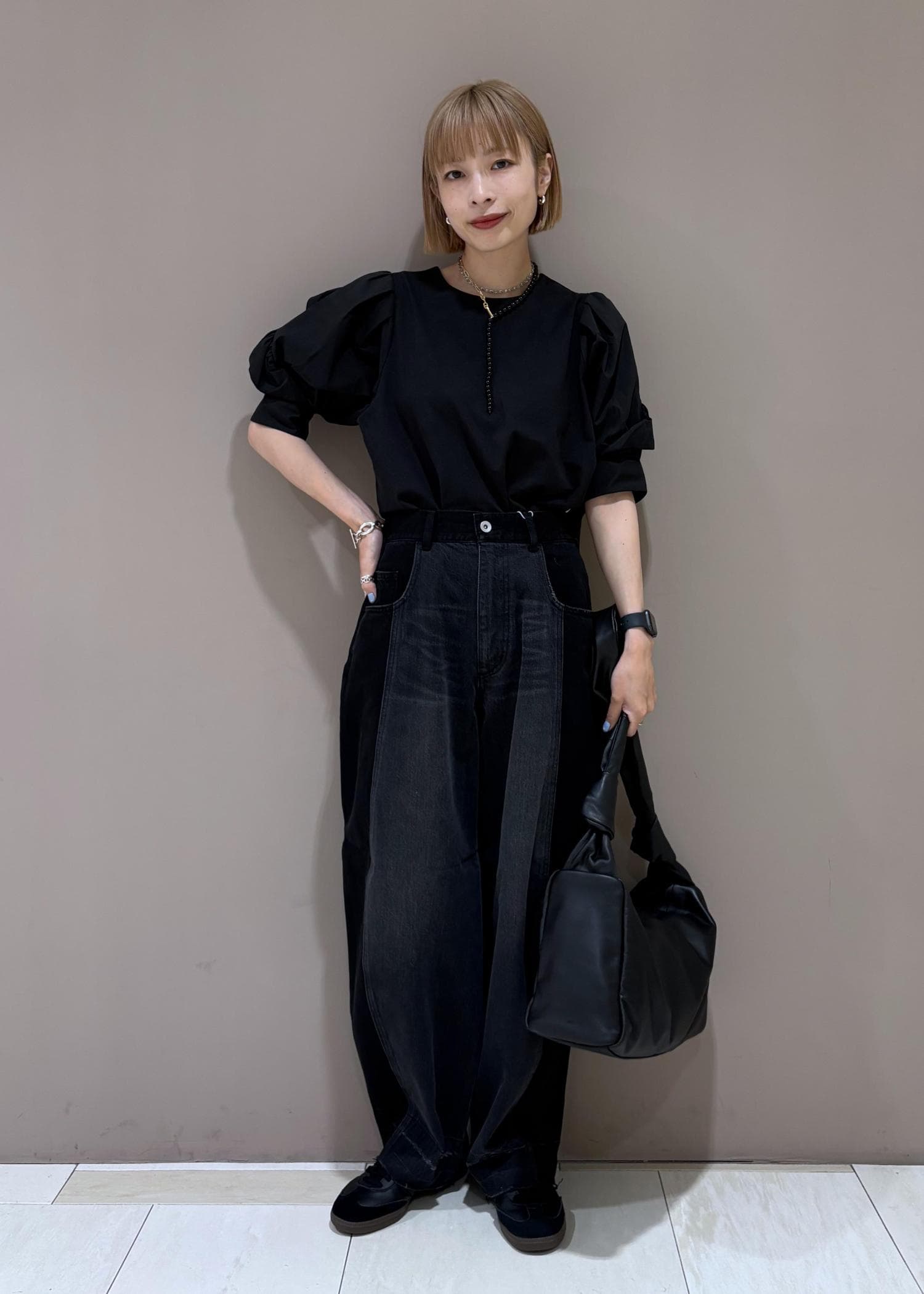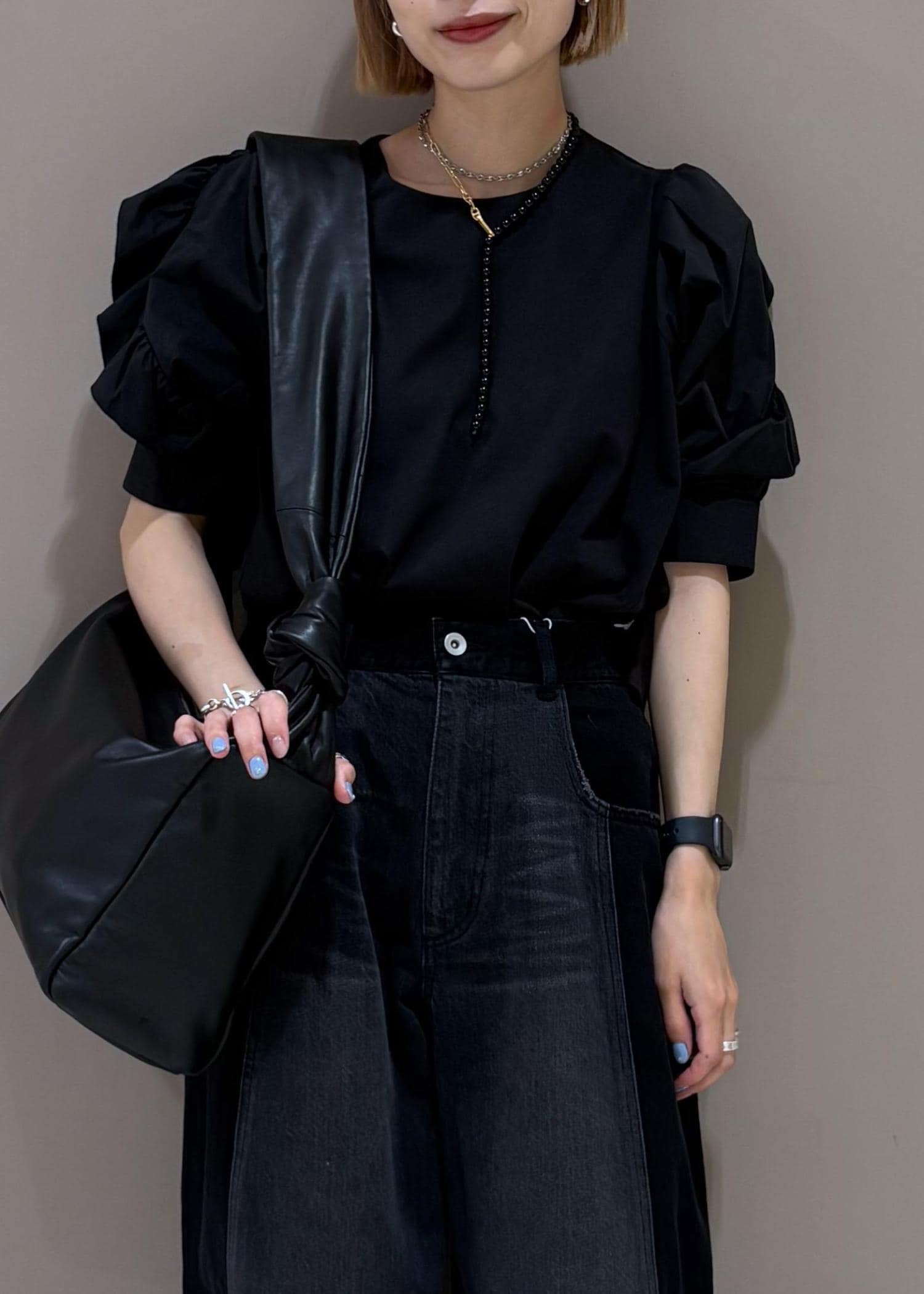 アウトレットADAM ET ROPÉ FEMME【サステナブル】バルーンスリーブTシャツブラック / F¥5,720レビュー162cm、フリーサイズ着用。