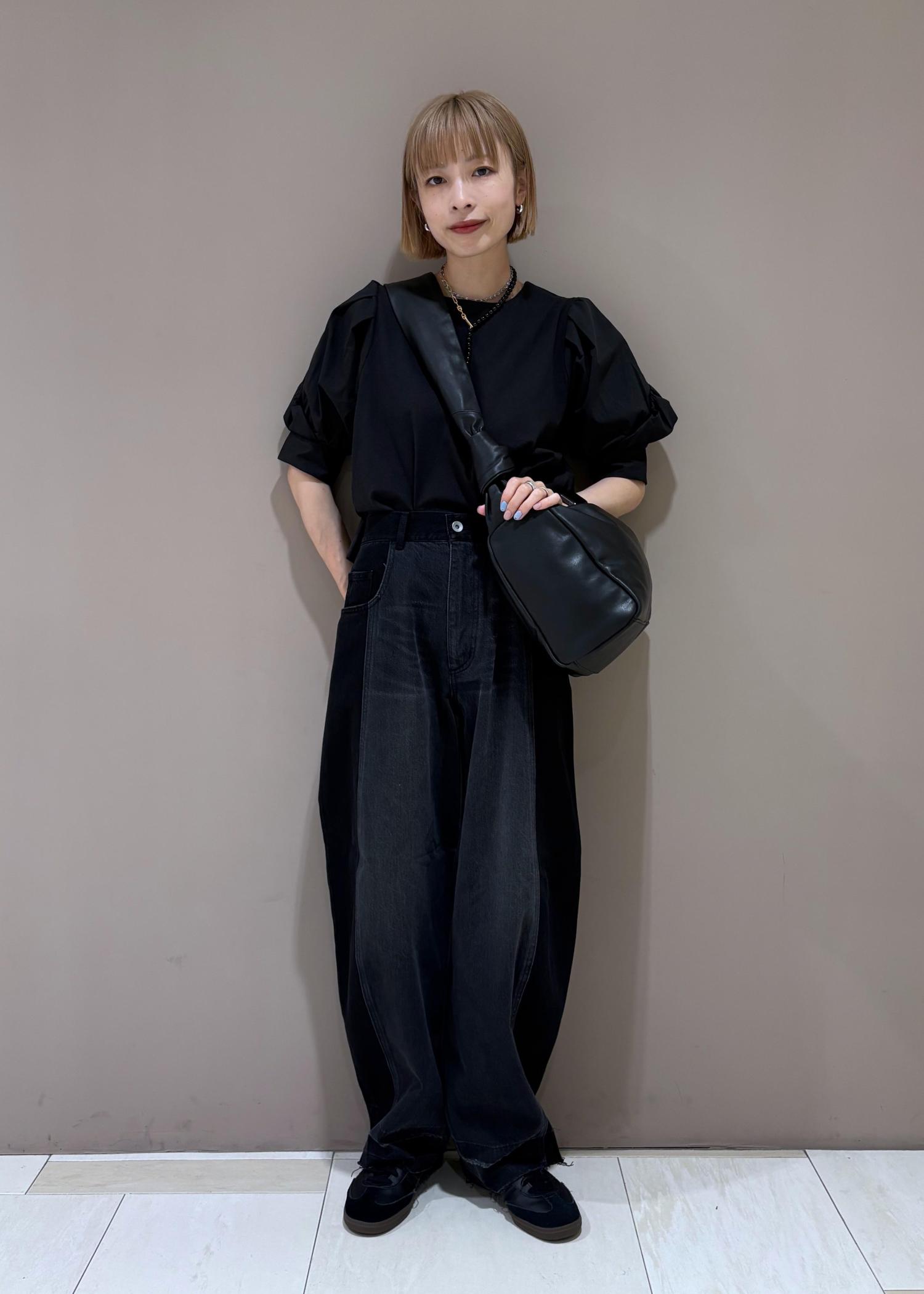 ADAM ET ROPÉ FEMME【サステナブル】リメイクライクコントラストデニムブラック系 / 36¥24,200レビュー162cm、36サイズ着用。