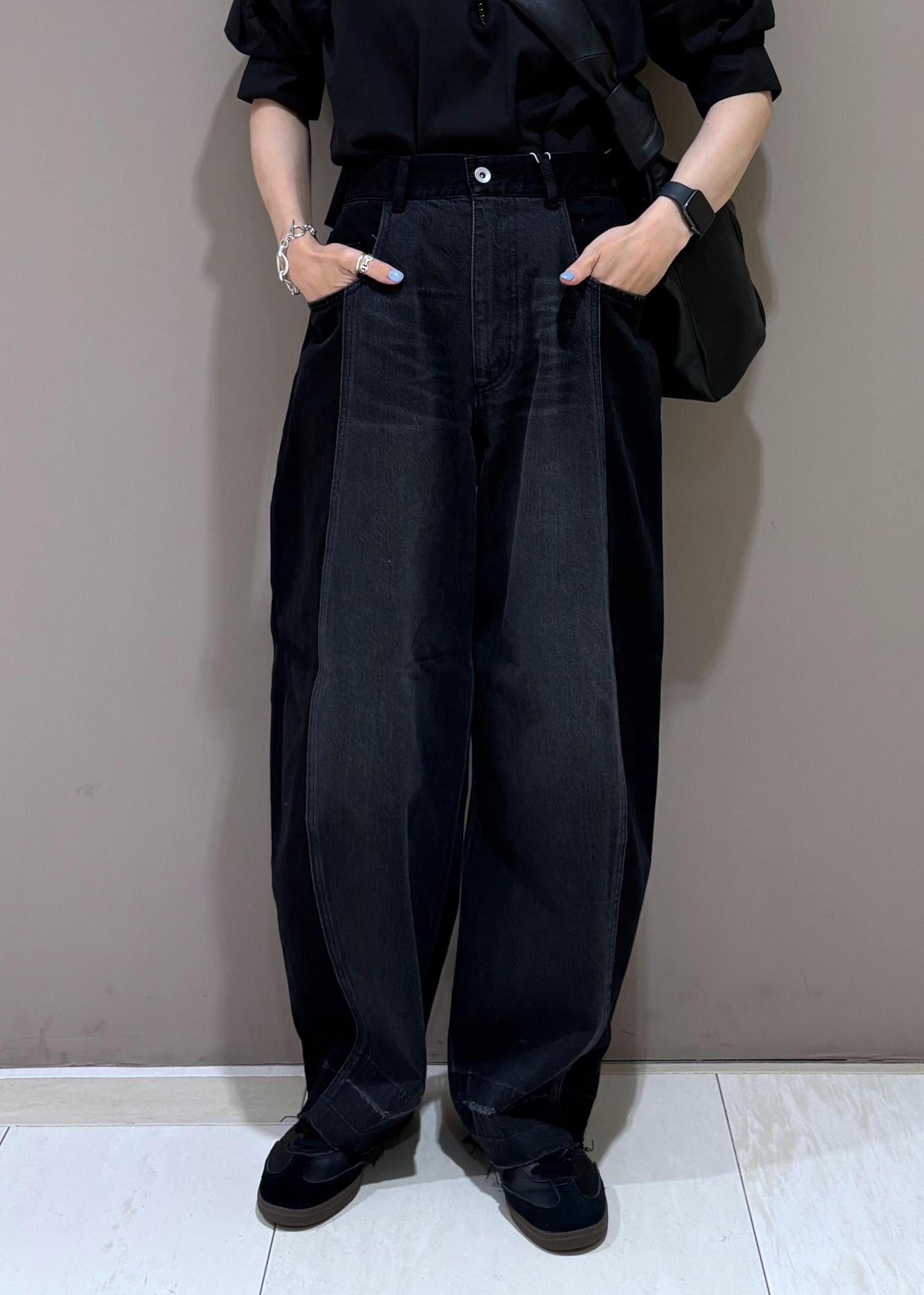 シルエットはややワイドで、トップスは丈短め〜長めまで合わせやすいデザインデニム◎ -
