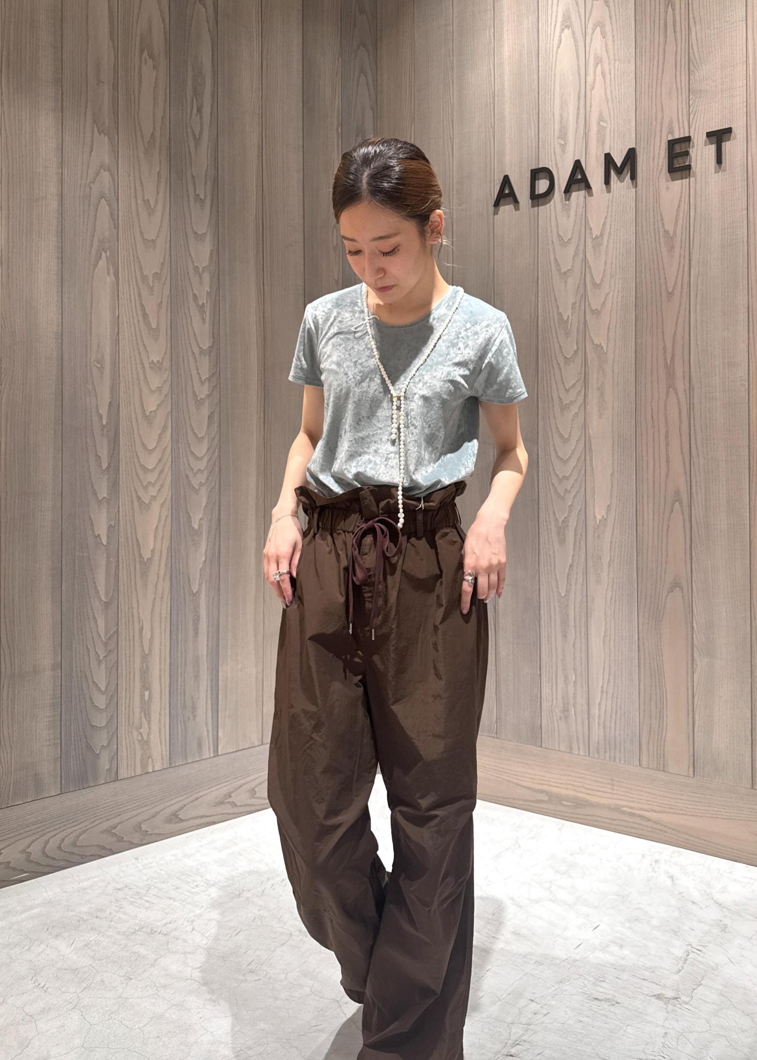 ADAM ET ROPÉ FEMMEクラッシュベロアTシャツブルー系 / F¥12,100レビュー淡い落ち着いたカラーなので、ダークカラーのボトムには馴染み、清涼感あるホワイト系のボトムには適度に映えます。