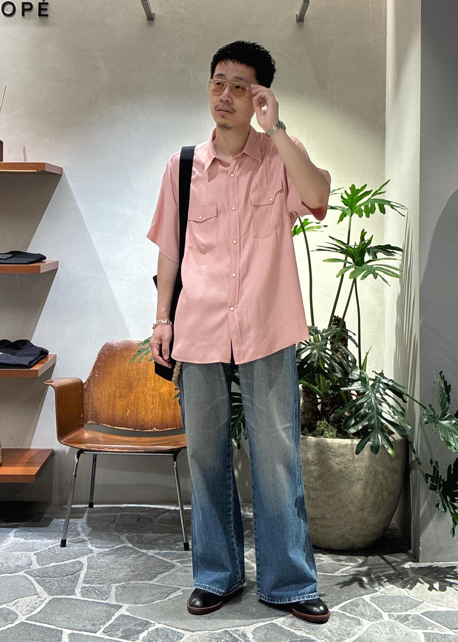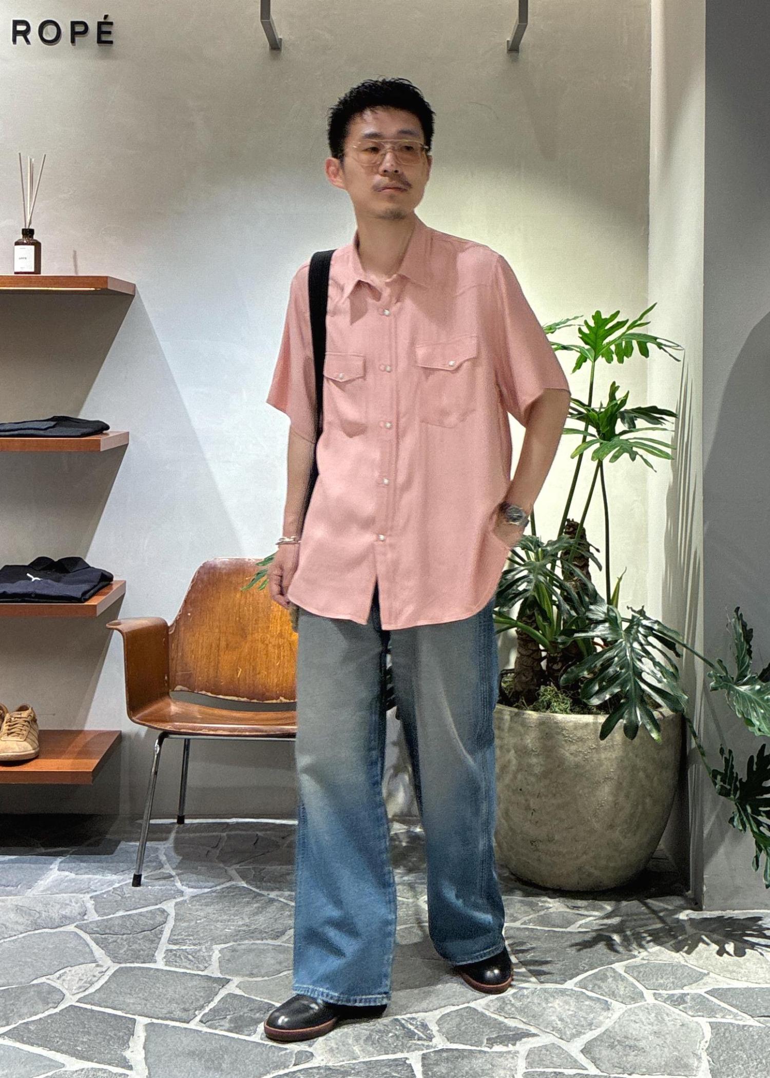 アウトレットADAM ET ROPÉ HOMMEウエスタン ショートスリーブシャツピンク / M¥6,776レビューややゆったりめのサイズ感で、僕自身肩幅がありますがMでも余裕を持って着用できました。レーヨンのとにかく軽い生地感なので、夏場の重ね着でもサラッと羽織っていただけます。