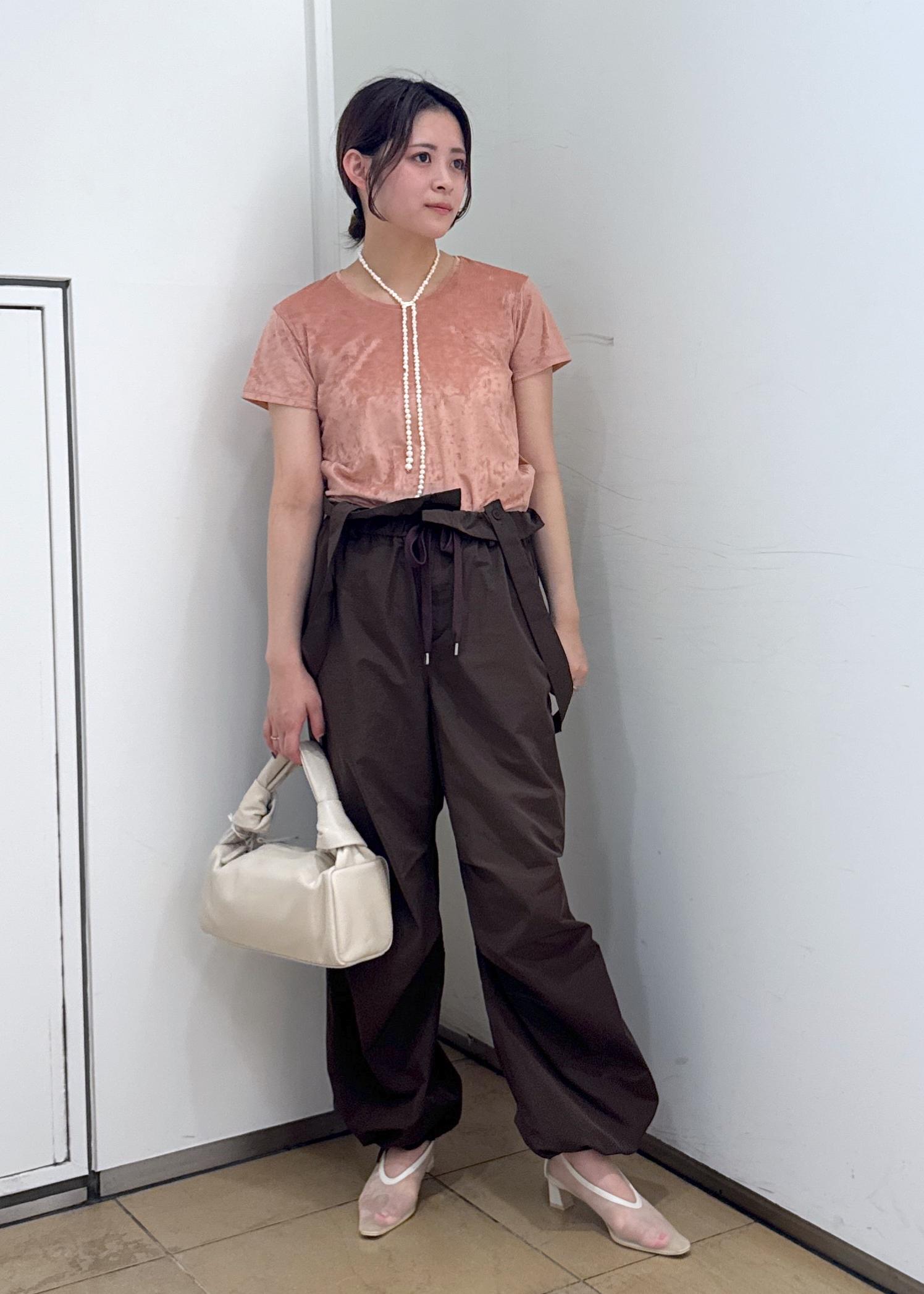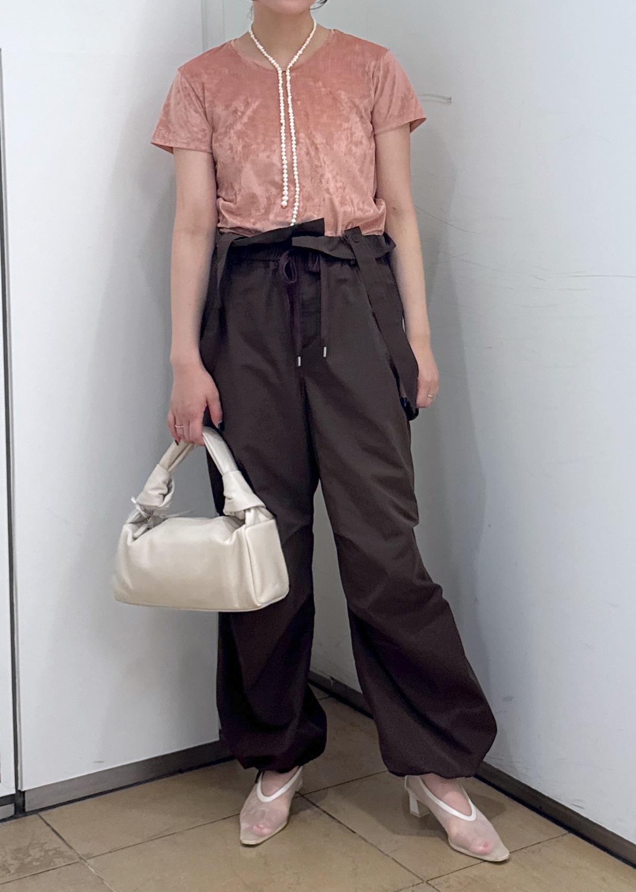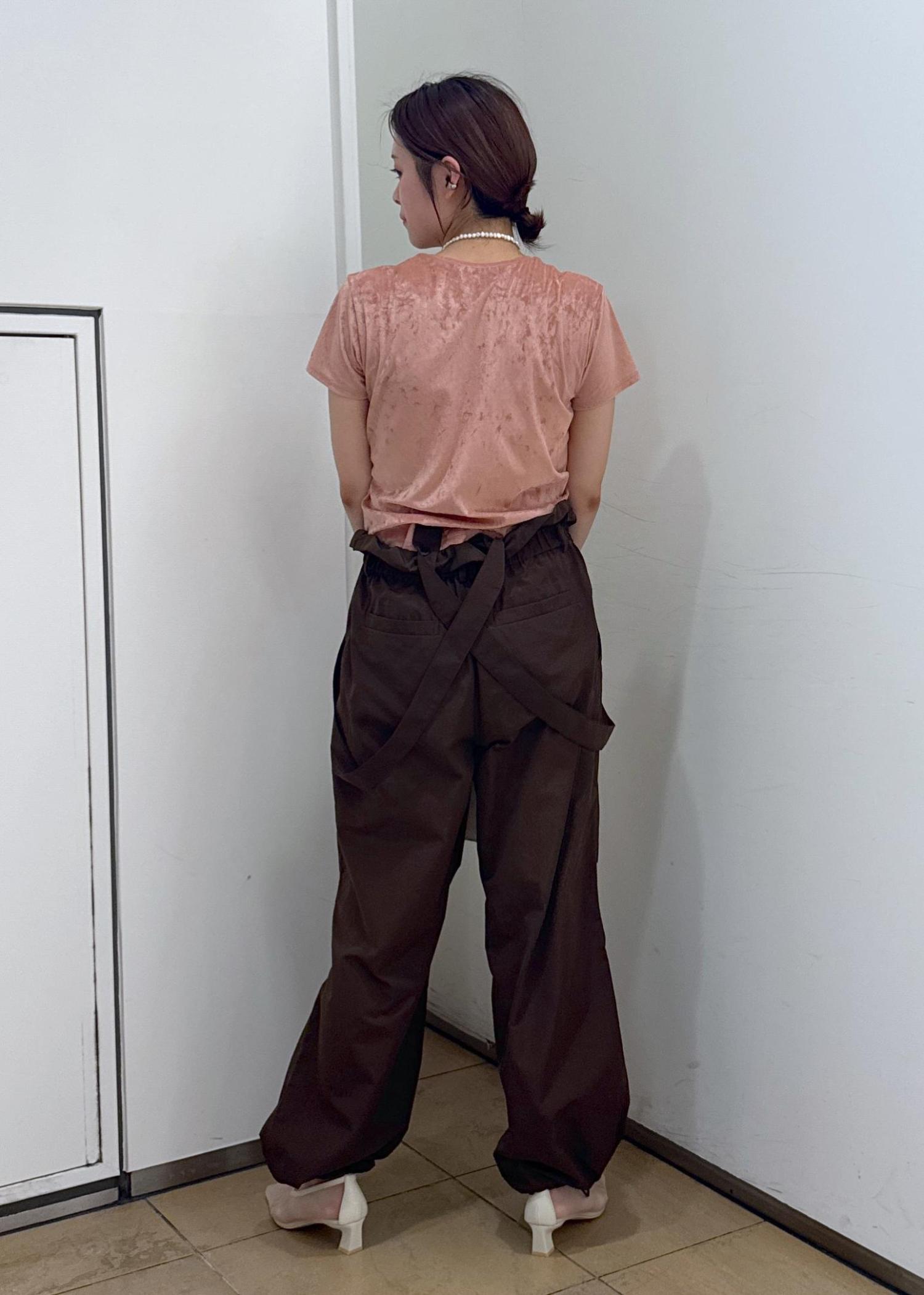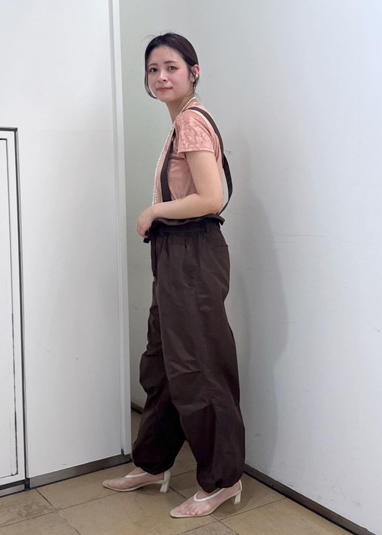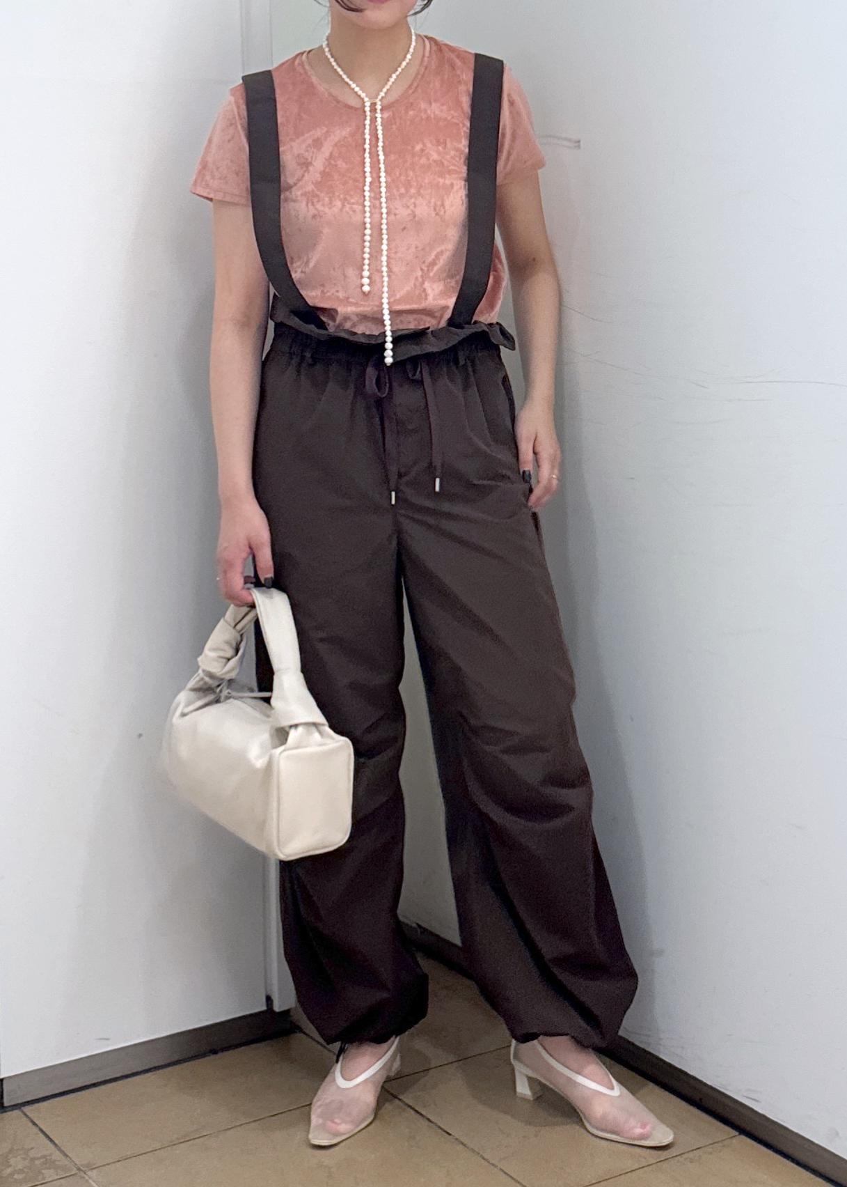 アウトレットADAM ET ROPÉ FEMMEサスペンダーナイロンパンツダークブラウン / 38¥7,920レビュー裾は絞って着用していただけるので、低身長の方でも丈感気にせず着用して頂けます。