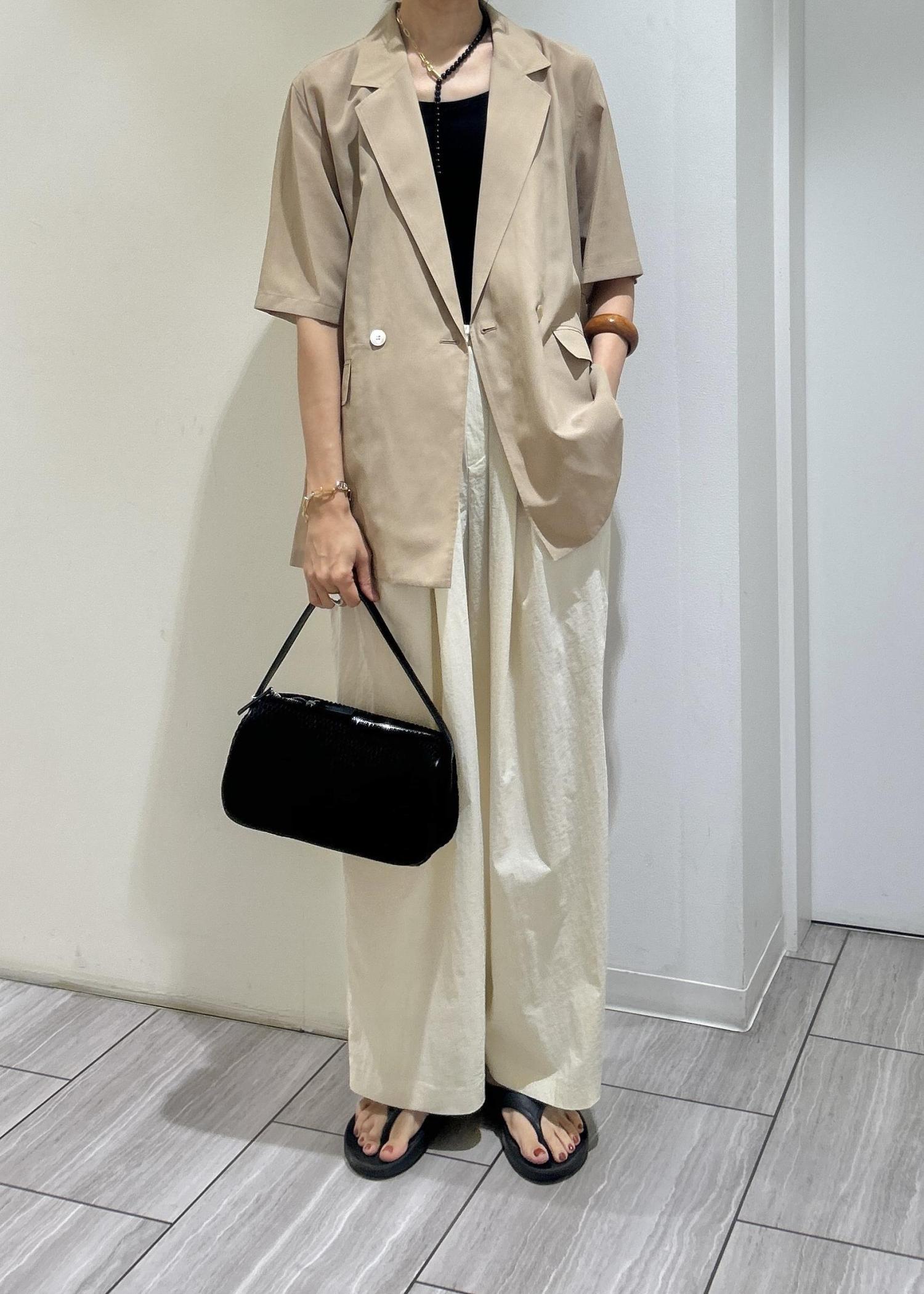 ジャケットはシアー感が上品で、パンツはゆったりだけどラフすぎない絶妙なシルエット◎