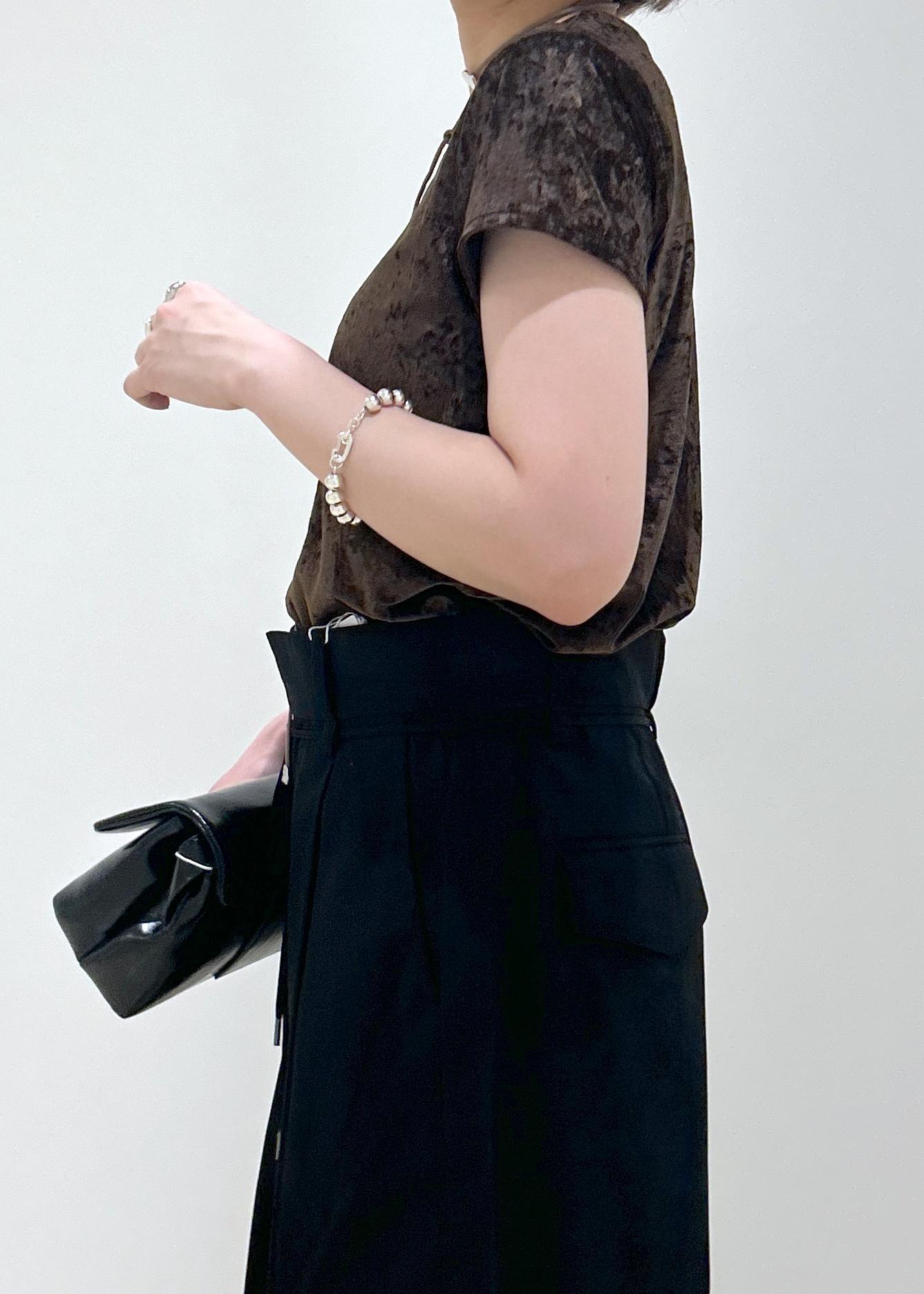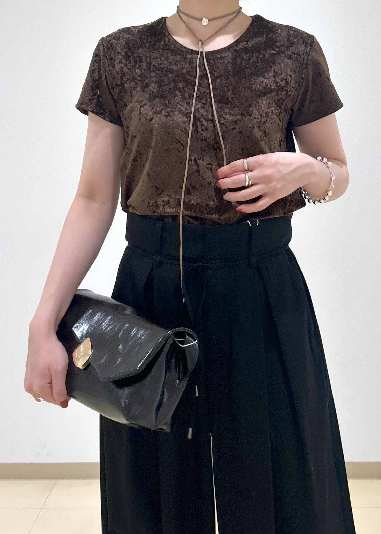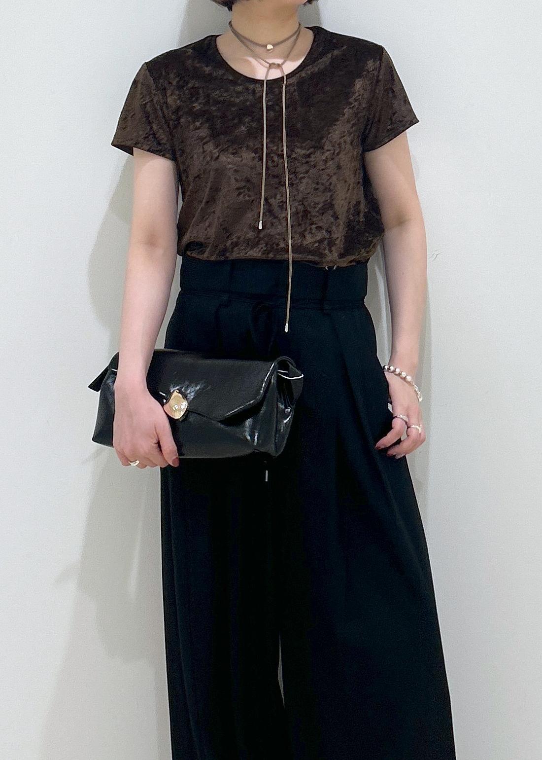 ADAM ET ROPÉ FEMMEクラッシュベロアTシャツダークブラウン / F¥12,100レビューかなりコンパクトなサイズ感ですが、さらっとしていて伸縮性もあるので楽に着用できます。