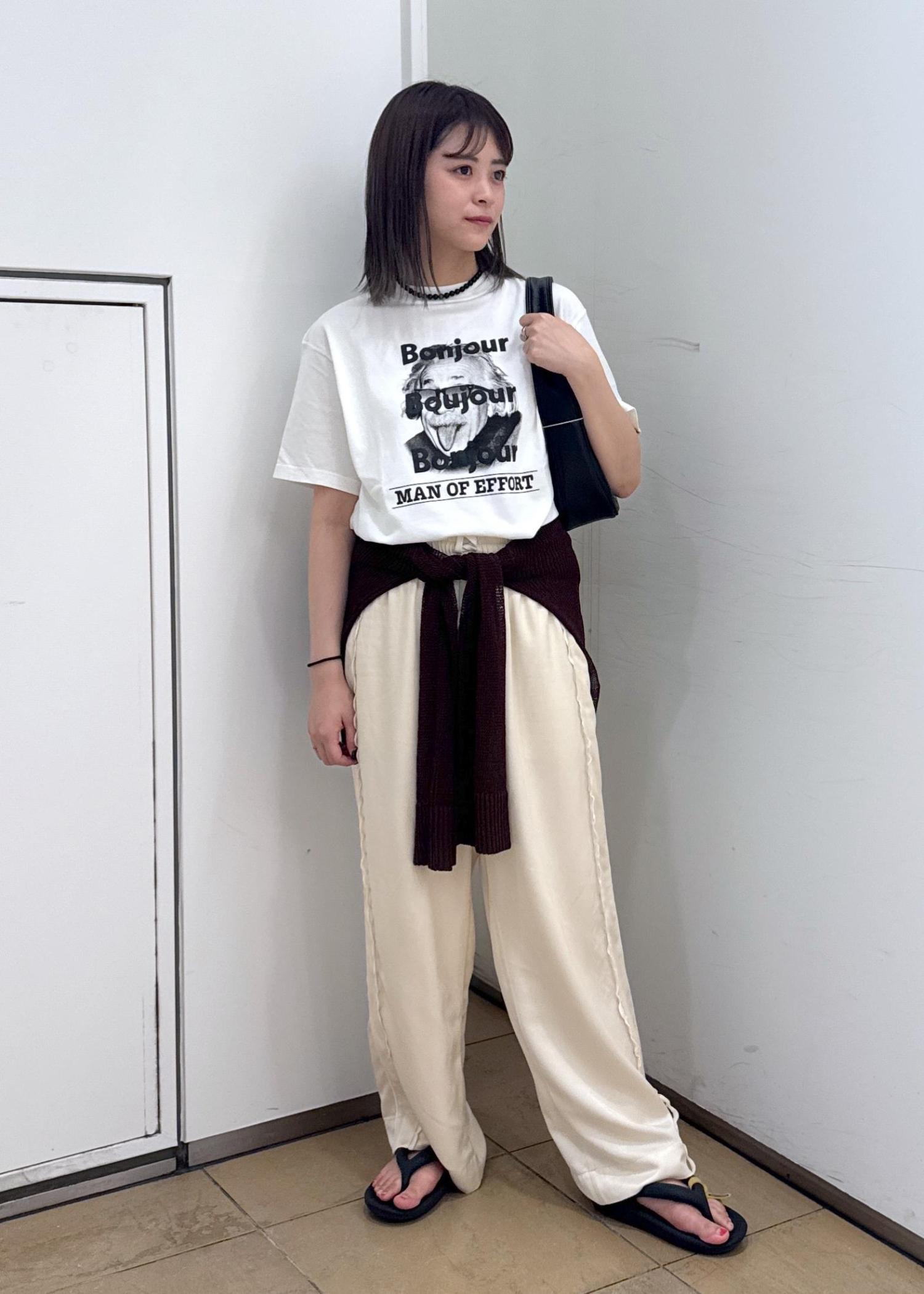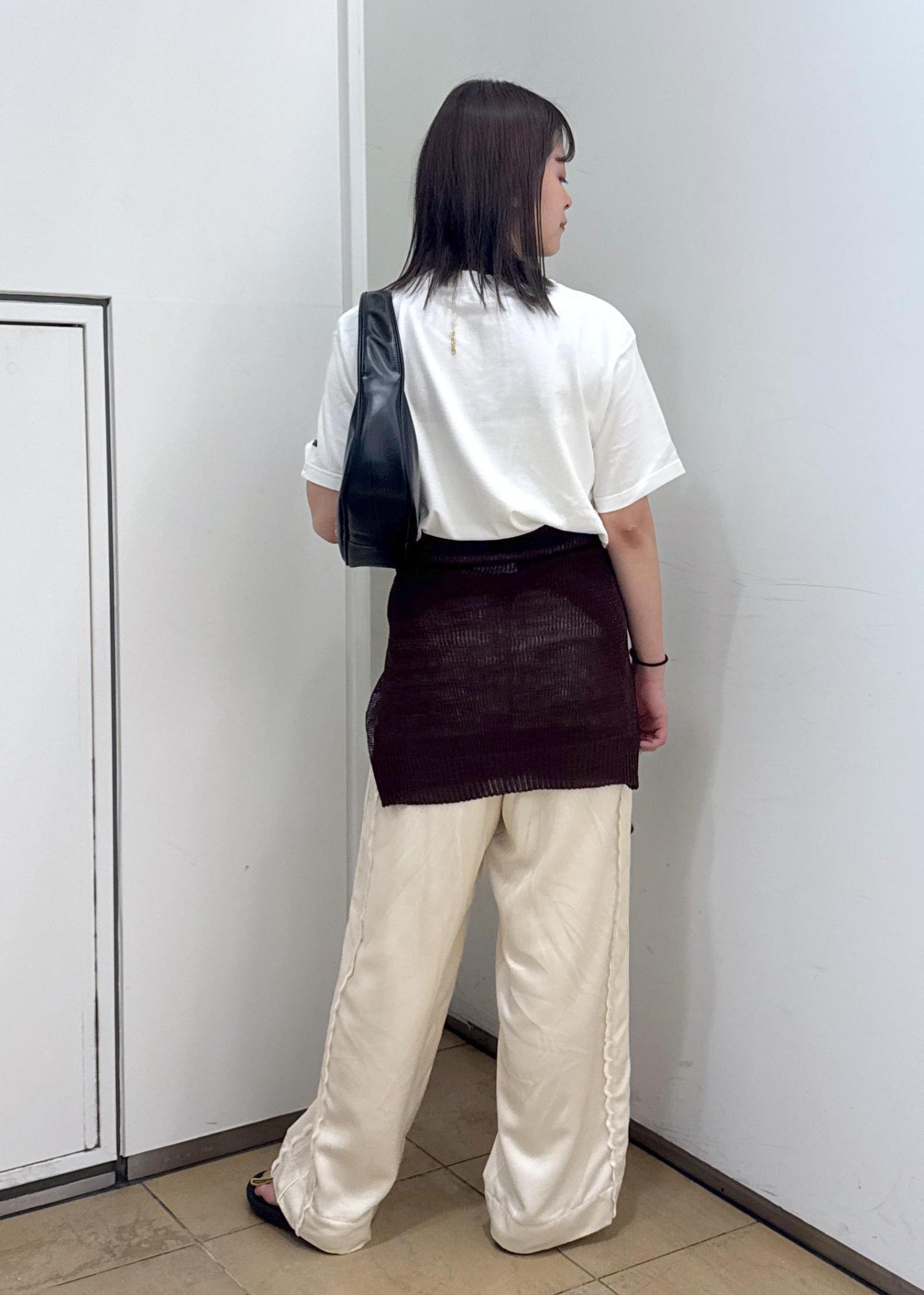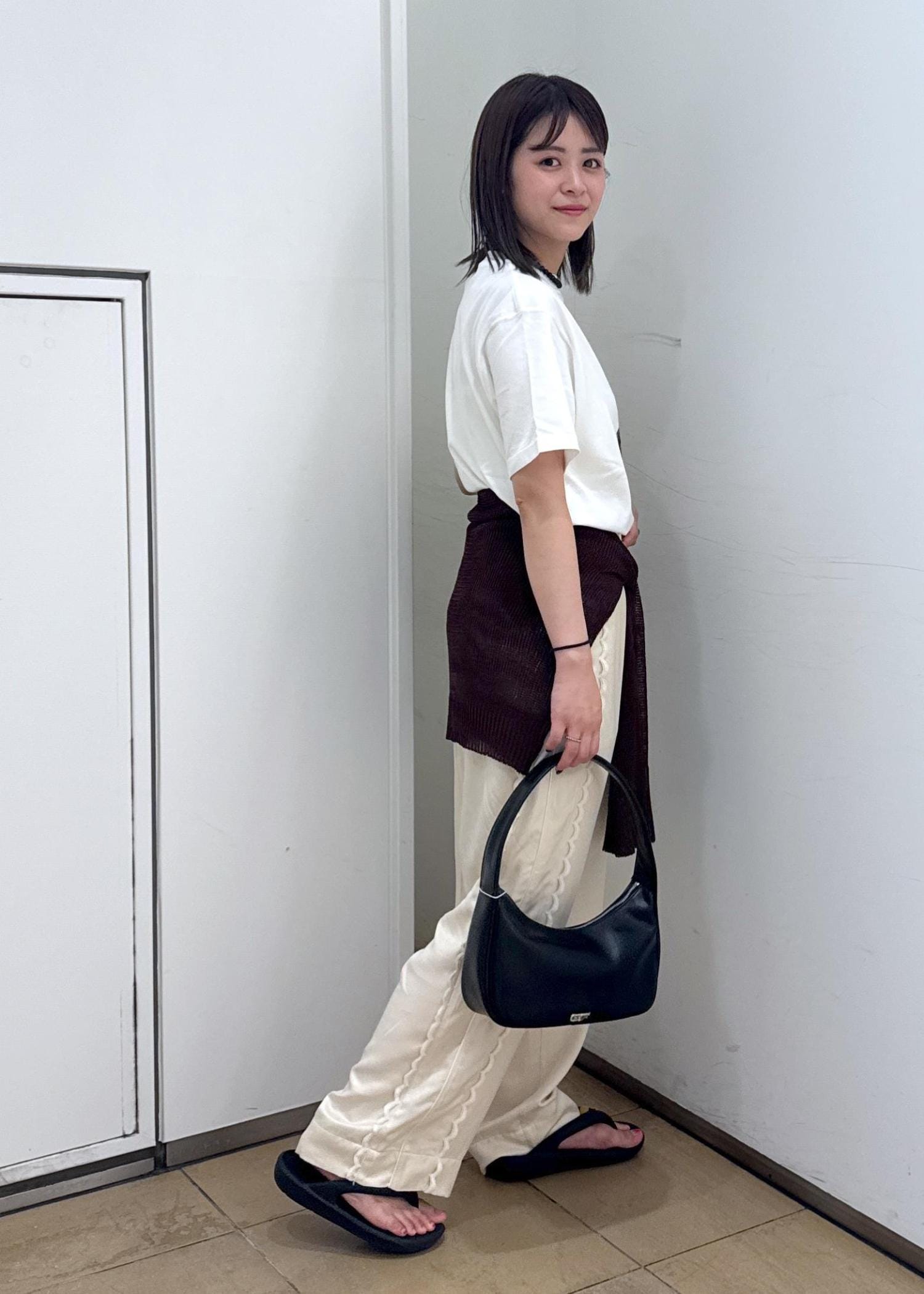 腰に巻いてるニットはTシャツの上から着るのも◎です。