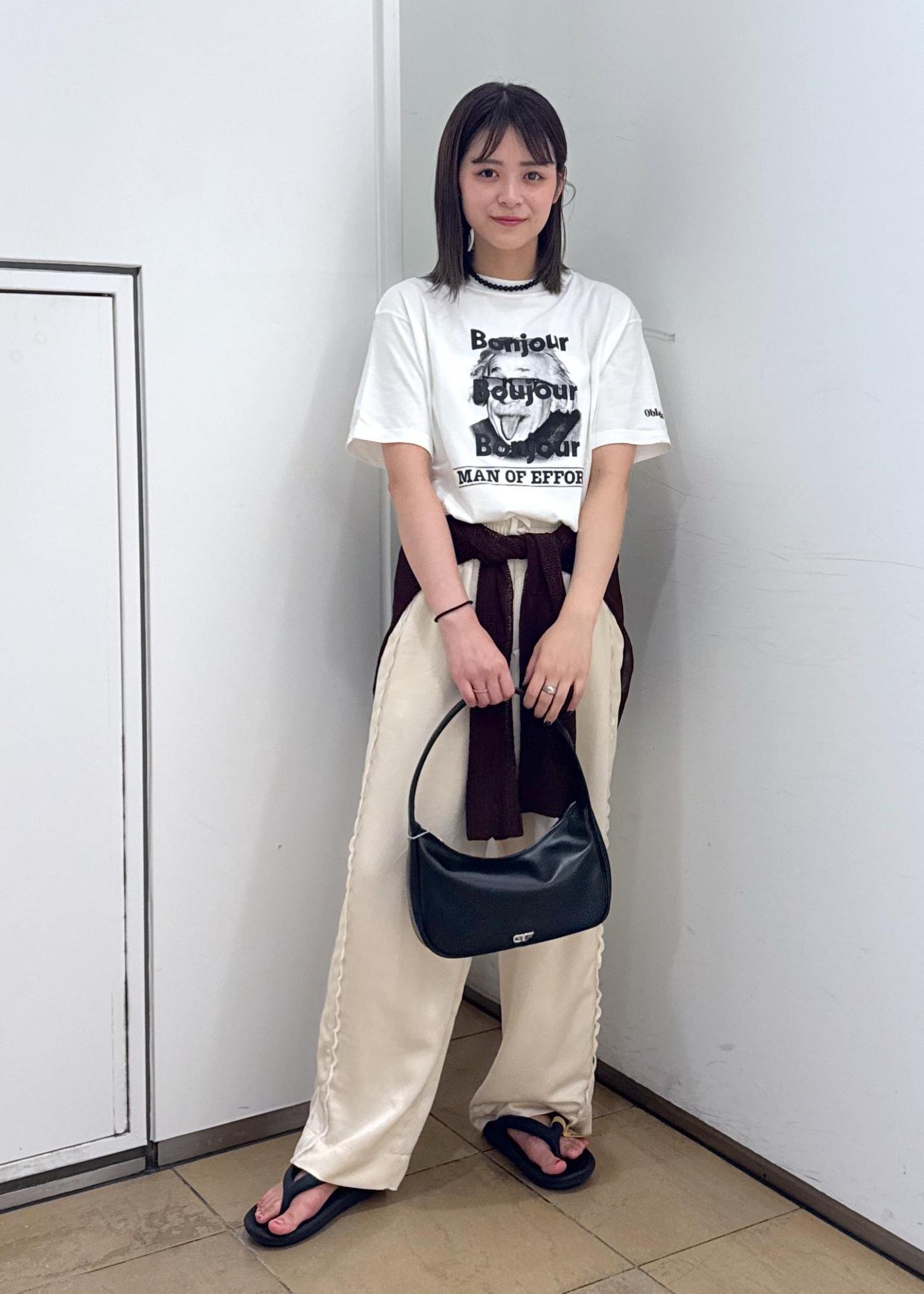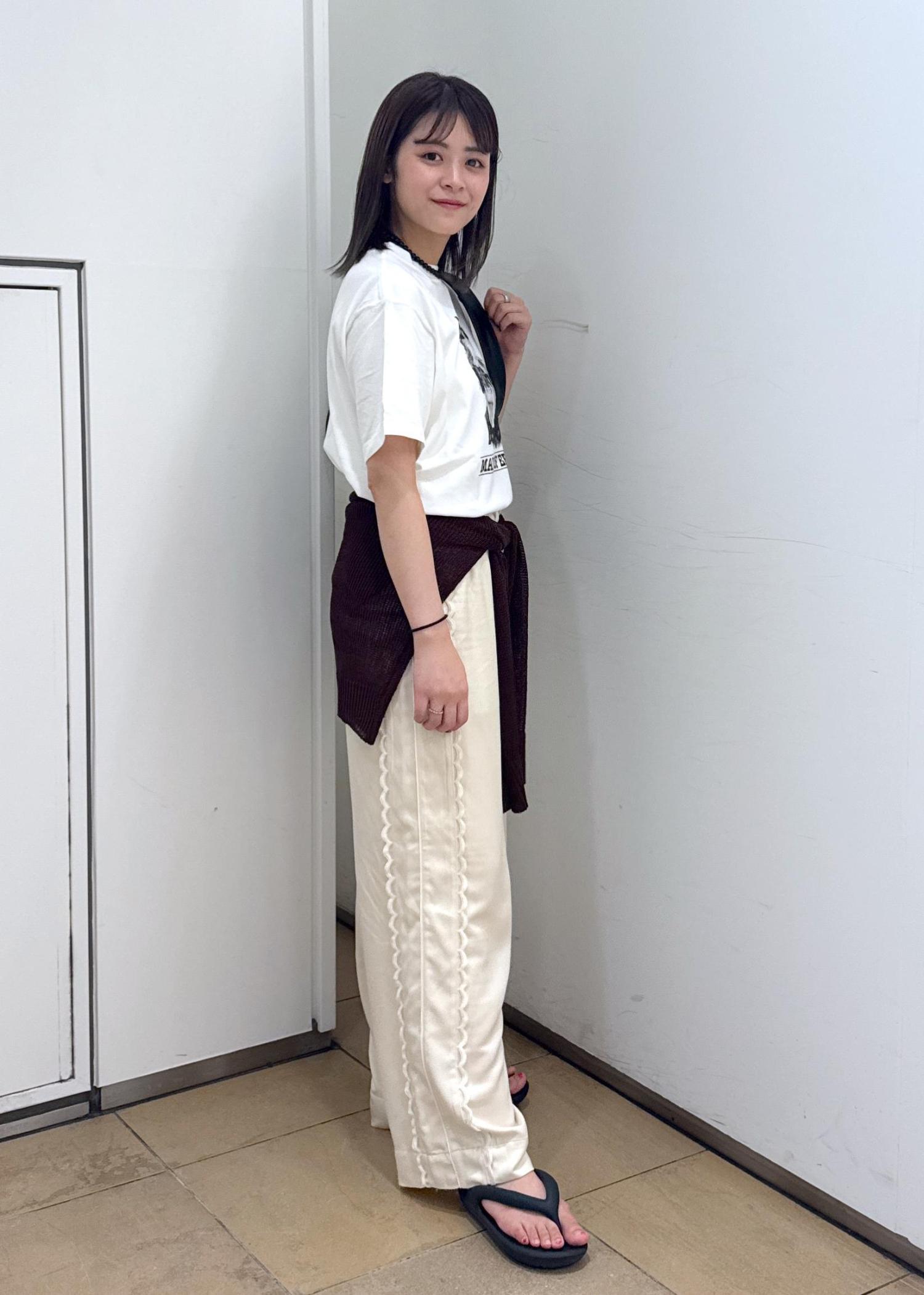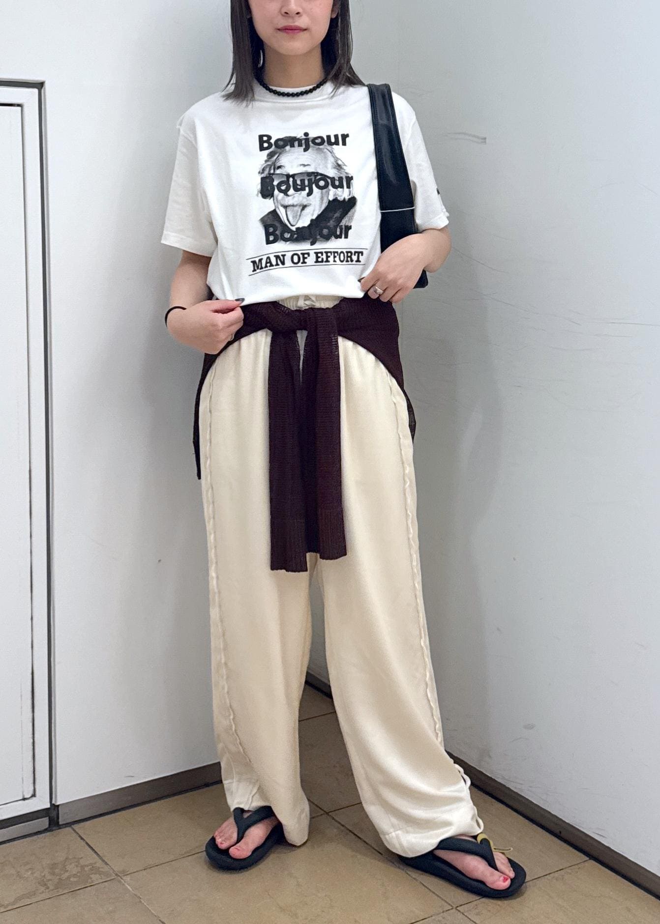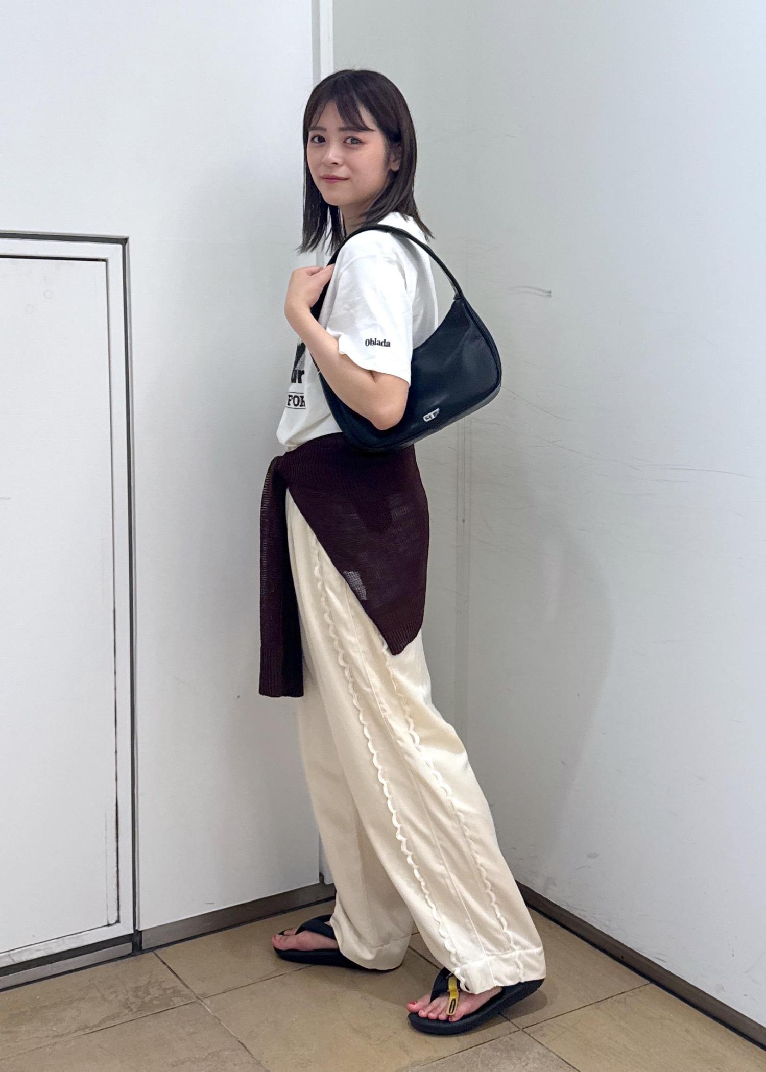 腰に巻いてるニットはTシャツの上から着るのも◎です。