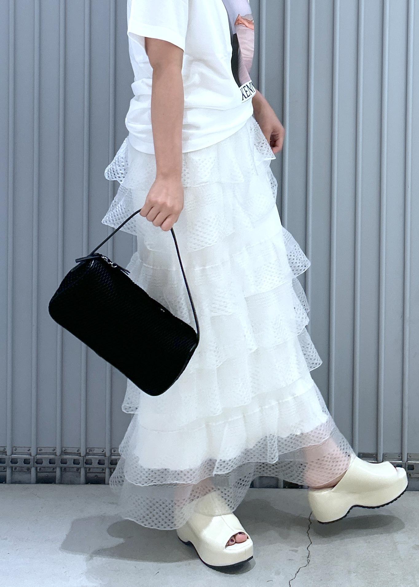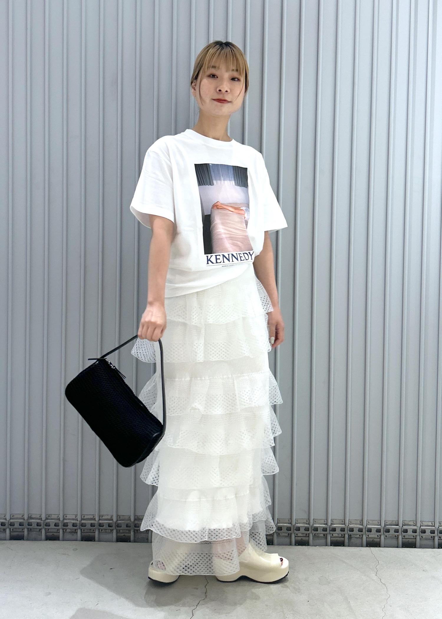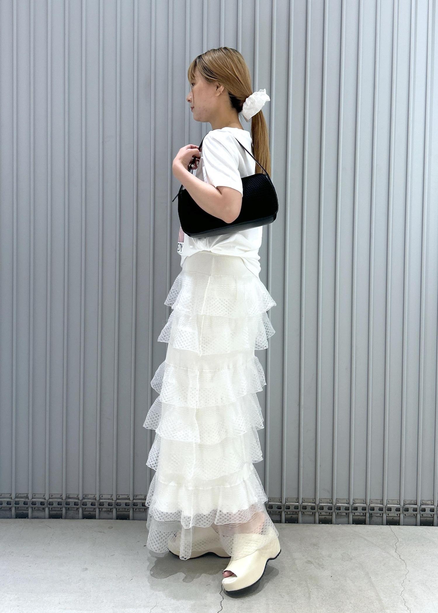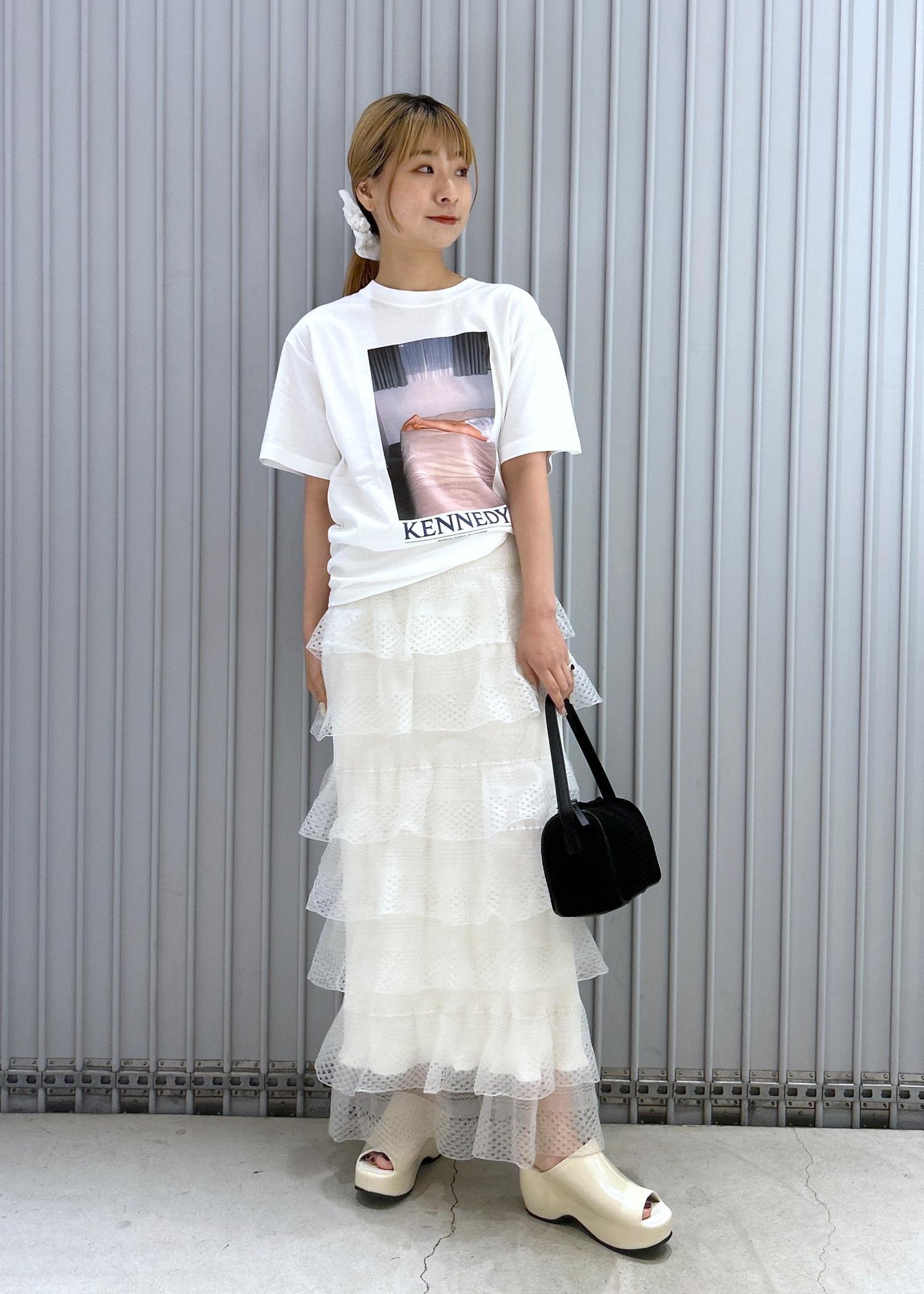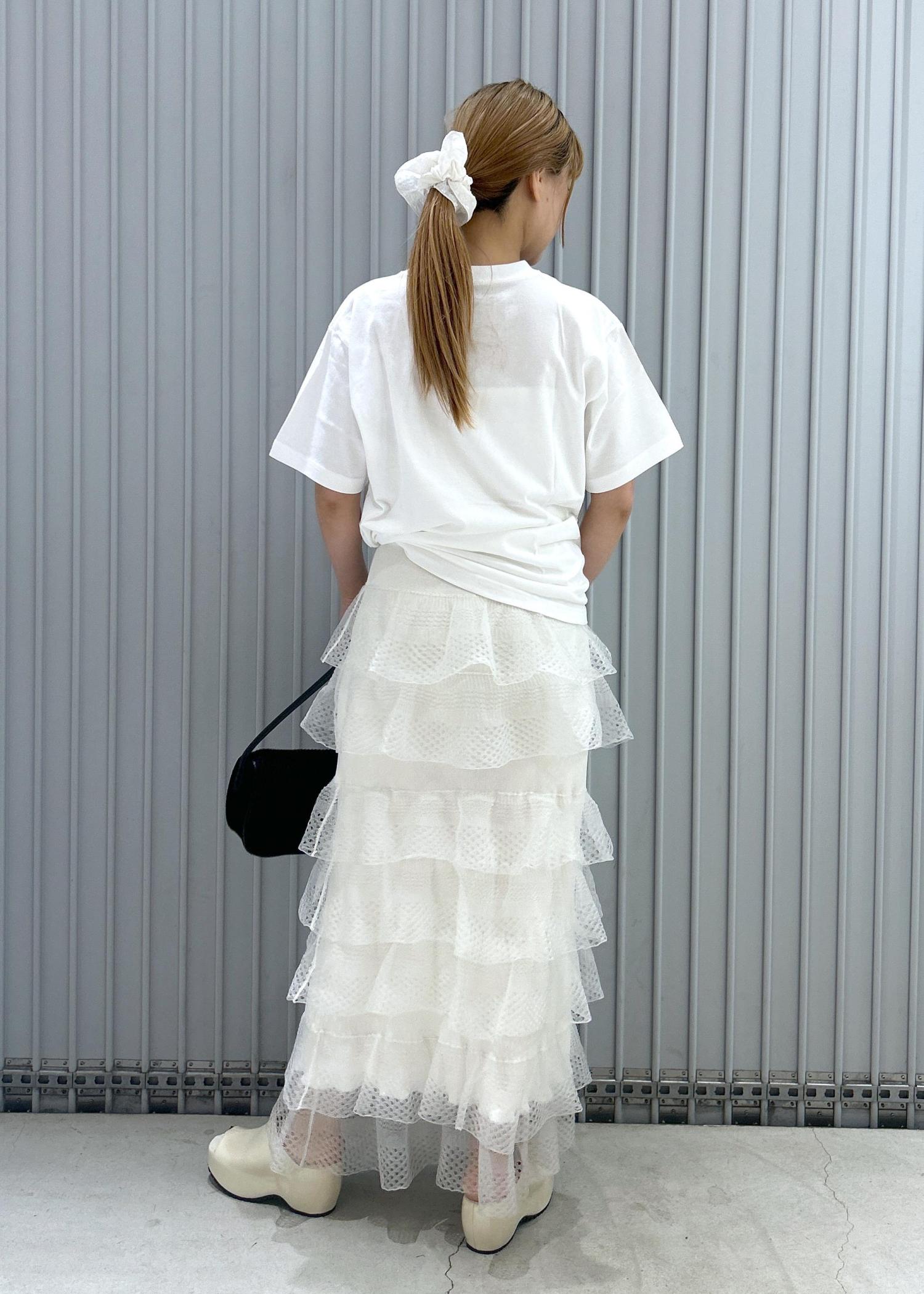 ガーリーなフリルスカートをTシャツでカジュアルダウンしました!