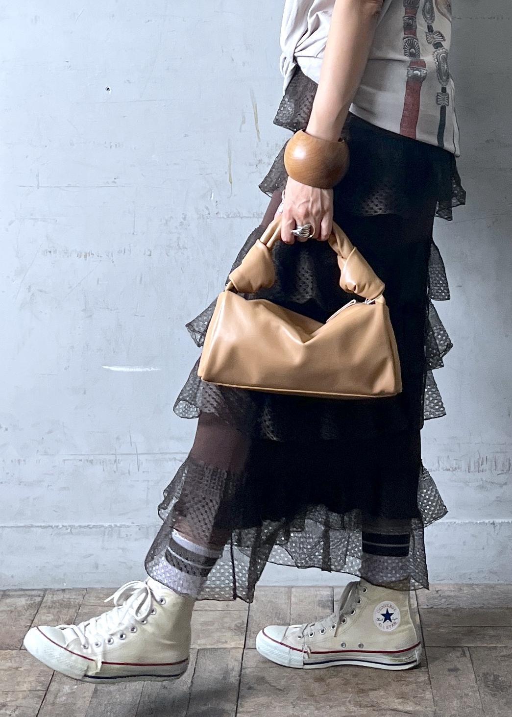 PFT【PFT】Fuka musubi Small バッグベージュ / F¥44,000レビュークタッとしたレザーと丸みのあるフォルムがマッチした何かとちょうどいいバッグです。お財布やポーチは小さめがオススメですが、長財布も入ります◎クラッチのように持つのもオシャレですね。