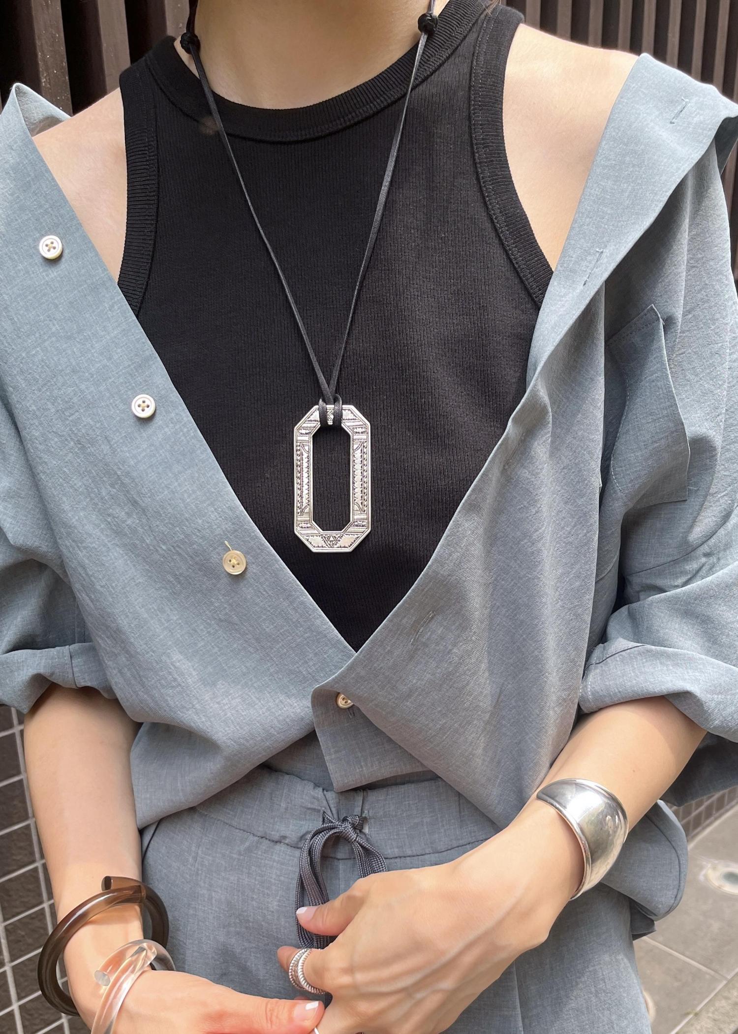 そのままサラッと着てもこなれ感たっぷりでかっこいいのですが、今回はガッツリ首をぬいて着て、1番下のボタンだけを閉めてボトムにイン!