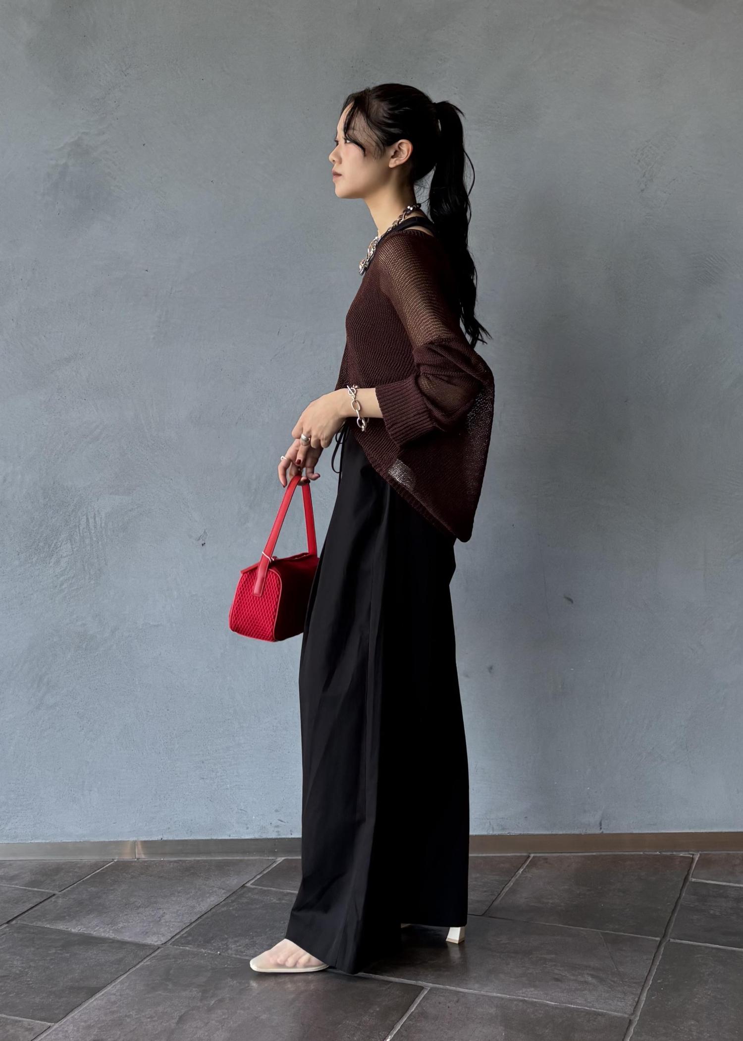 ADAM ET ROPÉ FEMMEシアーVネックトップスブラウン / F¥15,950レビューゆったりシルエットで抜け感を出せるアイテム。深めのVネックなので、キャミ合わせでデコルテ見せしてもよし、Tシャツを合わせても◎