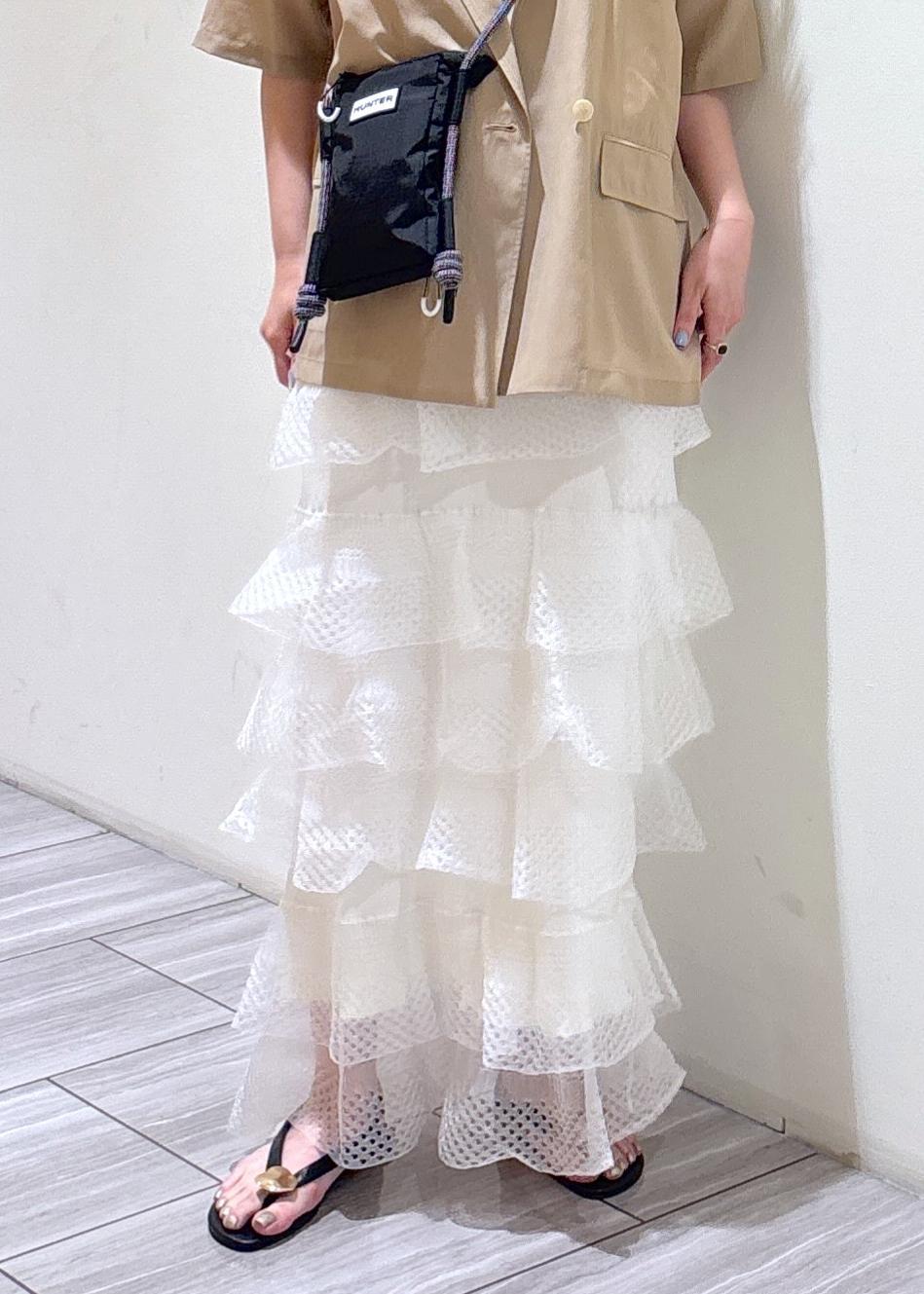 ADAM ET ROPÉ FEMMEシアーフリルスカートホワイト / F¥19,800レビューウエストゴムで楽な着心地です♪