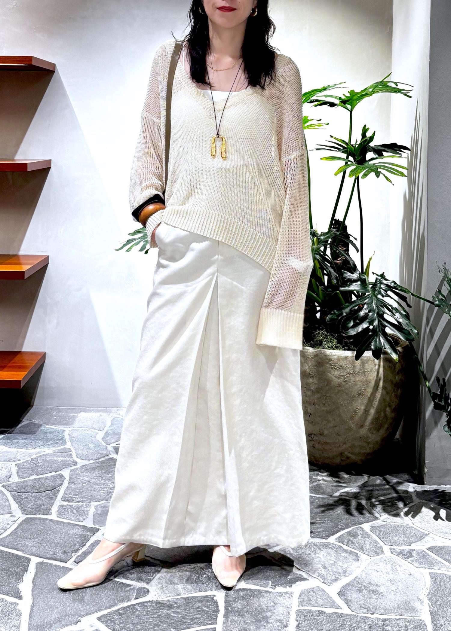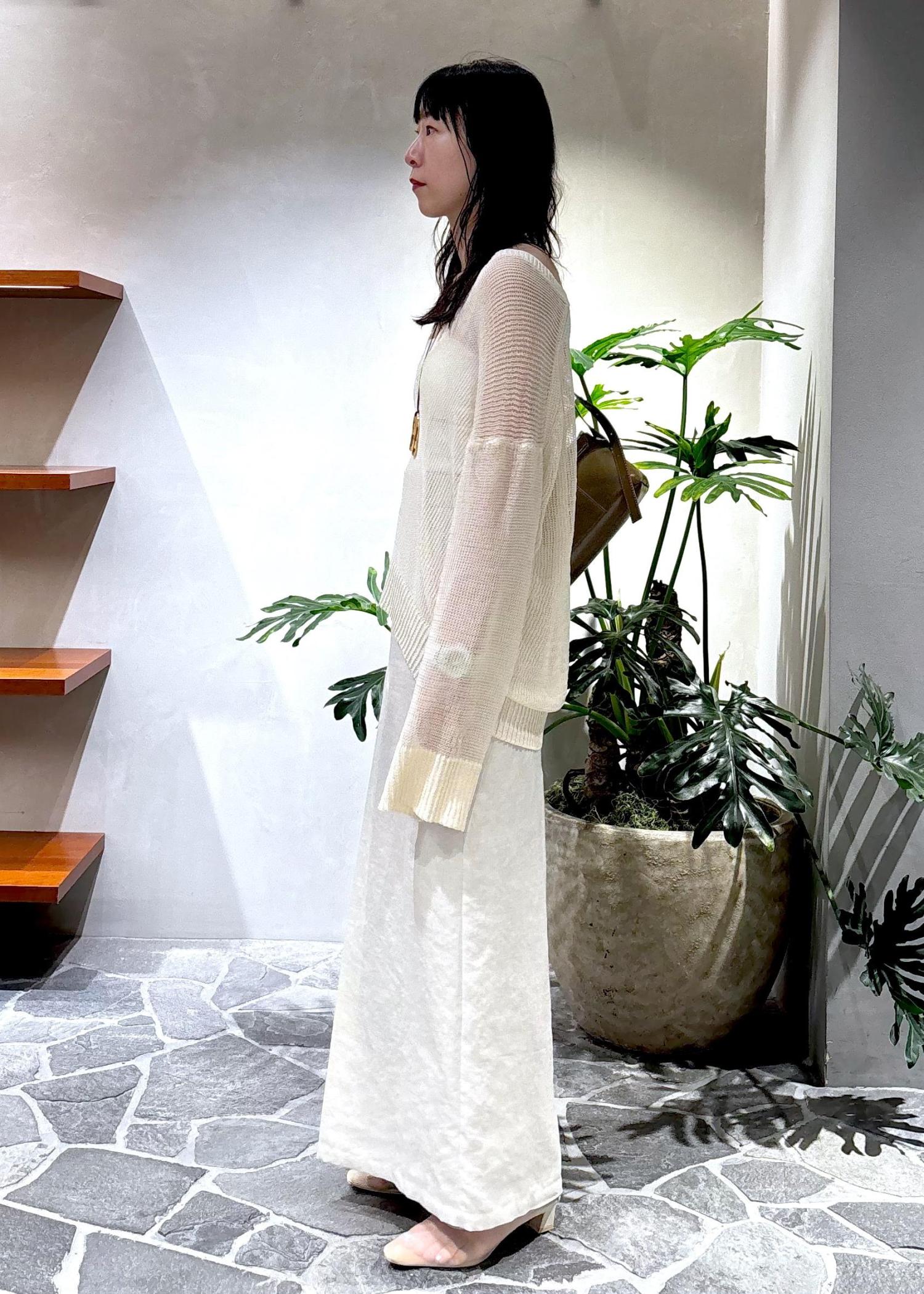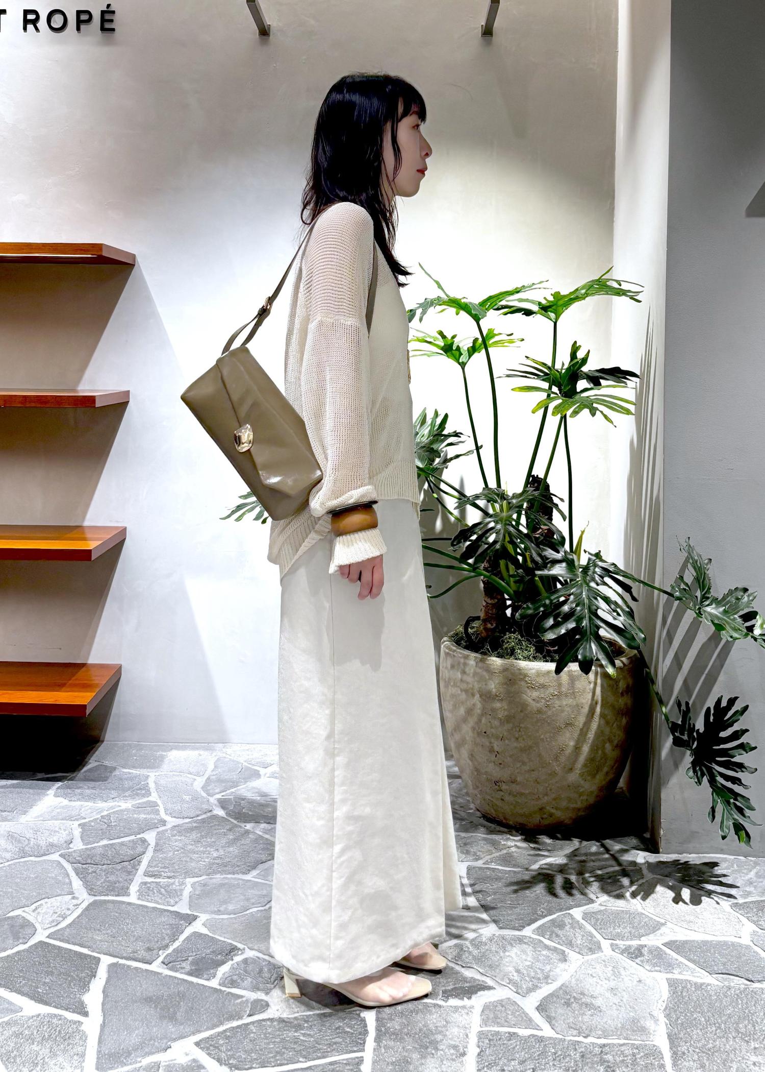 涼しく夏に着やすい糸を使ったサマーニットですが、バッグやアクセサリーの引っ掛けだけ要注意です! -